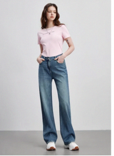 003 High-Waisted Jeans for Women 2023 Autumn High-Quality Floor-Length Straight-Leg Pants Slimming Narrow Wide-Leg Pants