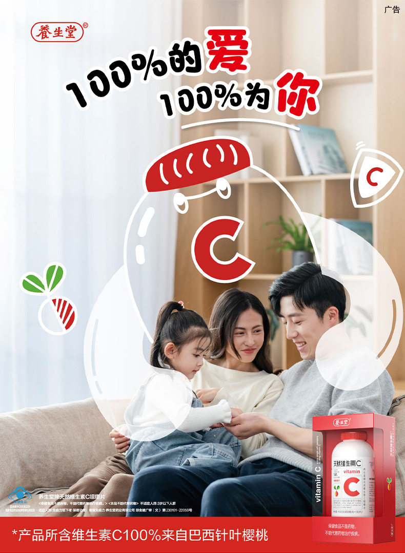 Yangshengtang Natural Vitamin C Chewable Tablets Genuine Children's Vc Tablets Acerola Cherry Vitamin C Can Be Combined with Vitamin E Official