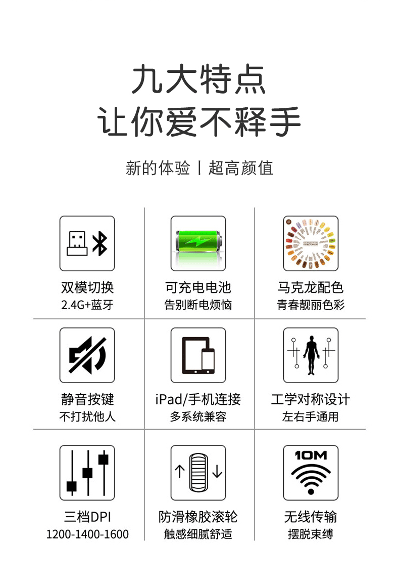 Color Classification White Three-Mode Mouse[Bluetooth Plus Wireless][Rechargeable Model],Pink Three-Mode Mouse[Bluetooth Plus Wireless][Rechargeable Model],Black Three-Mode Mouse[Bluetooth Plus Wireless][Rechargeable Model],Blue Three-Mode Mouse[Bluetooth Plus Wireless][Rechargeable Model],Green Three-Mode Mouse[Bluetooth Plus Wireless][Rechargeable Model]