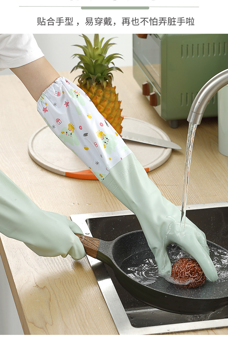 Dishwashing Gloves with Fleece Lining for Winter, Women's Kitchen Rubber Gloves, Wear-Resistant, Waterproof, for Washing Clothes, Cleaning Chores, Washing Dishes, Long Style, Durable