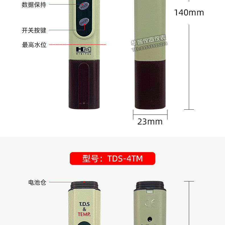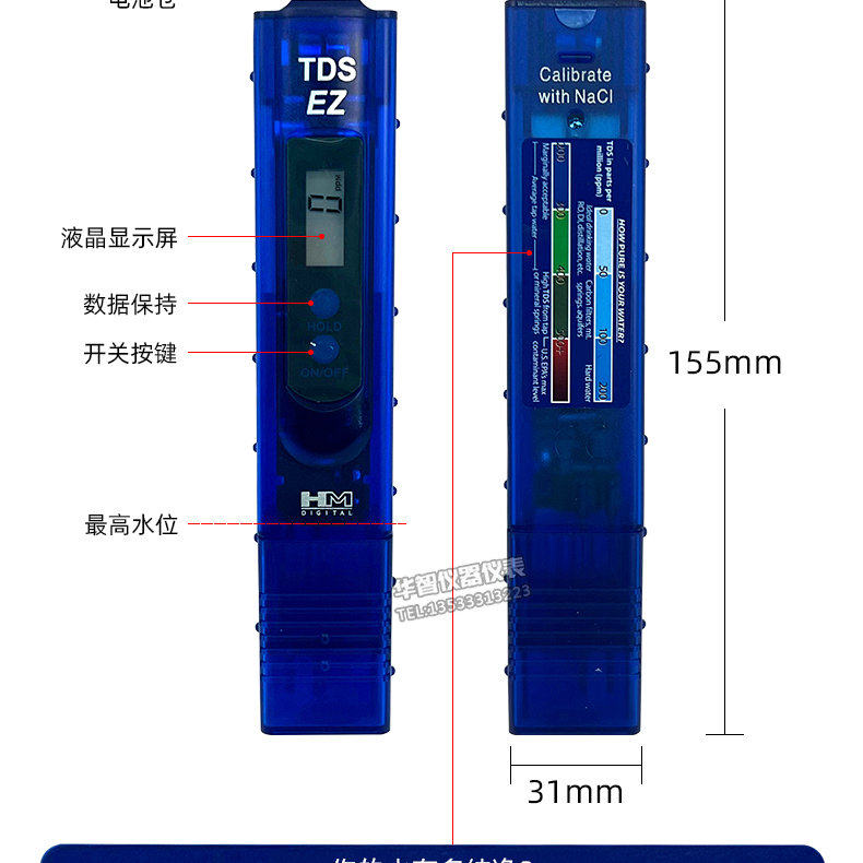South Korea's Hm New Tds Water Quality Testing Pen Tds-4 Water Purifier Direct Drinking Water Fish Tank Swimming Pool Water Quality Testing Pen