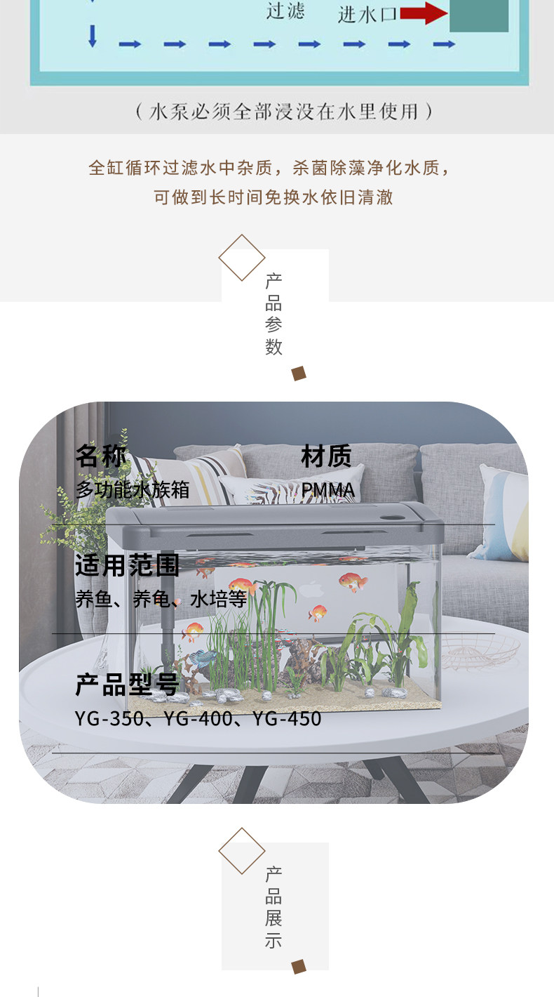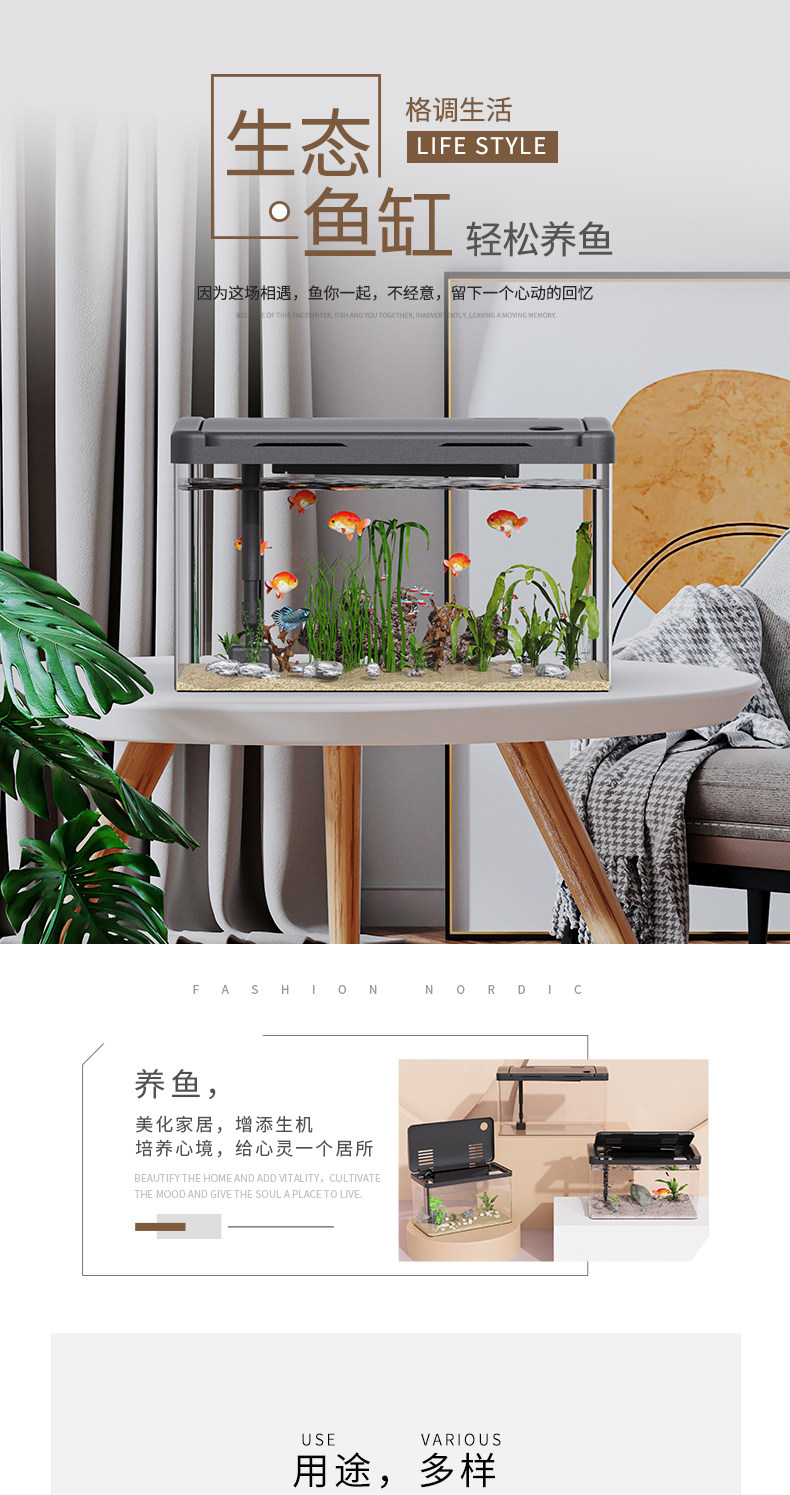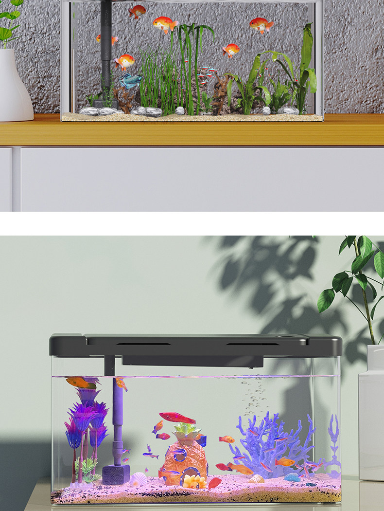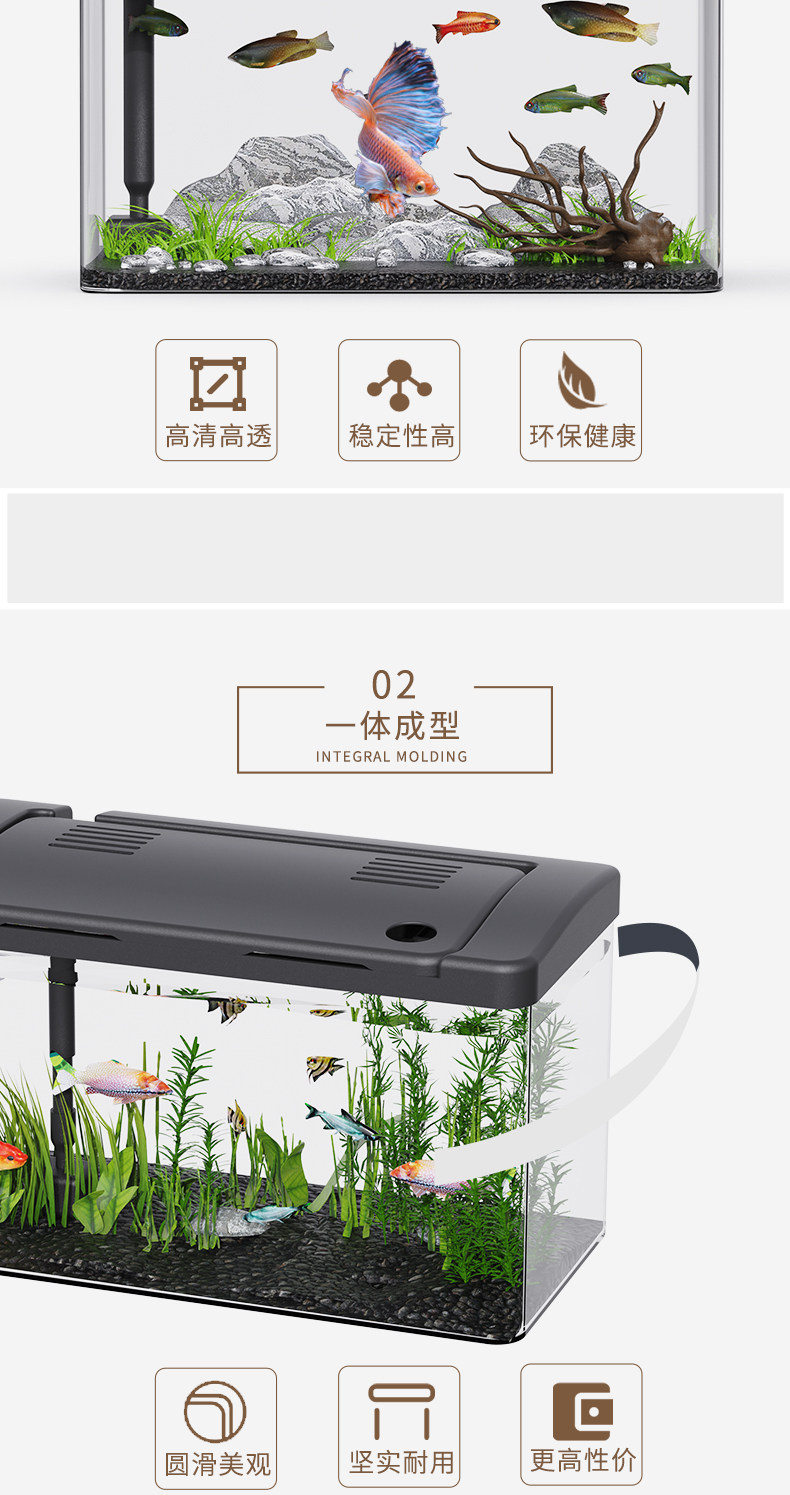 Acrylic Fish Tank Ultra-White Desktop Small Landscaping Aquatic Plant Goldfish Tank Home Living Room Self-Circulating Ecological Aquarium