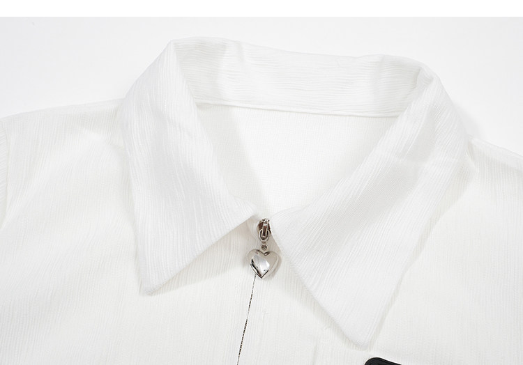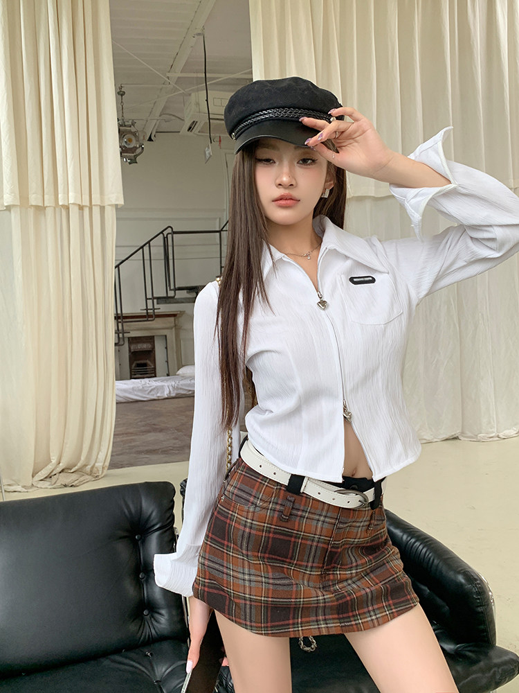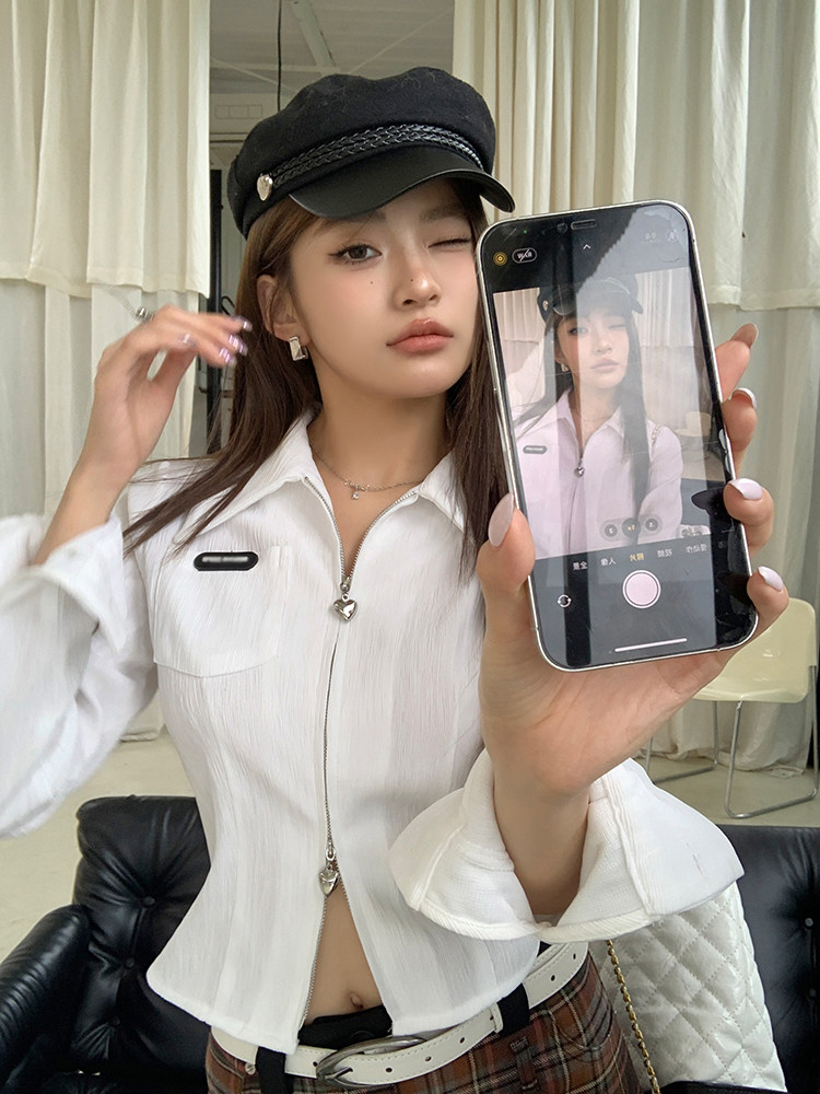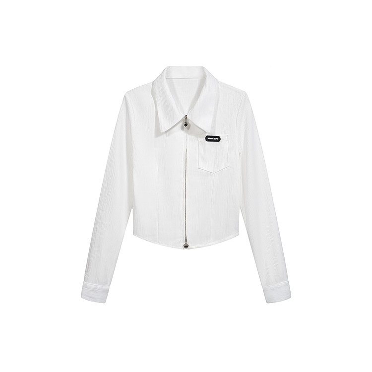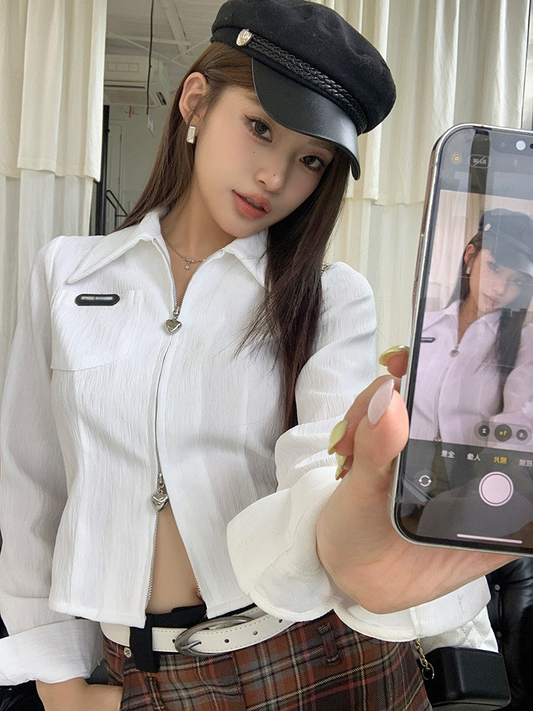 American Retro Polo Collar Zipper Shirt Top for Women, Spring Design, Niche, Pure Desire, Sexy, Slim Fit White Shirt