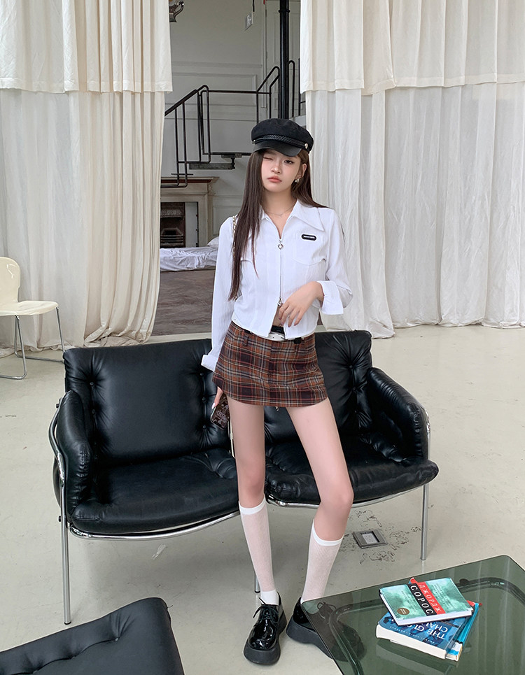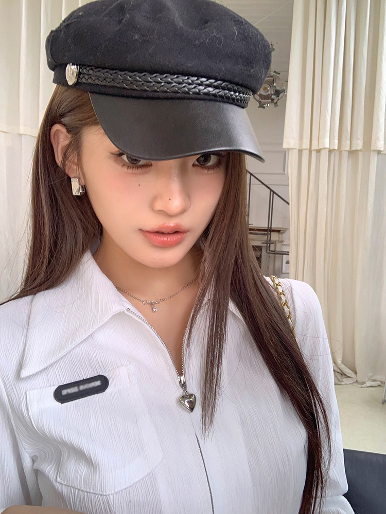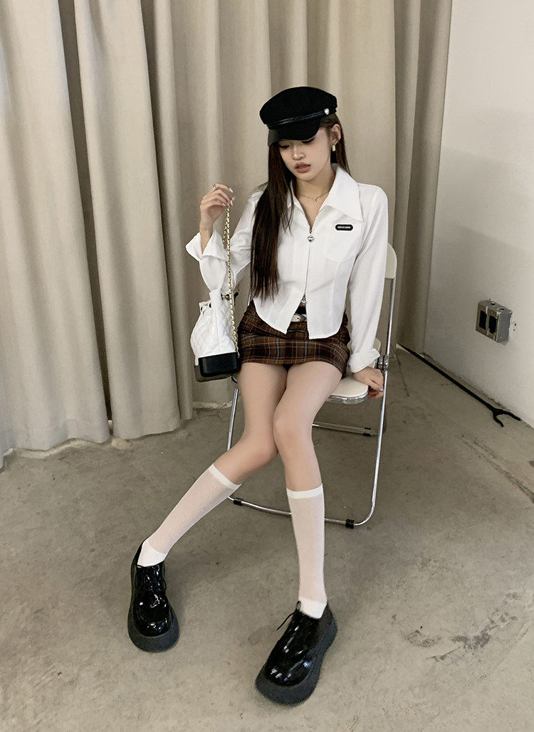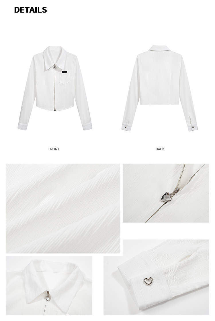 American Retro Polo Collar Zipper Shirt Top for Women, Spring Design, Niche, Pure Desire, Sexy, Slim Fit White Shirt