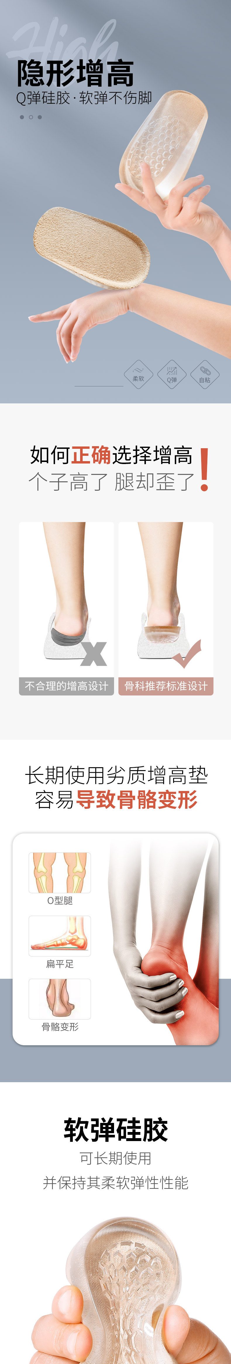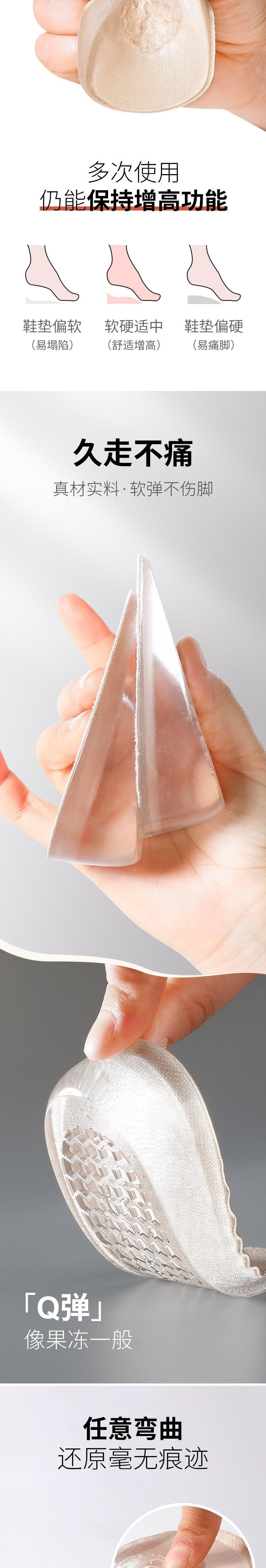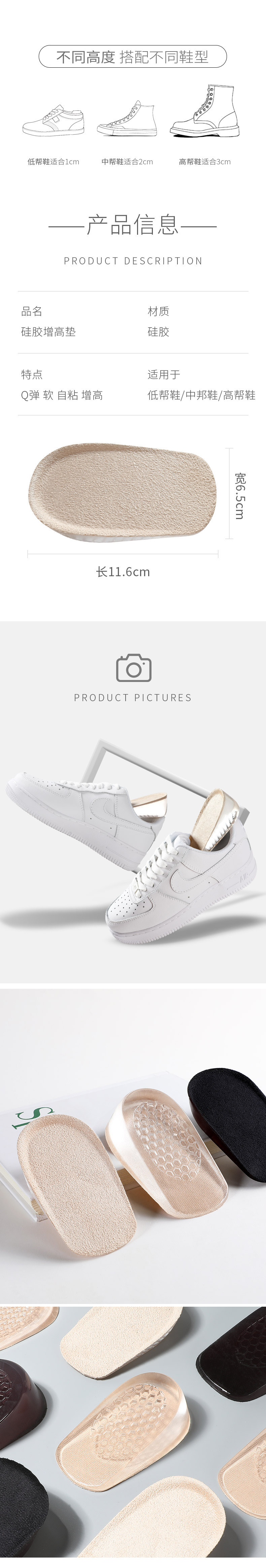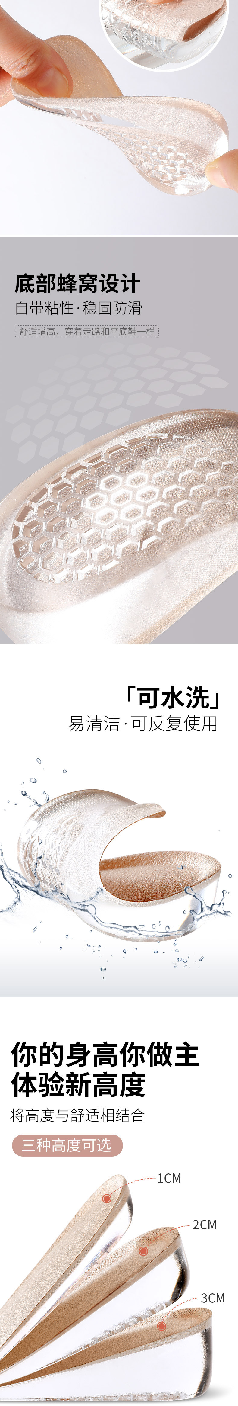 Silicone Height-Increasing Insoles for Women, Soft and Comfortable, Inner Height-Increasing Half Insoles for Martin Boots, Non-Tiring, Invisible Height-Increasing Pads 2cm