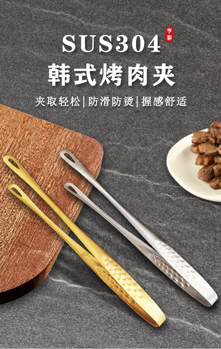 Korean-Style Barbecue Tongs 304 Stainless Steel Barbecue Tongs, Extended and Thickened Kitchen Food Tongs, Steak-Specific Tongs