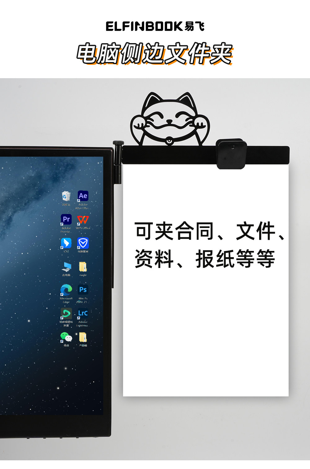 Yifei computer monitor screen side clip folder a4 document clip holder notebook typing clip office cat car
