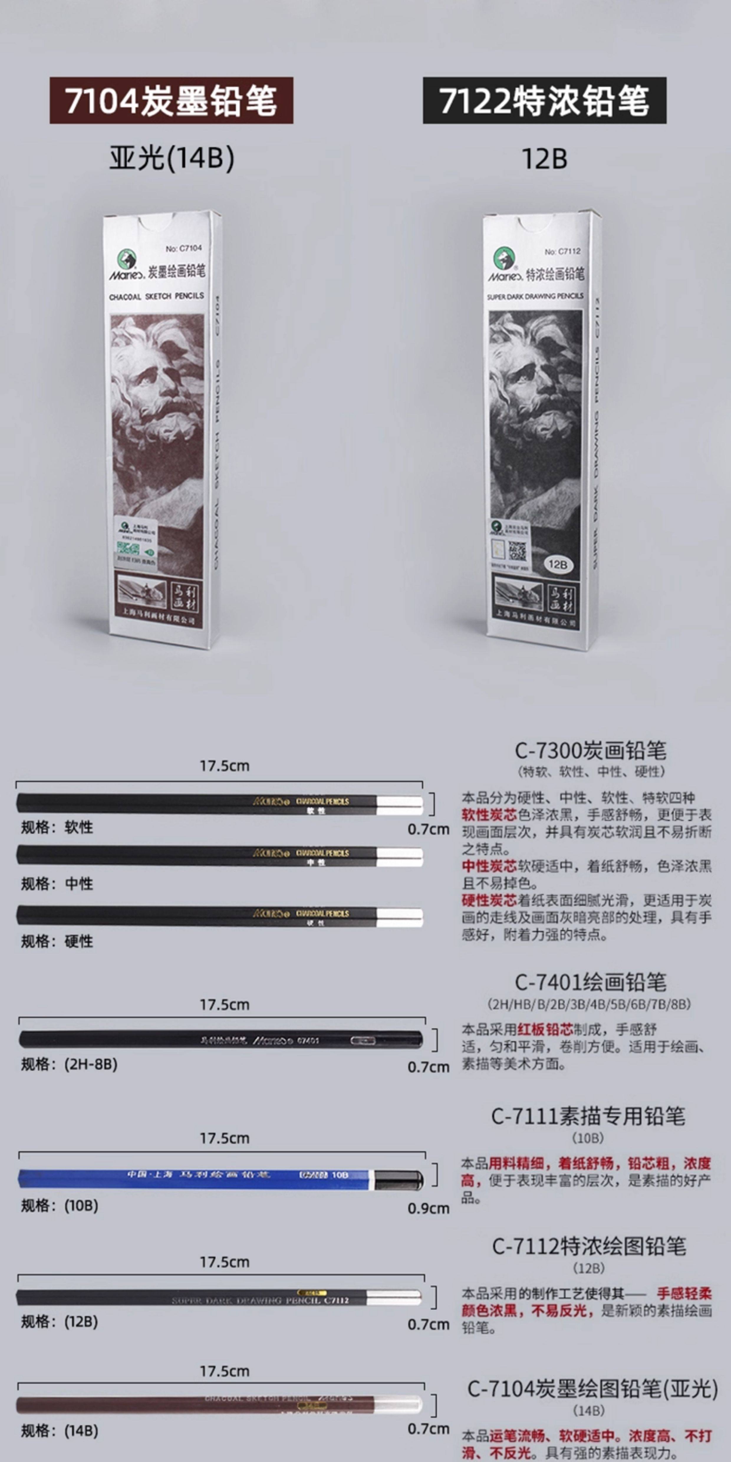 Color Classification 7300 Soft Charcoal/Single,7300 Medium Carbon/Single,7300 Hard Charcoal/Single,7300 Extra Soft / Single,2H/Single,Hb/Single,B/Single,2B/Single,3B/Single,4B/Single,5B/Single,6B/Single,7B/Single,8B/Single,Thick Rod 8B/Single,Thick Rod 10B/Single,12B/Single,14B/Single,16B/Single,Marley 4B Eraser,Marley Ultra-Clean Rubber,Marley Plastic Eraser,Marley Art Eraser,3 Pieces of Marley Paper Erasing Pens,8K Sketch Paper[160g-20 Sheets],4K Sketch Paper[160g-20 Sheets],8K Sketch Paper[50 Sheets],A4 Sketchbook[30 Sheets],8K Sketchbook[30 Sheets]