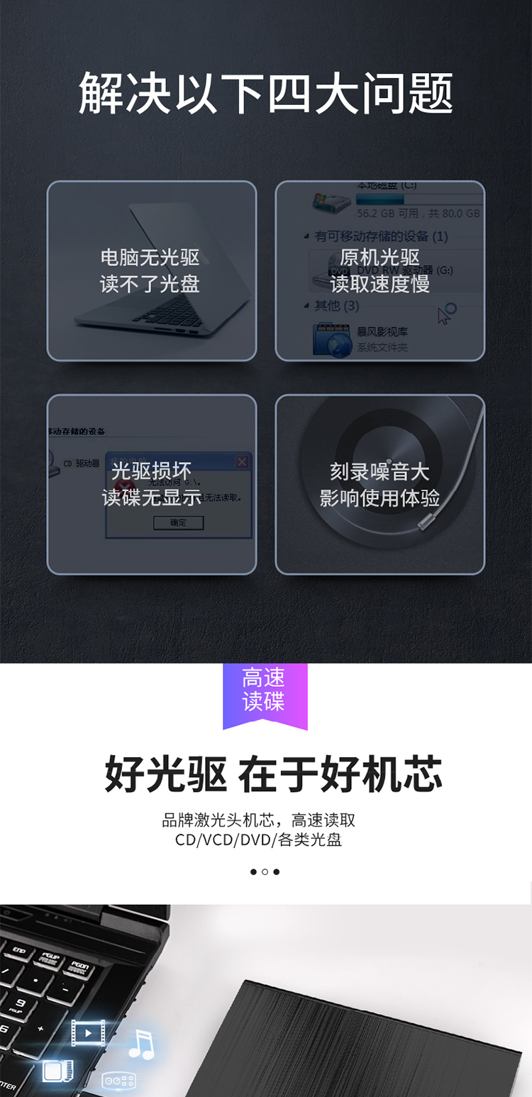 Mobile Optical Drive Enclosure, External Usb3.0 External Optical Drive, Desktop Computer USB External Universal Optical Drive, Suitable for Laptops and All-In-One Computers, Compatible with Huawei, Lenovo, Hp Computers, Dvd Burning and Disc Playback