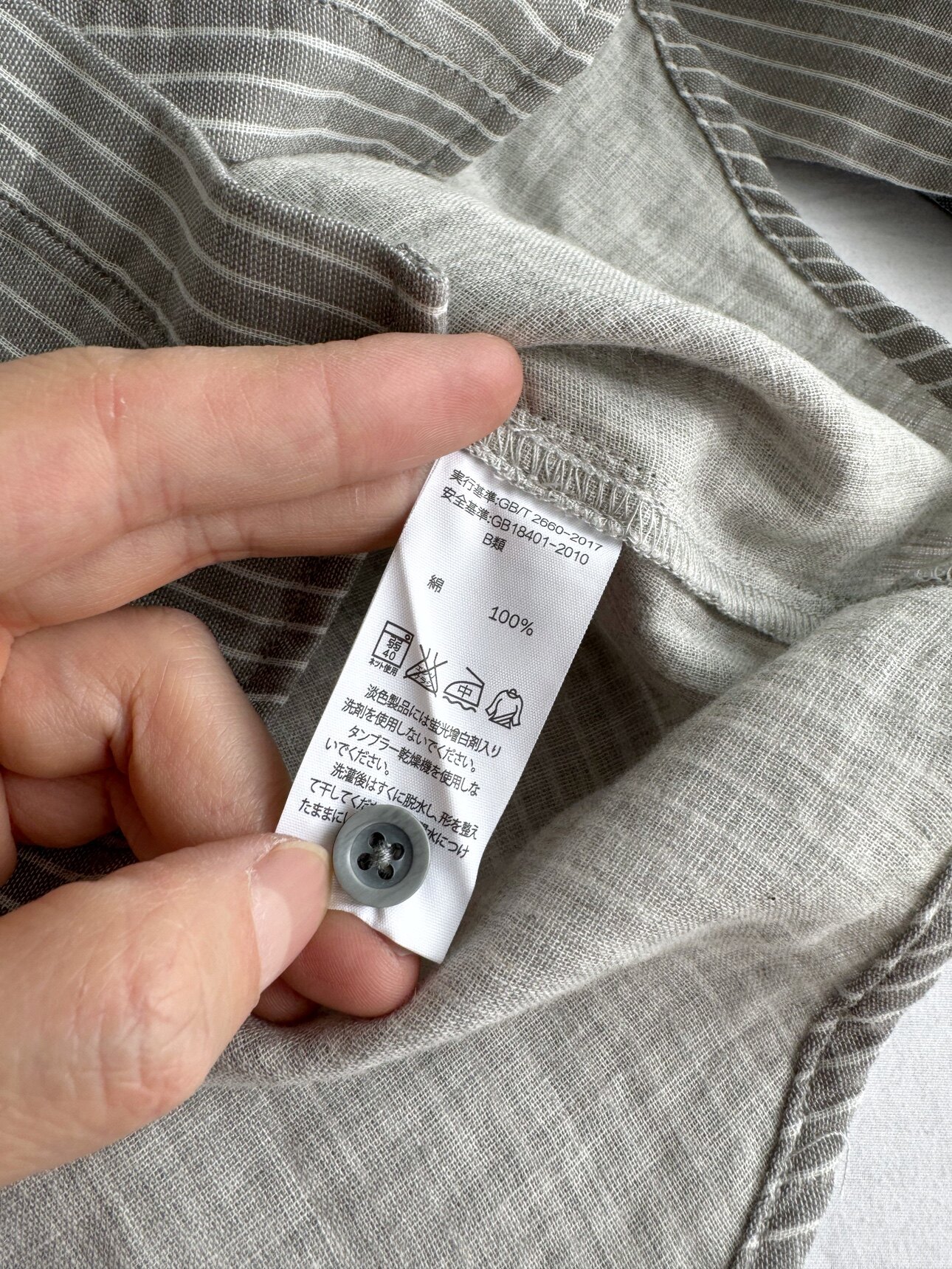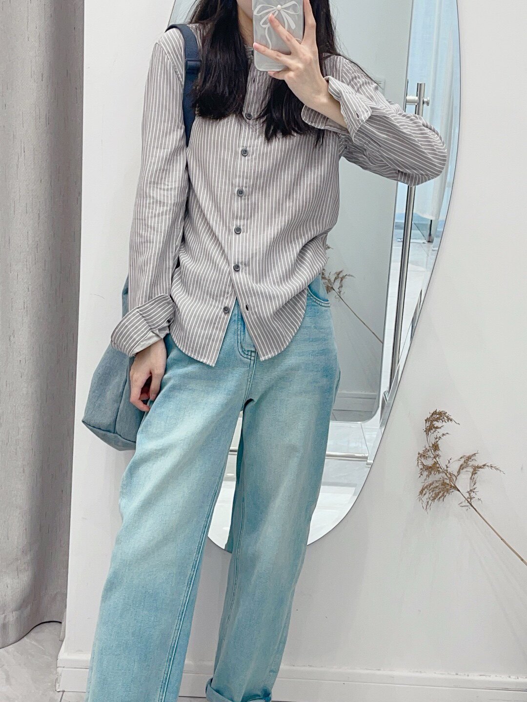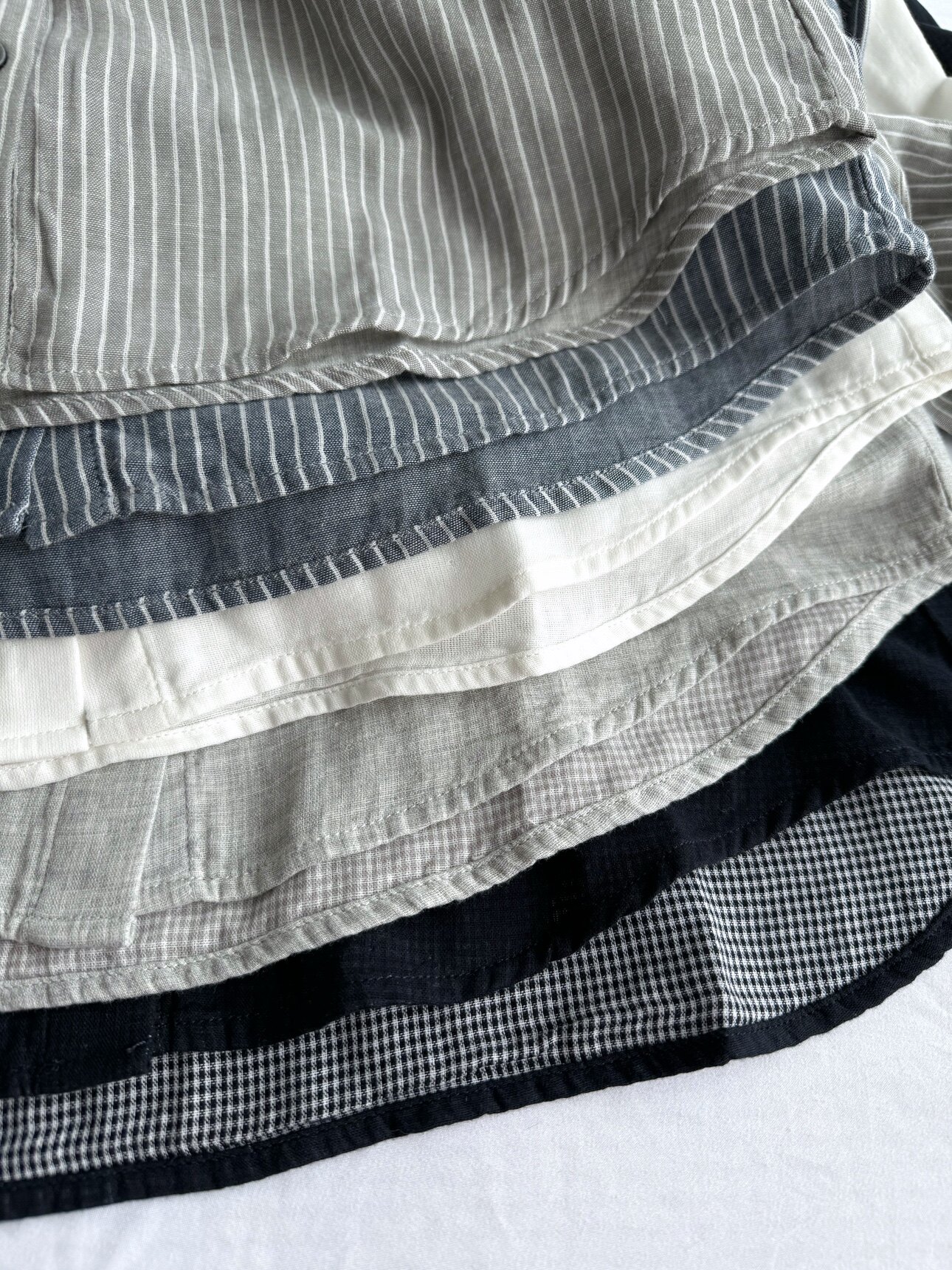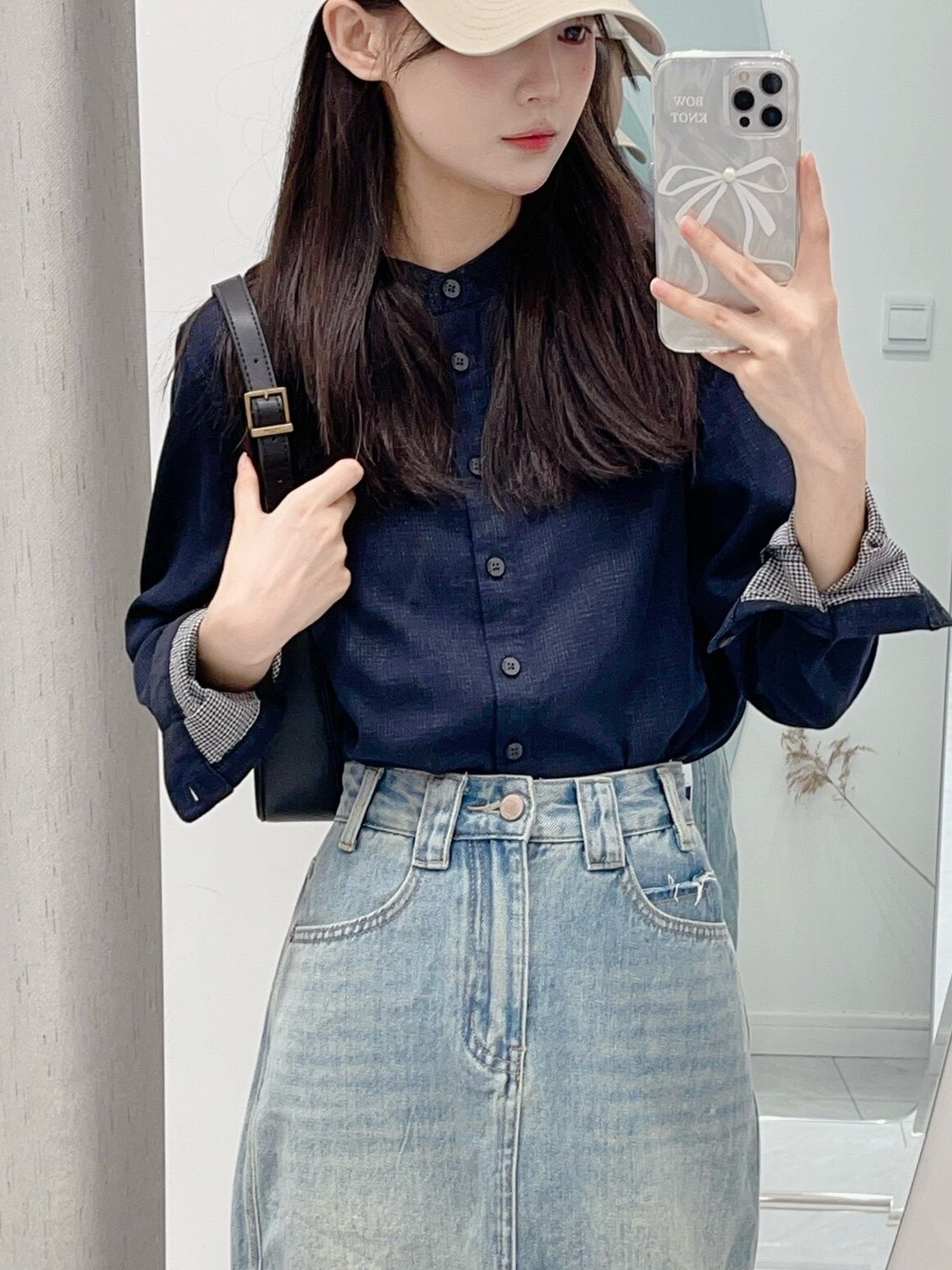 Japanese Order Spring and Autumn New Product Simple Retro Collarless Striped Double-Layer Gauze Solid Color Women's Shirt Long-Sleeved Blouse