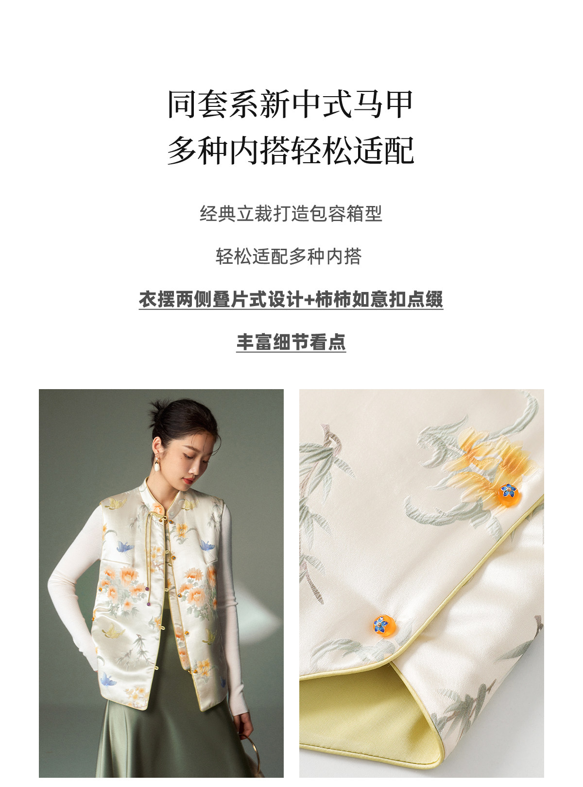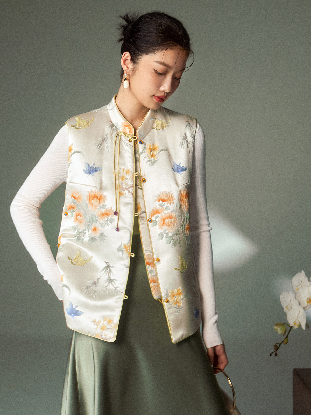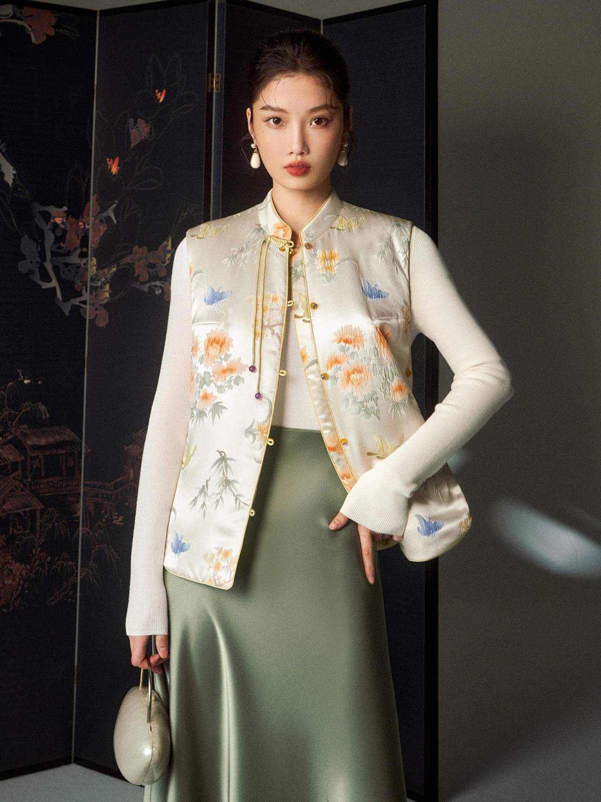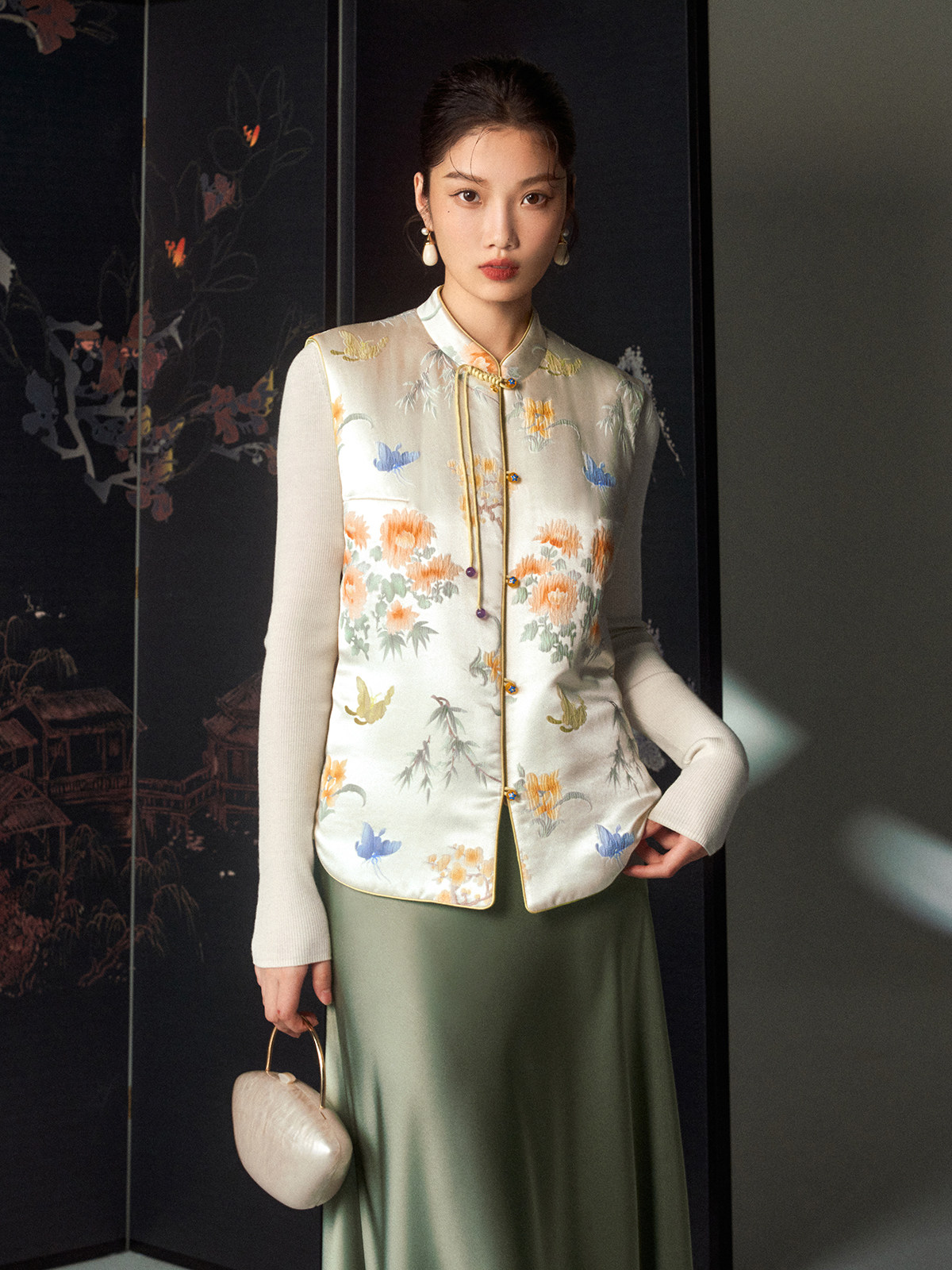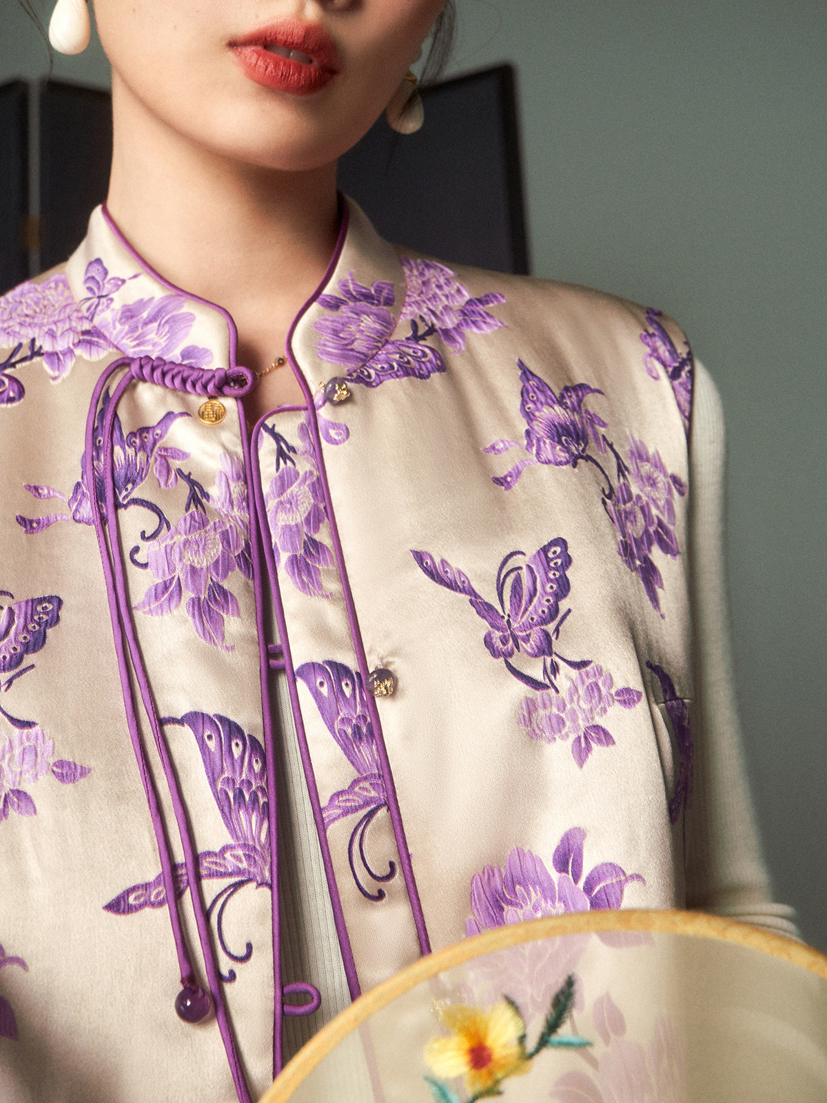 Cokeya/Oriental Beauty~6A Grade Silk Guanle Crepe Tracing Print Two-Way New Chinese Style National Style Jacket Vest