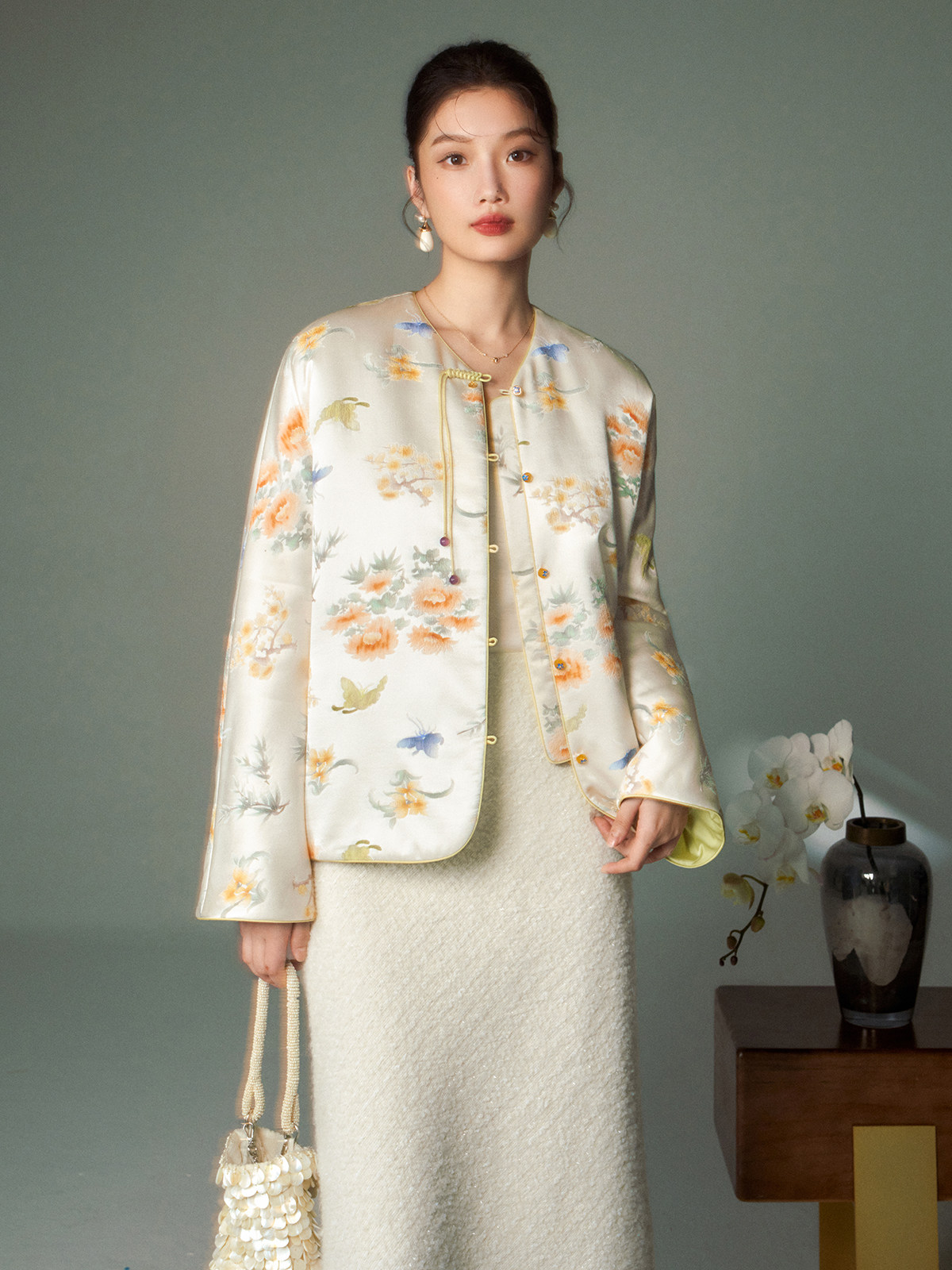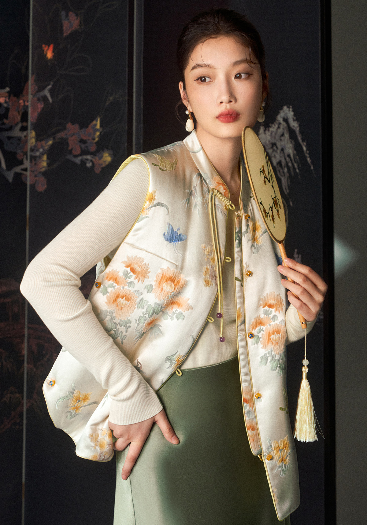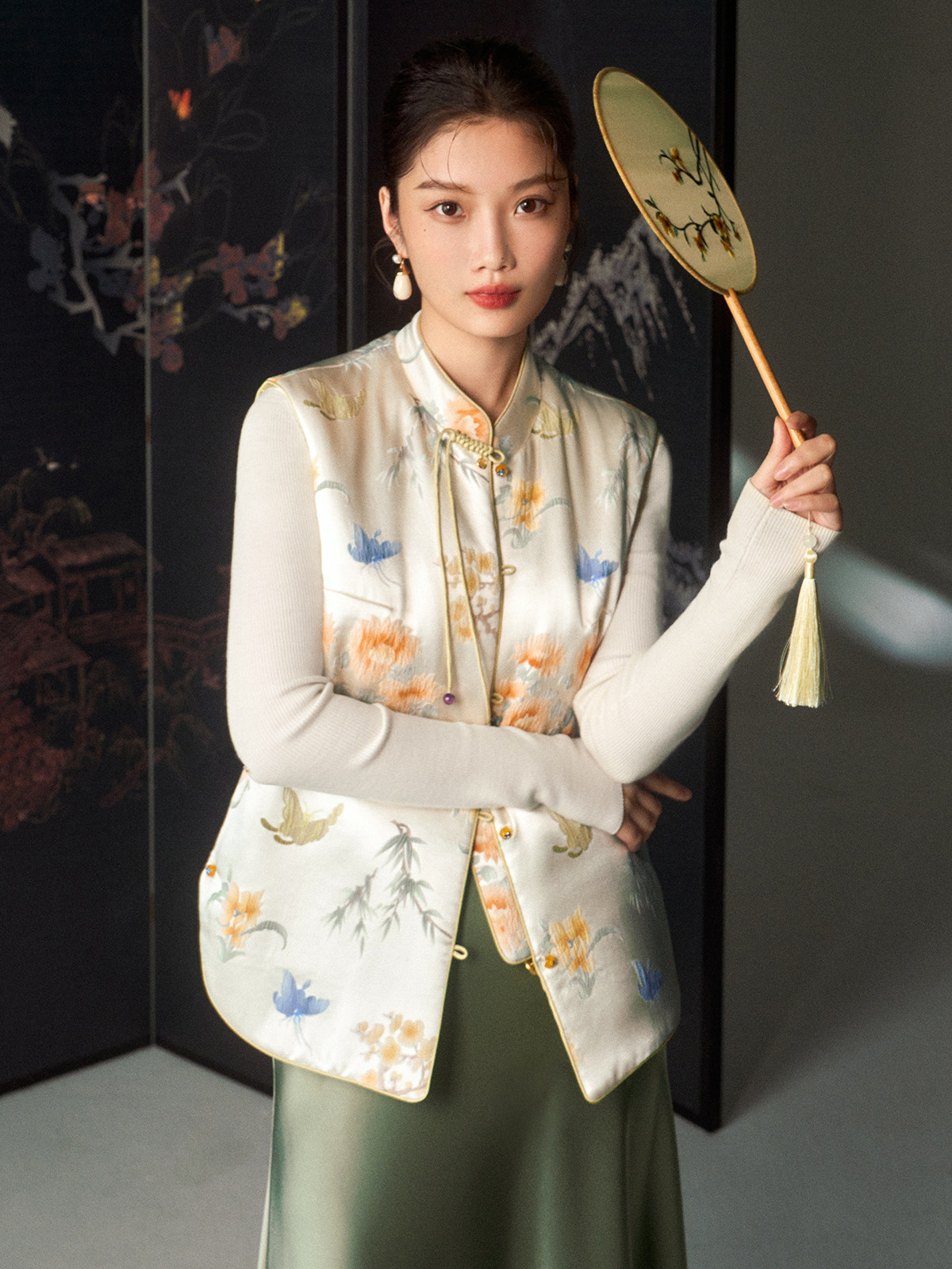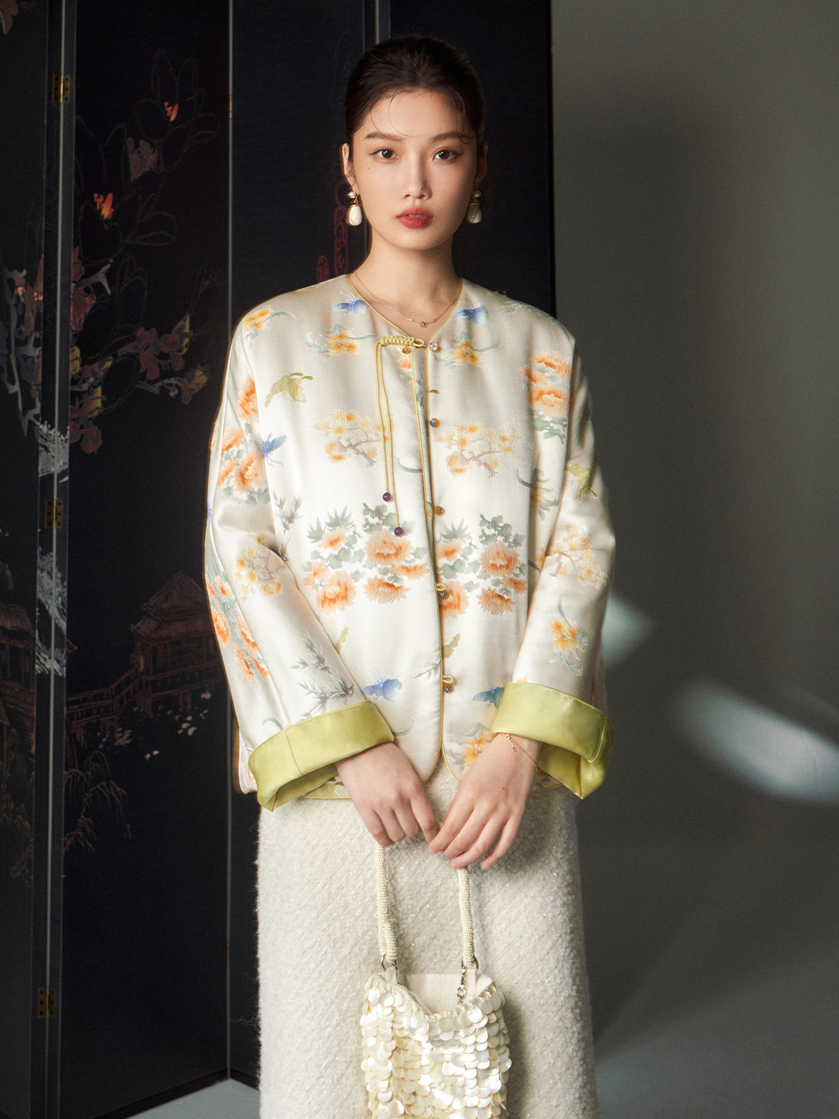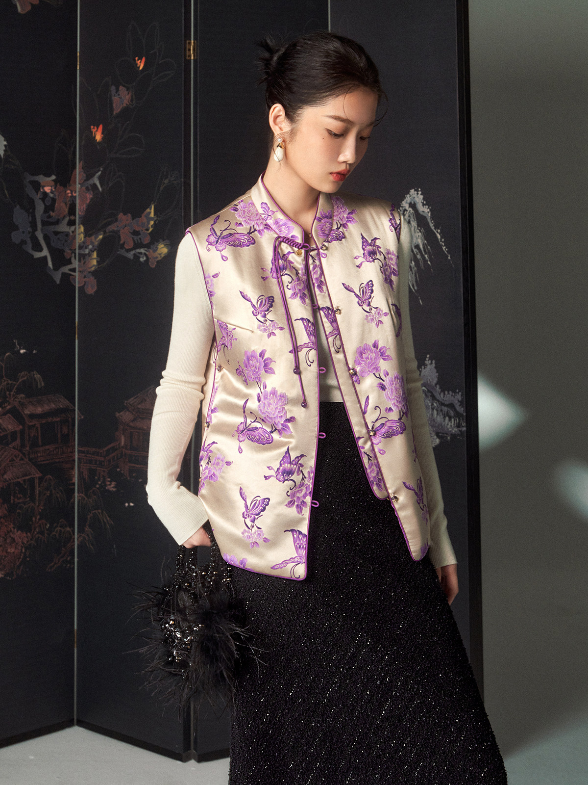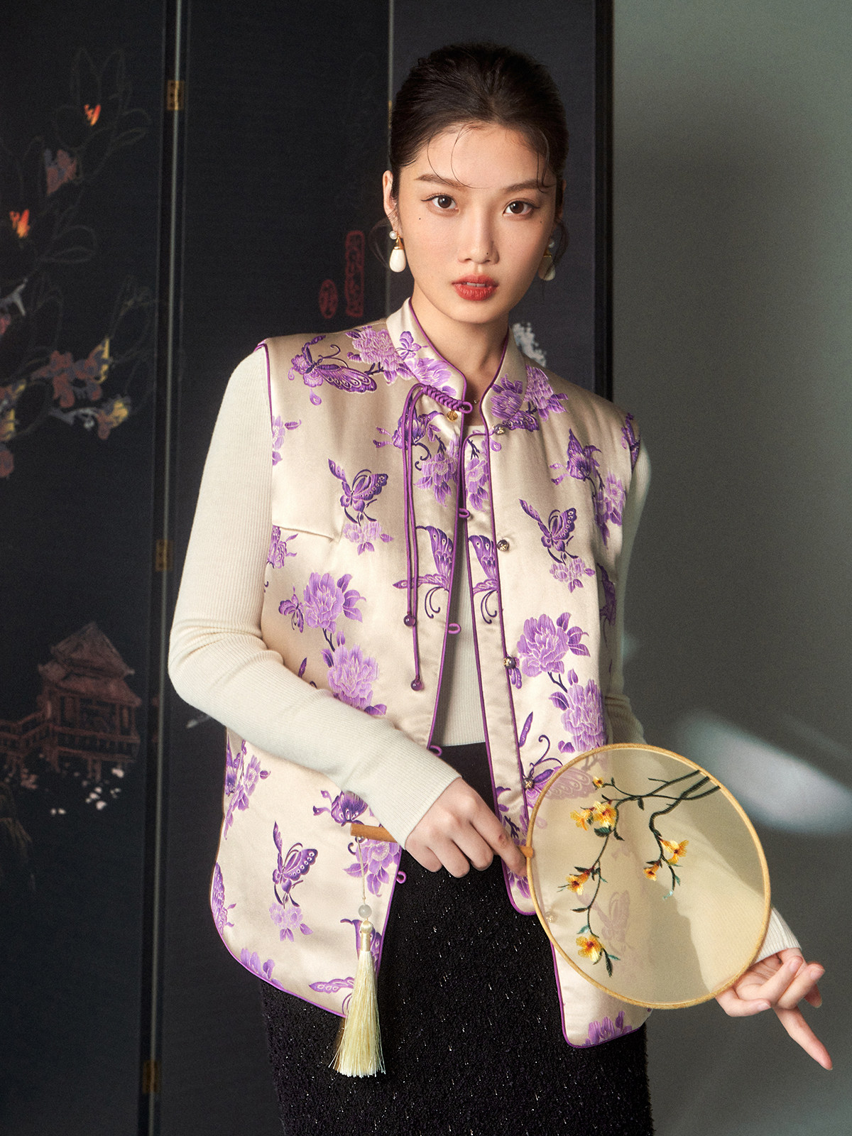 Cokeya/Oriental Beauty~6A Grade Silk Guanle Crepe Tracing Print Two-Way New Chinese Style National Style Jacket Vest