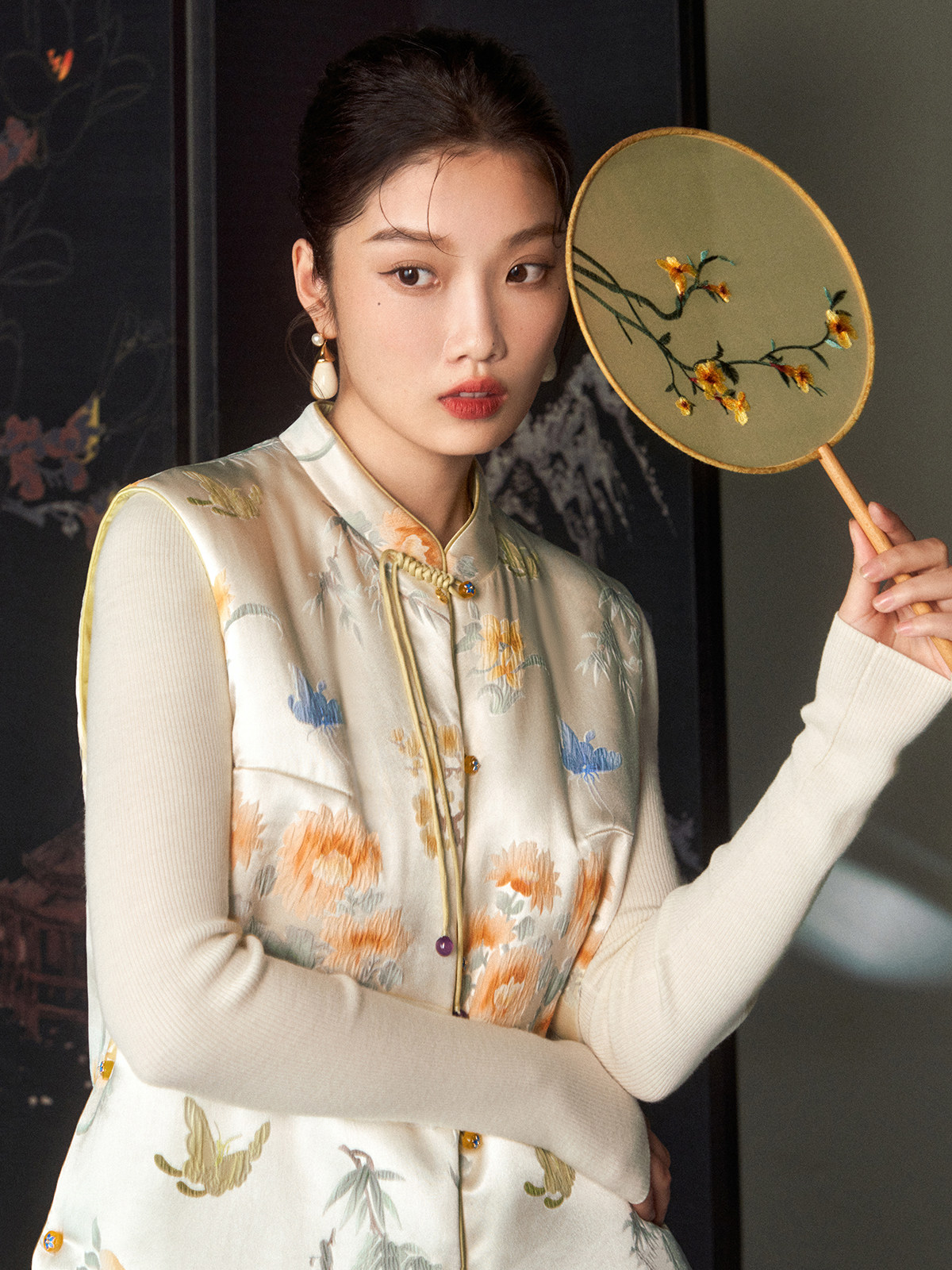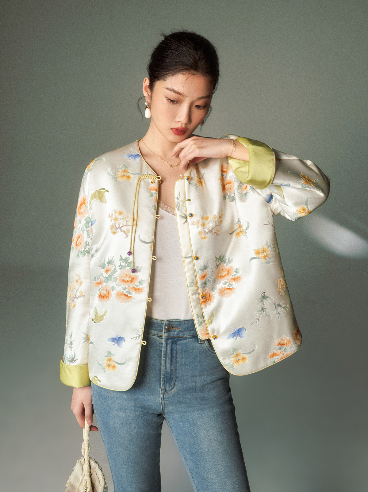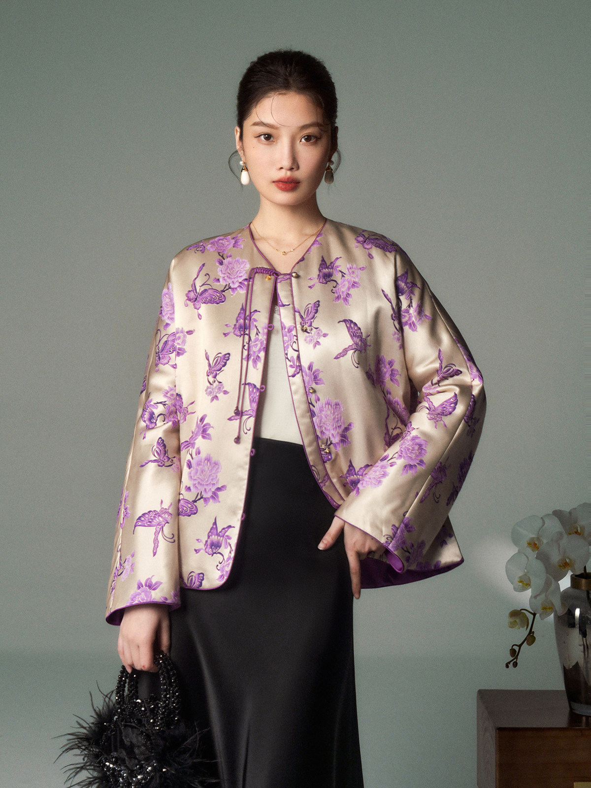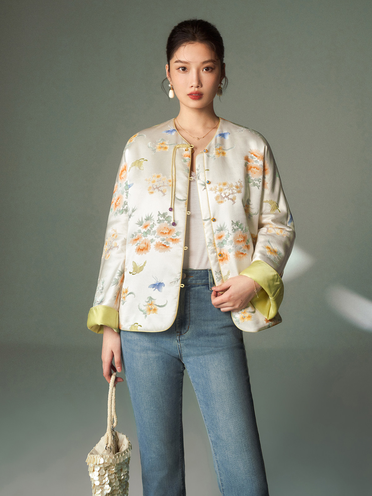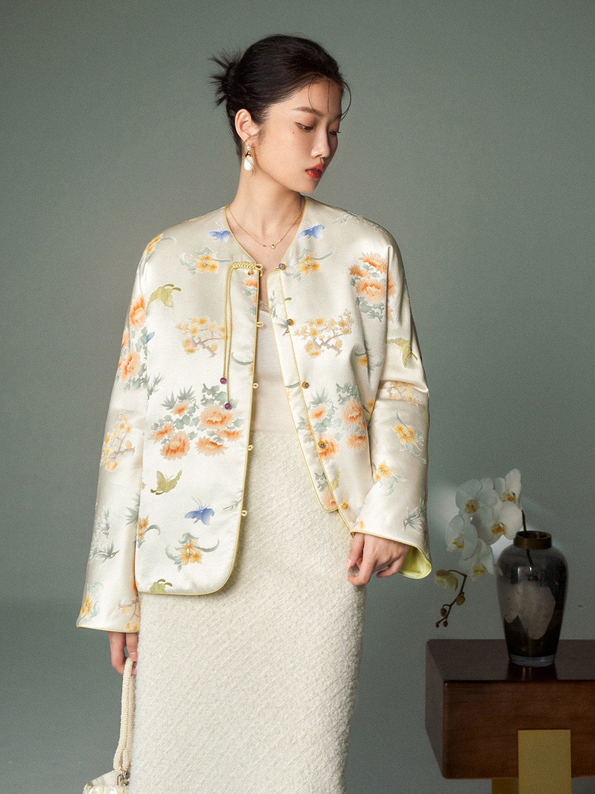 Cokeya/Oriental Beauty~6A Grade Silk Guanle Crepe Tracing Print Two-Way New Chinese Style National Style Jacket Vest