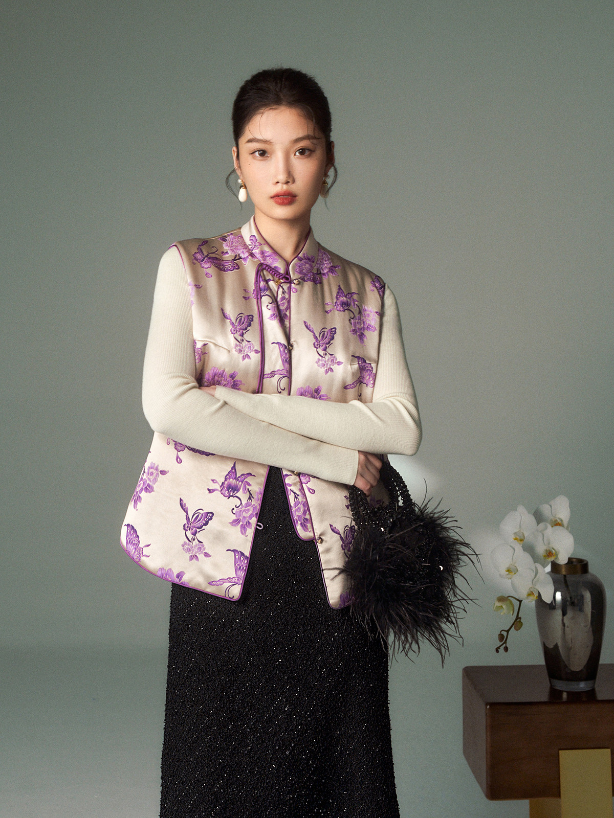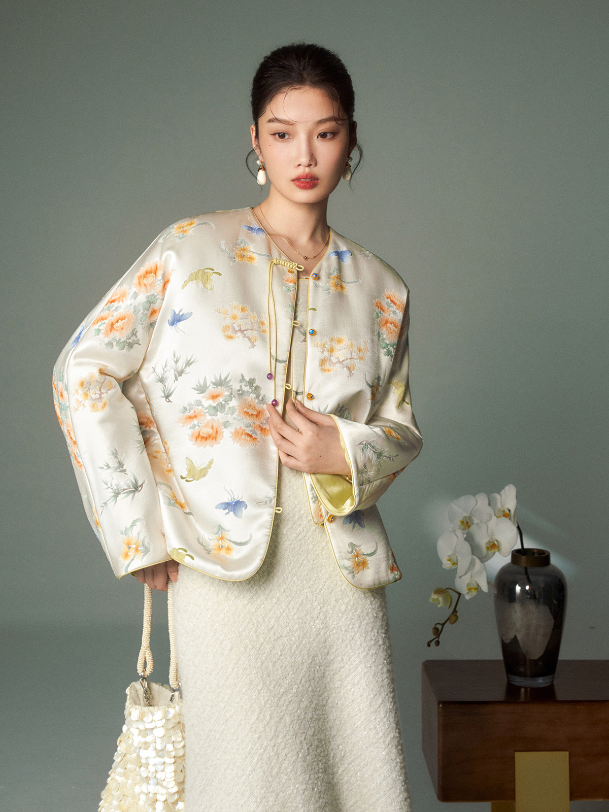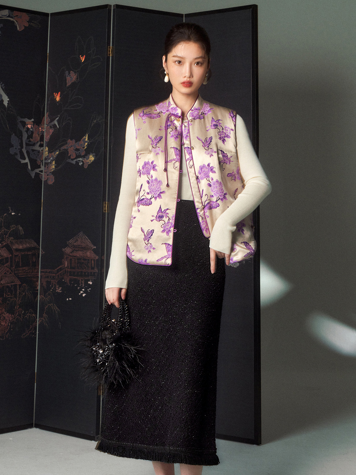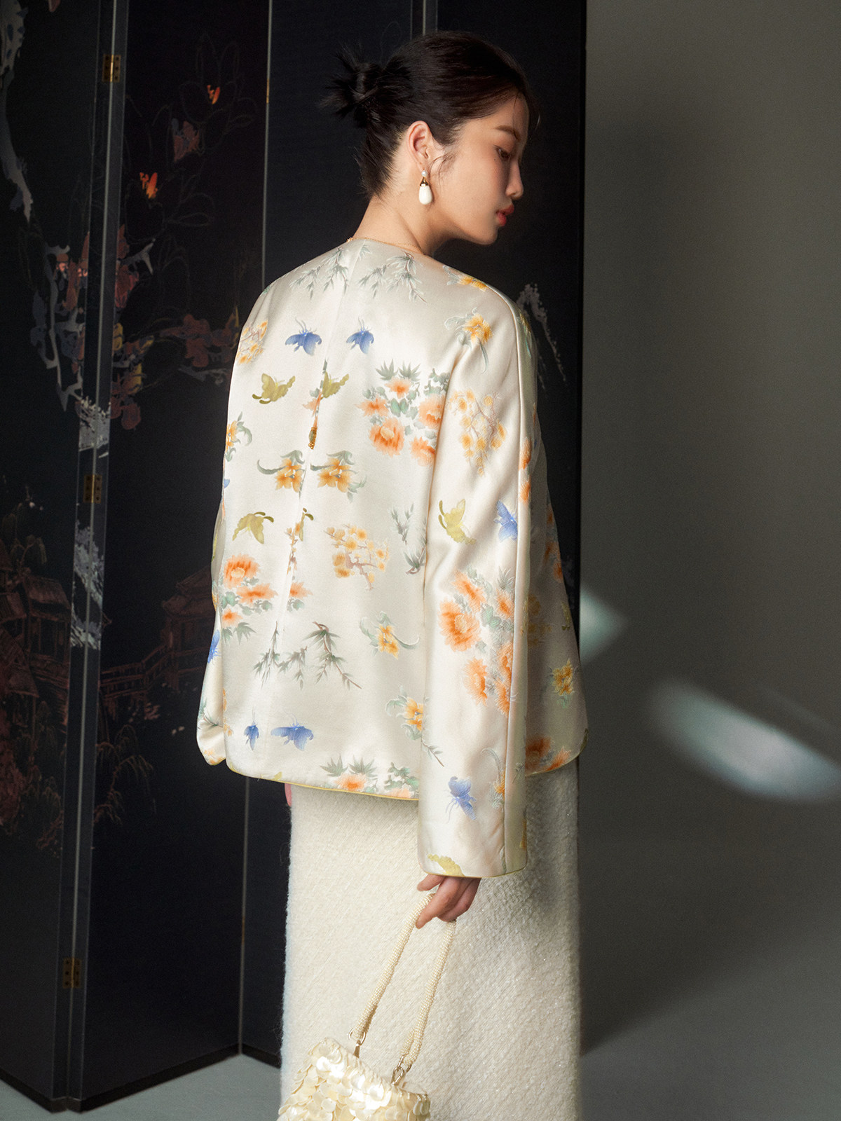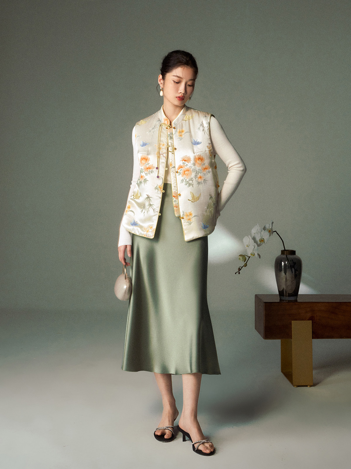 Cokeya/Oriental Beauty~6A Grade Silk Guanle Crepe Tracing Print Two-Way New Chinese Style National Style Jacket Vest