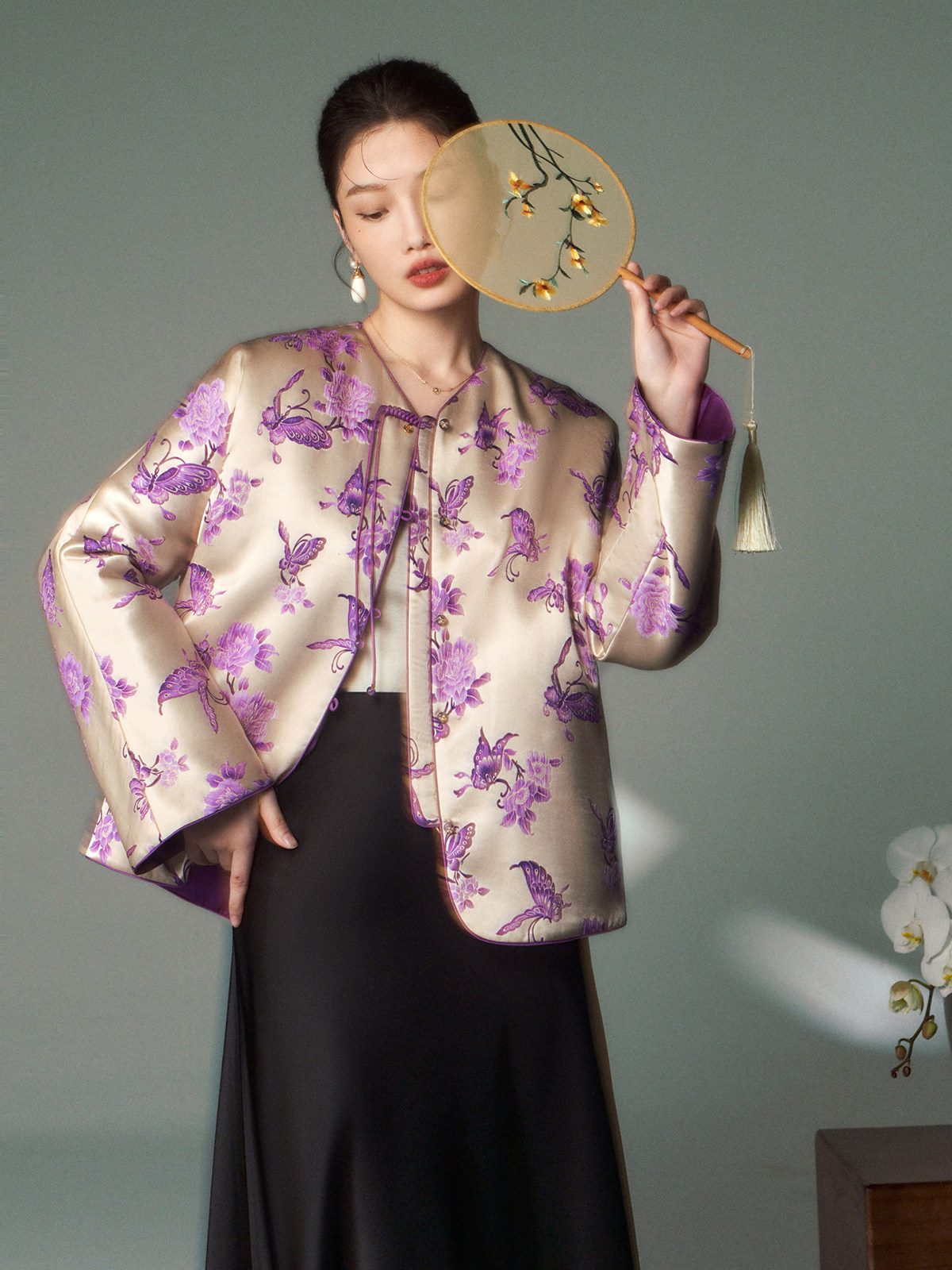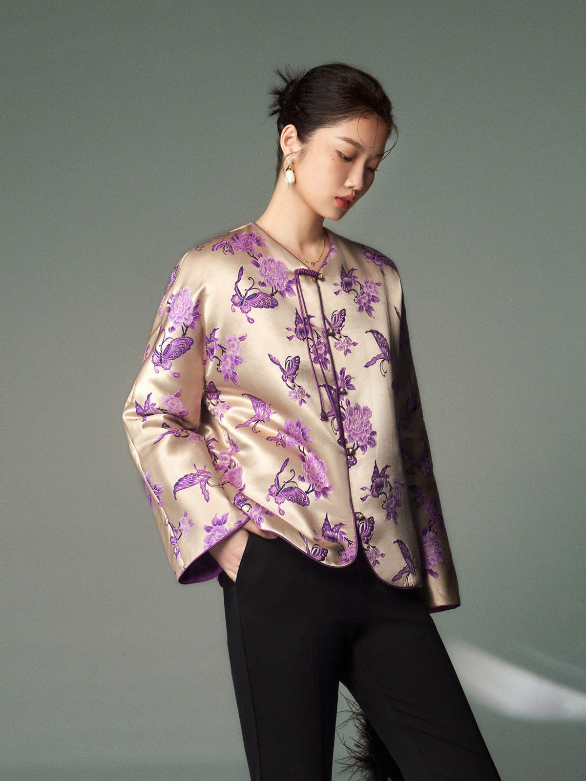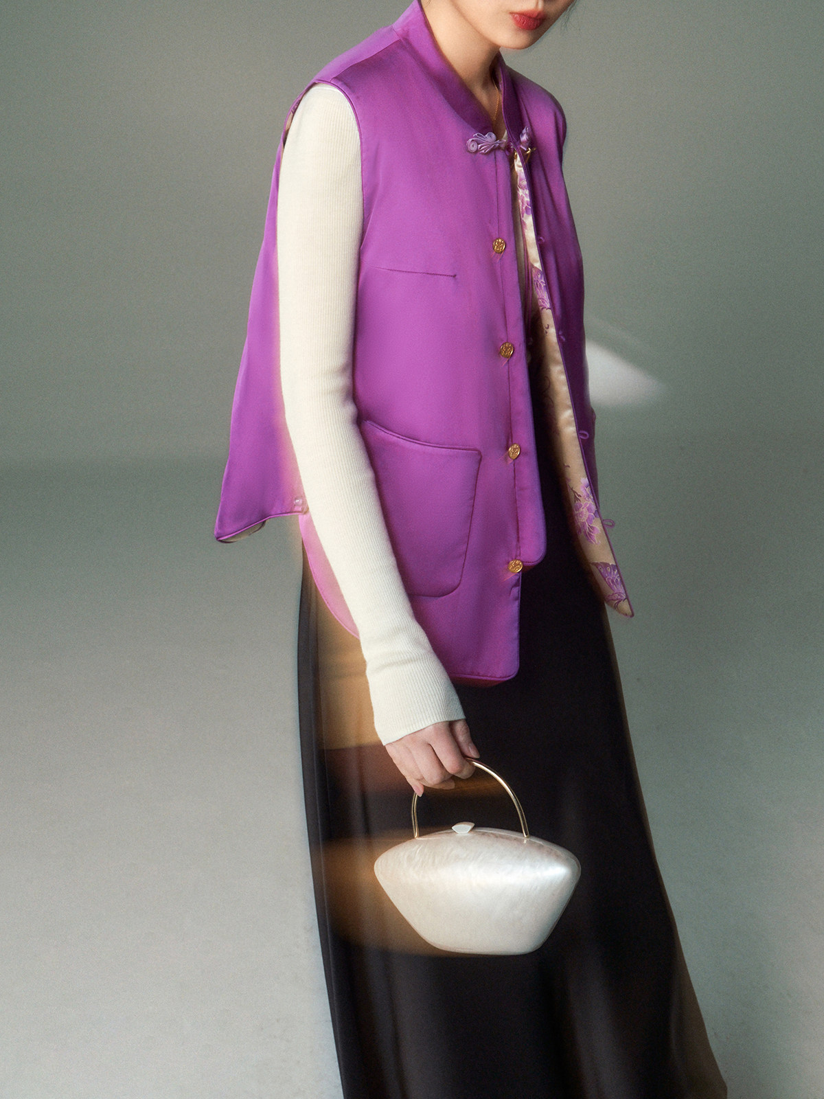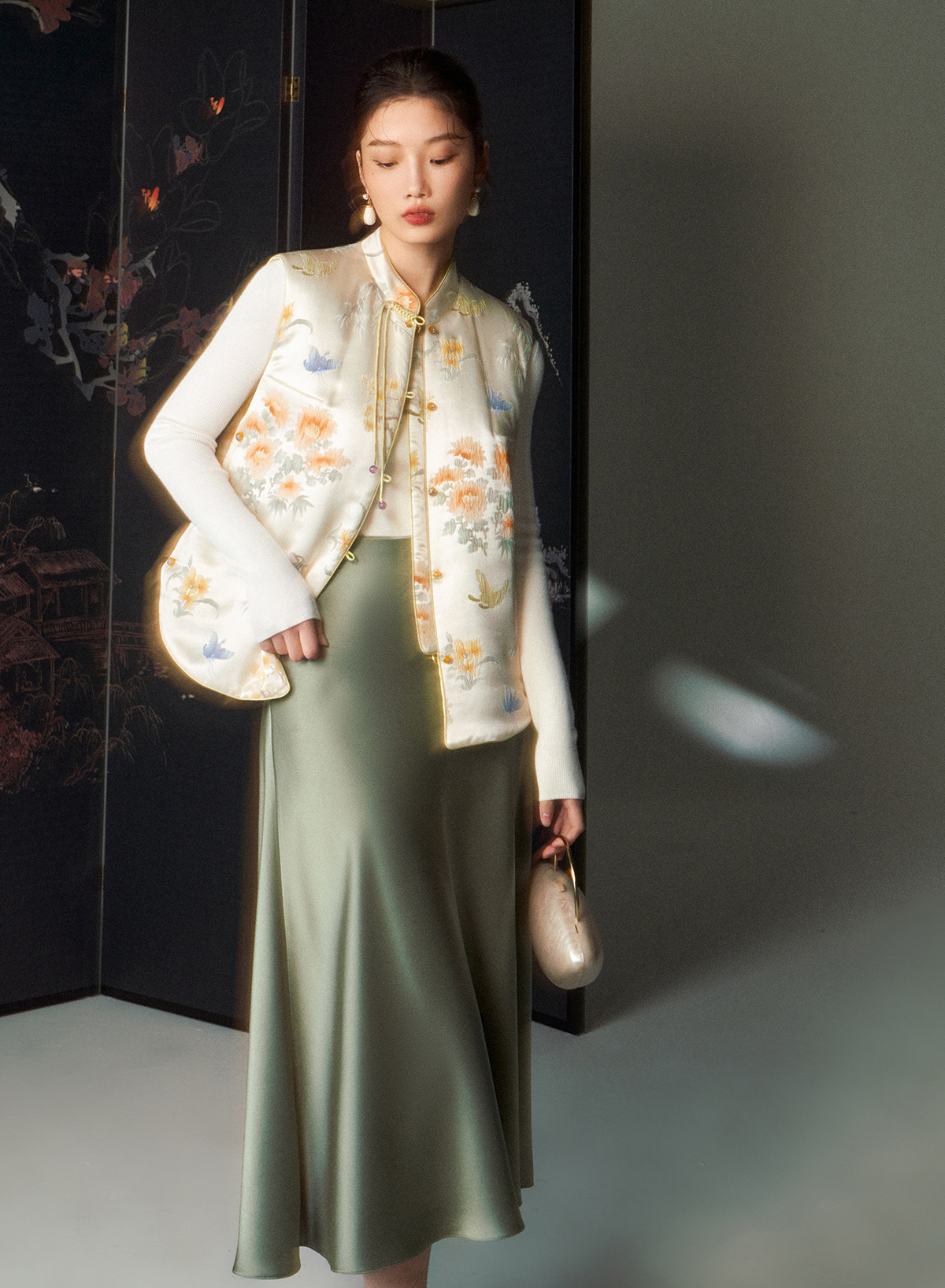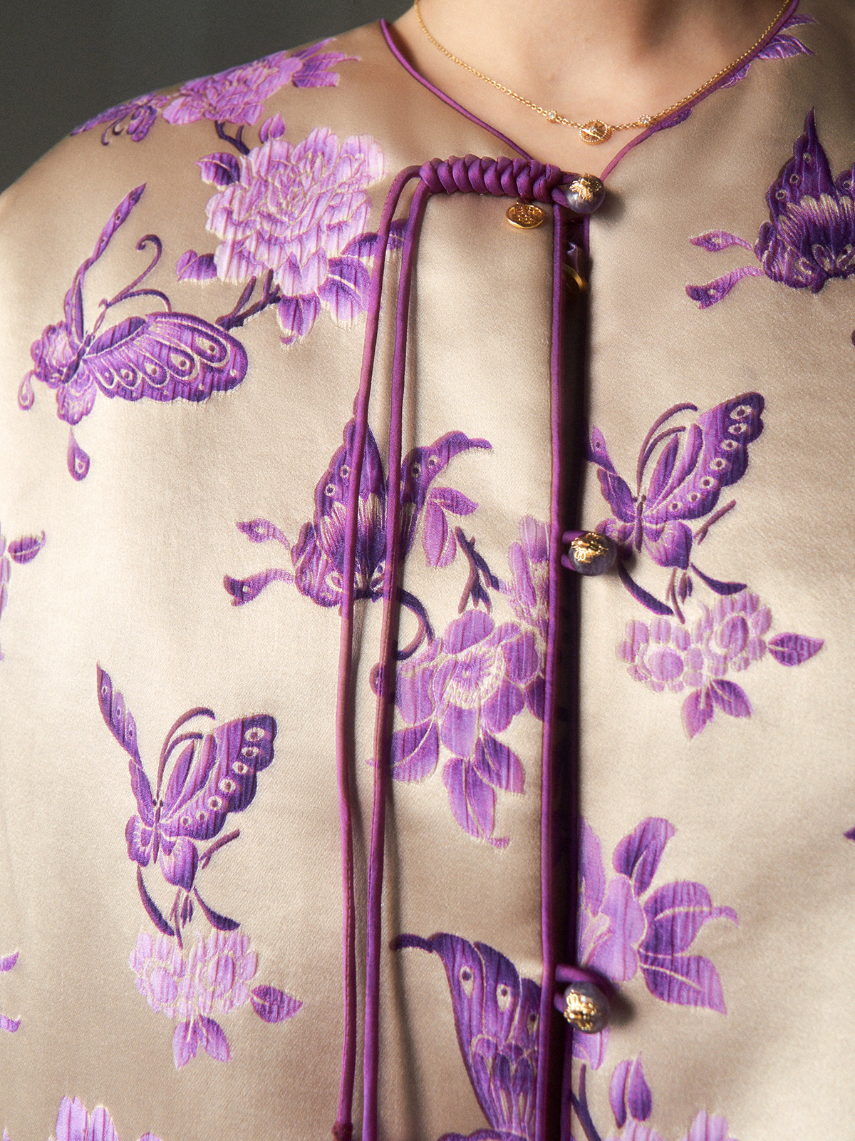 Cokeya/Oriental Beauty~6A Grade Silk Guanle Crepe Tracing Print Two-Way New Chinese Style National Style Jacket Vest