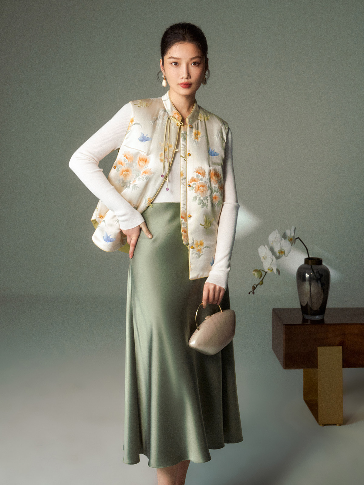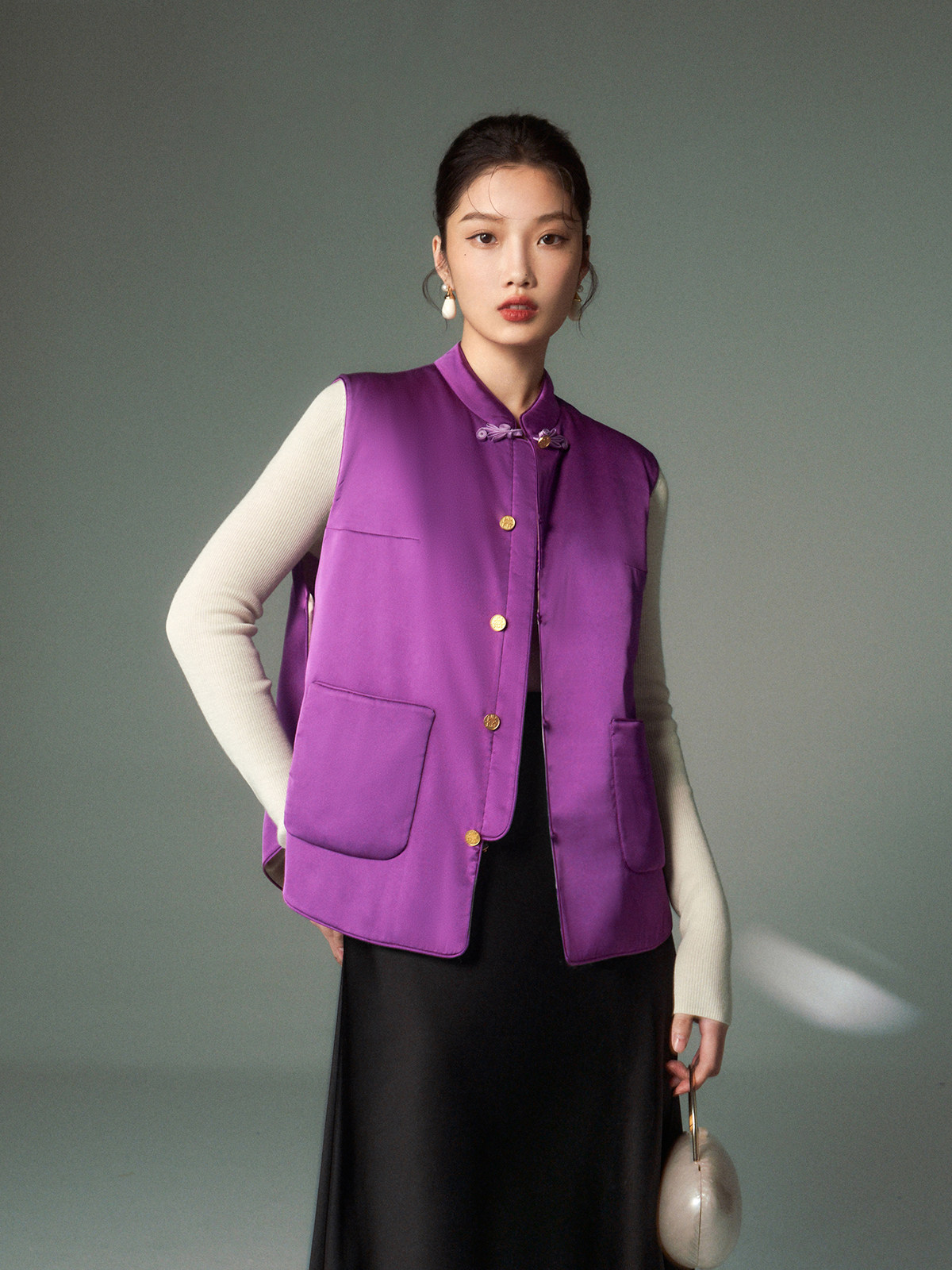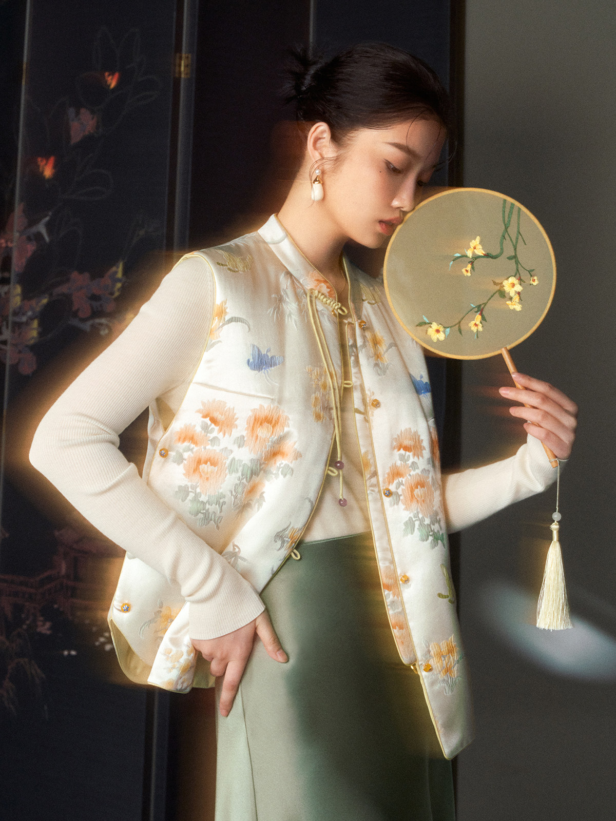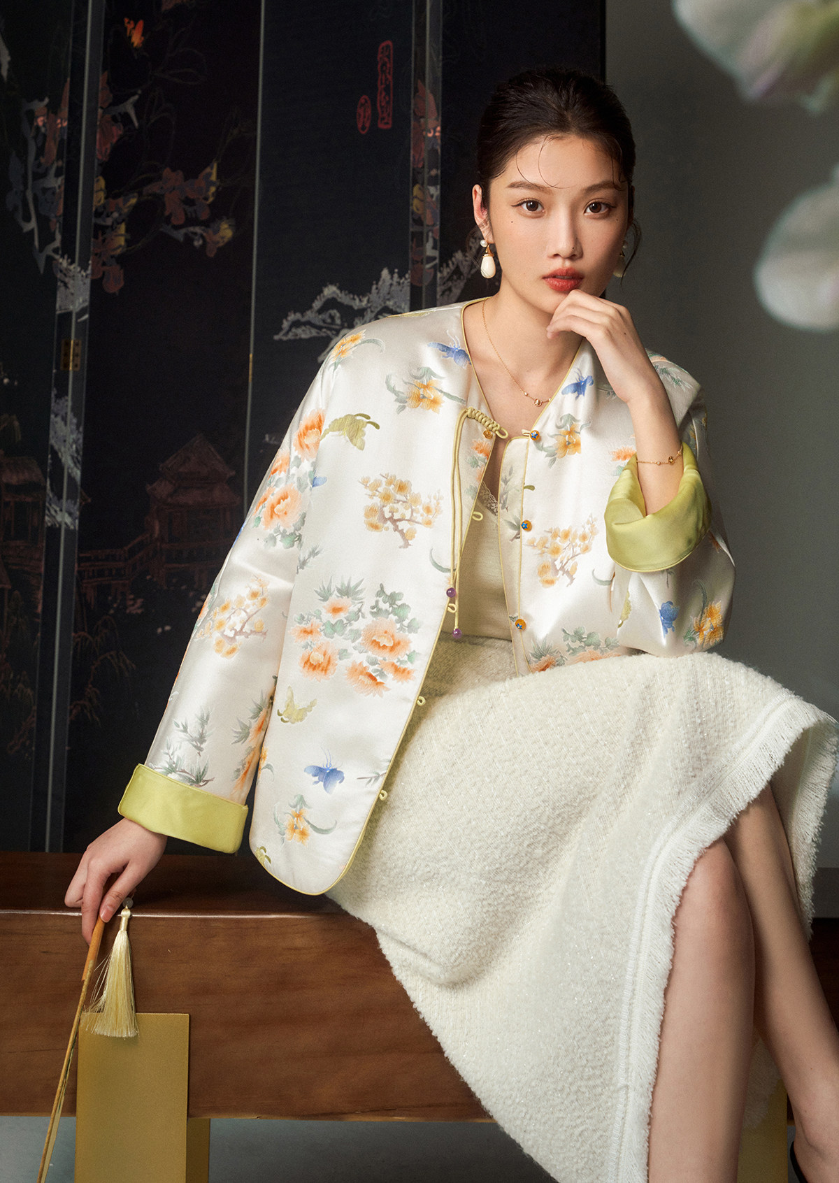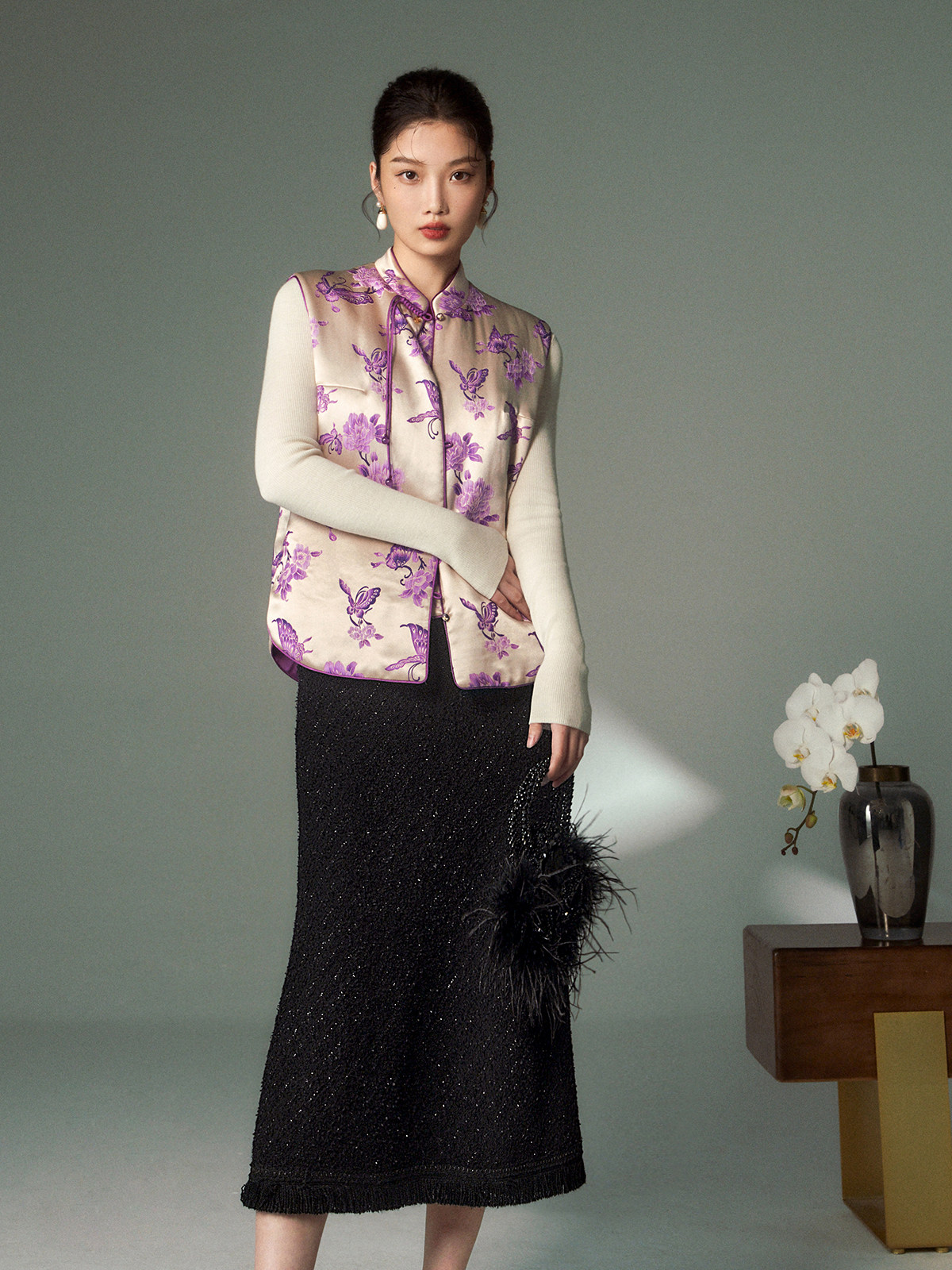 Cokeya/Oriental Beauty~6A Grade Silk Guanle Crepe Tracing Print Two-Way New Chinese Style National Style Jacket Vest
