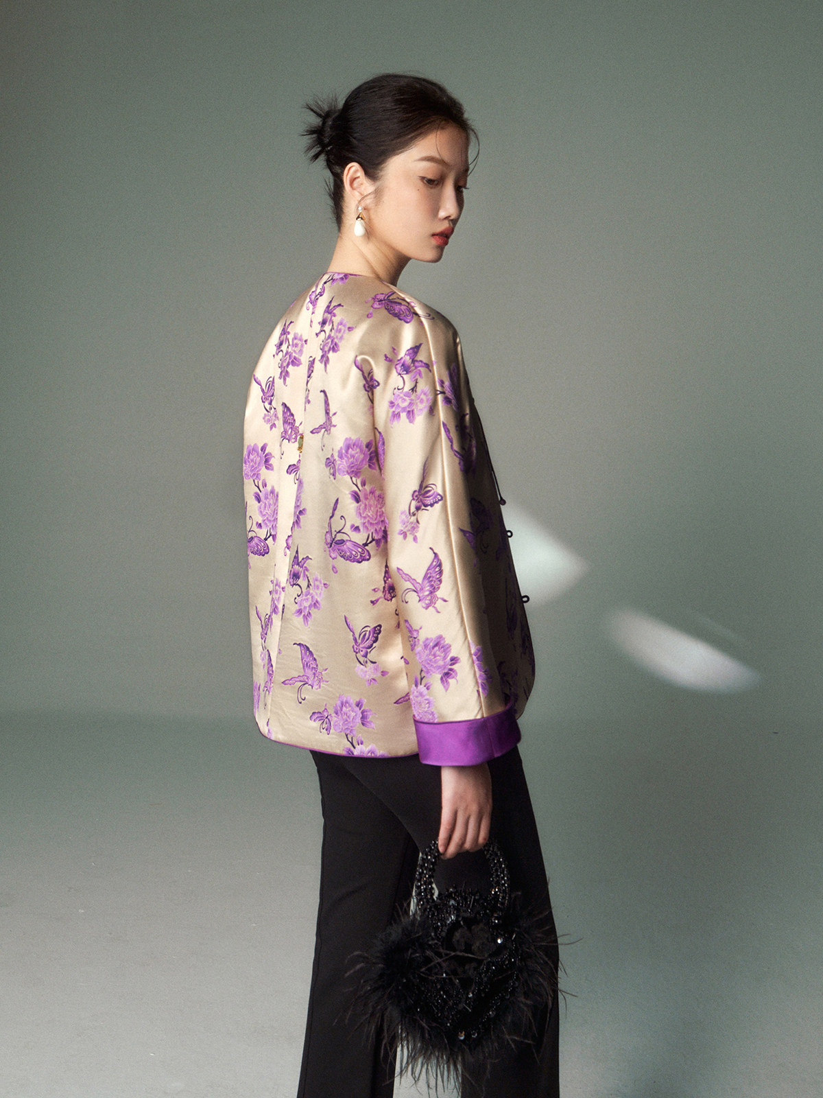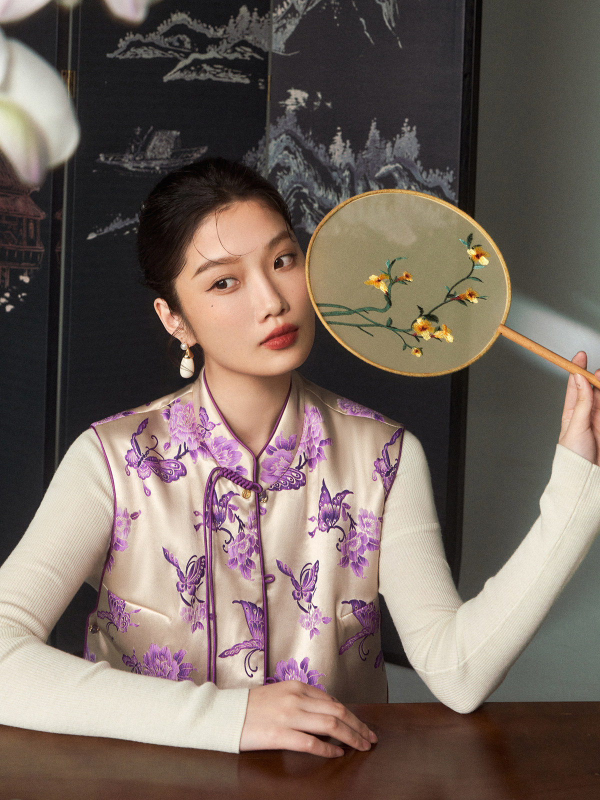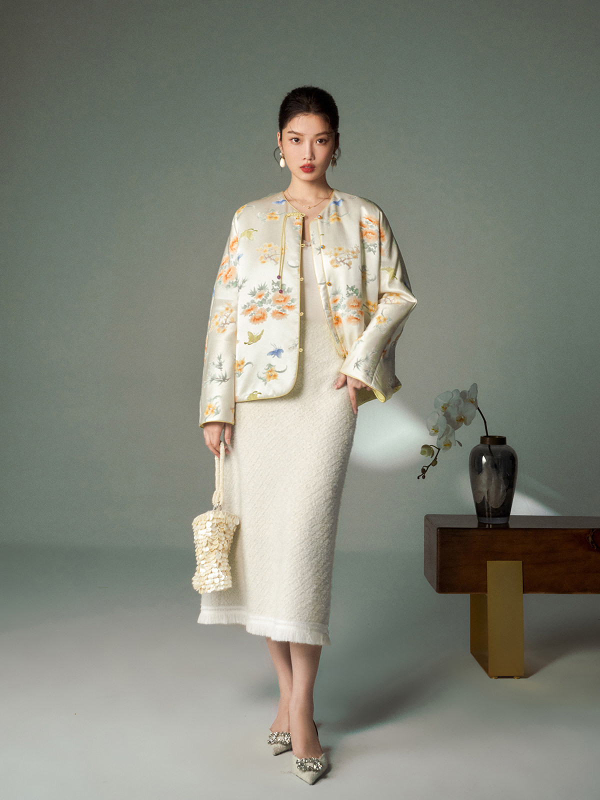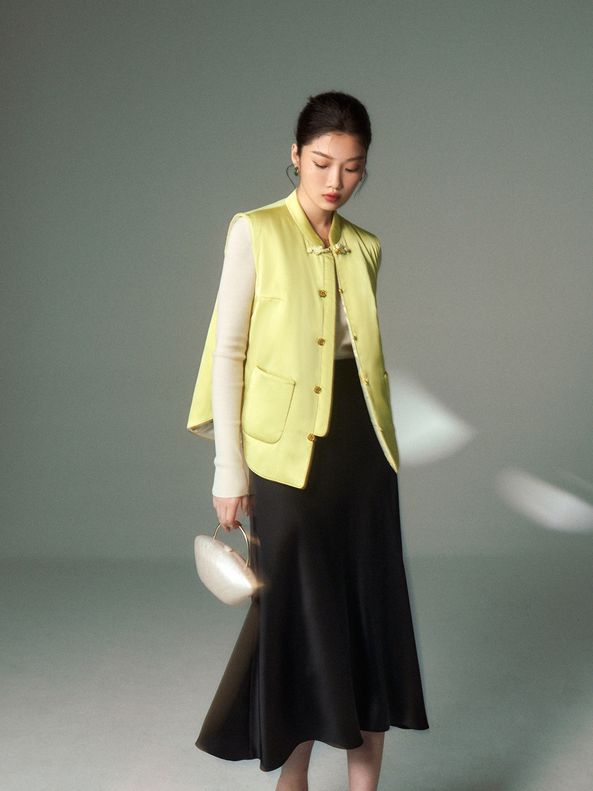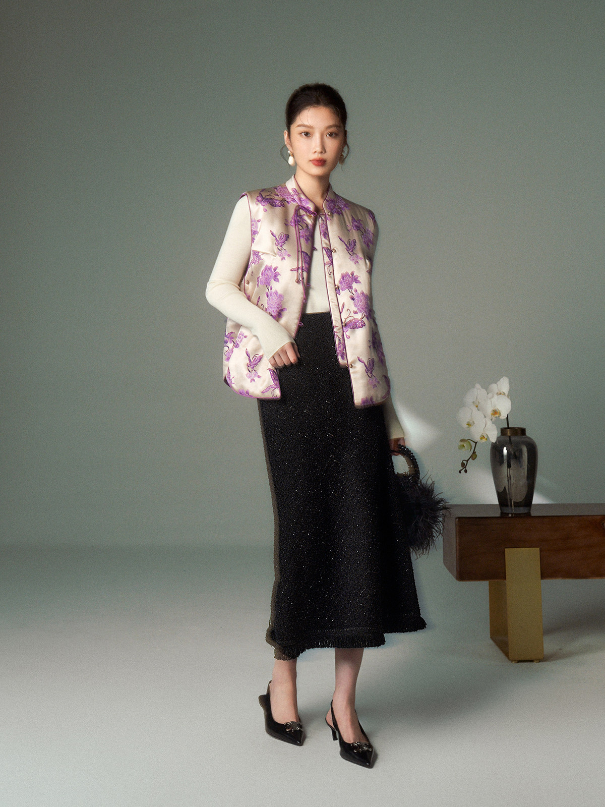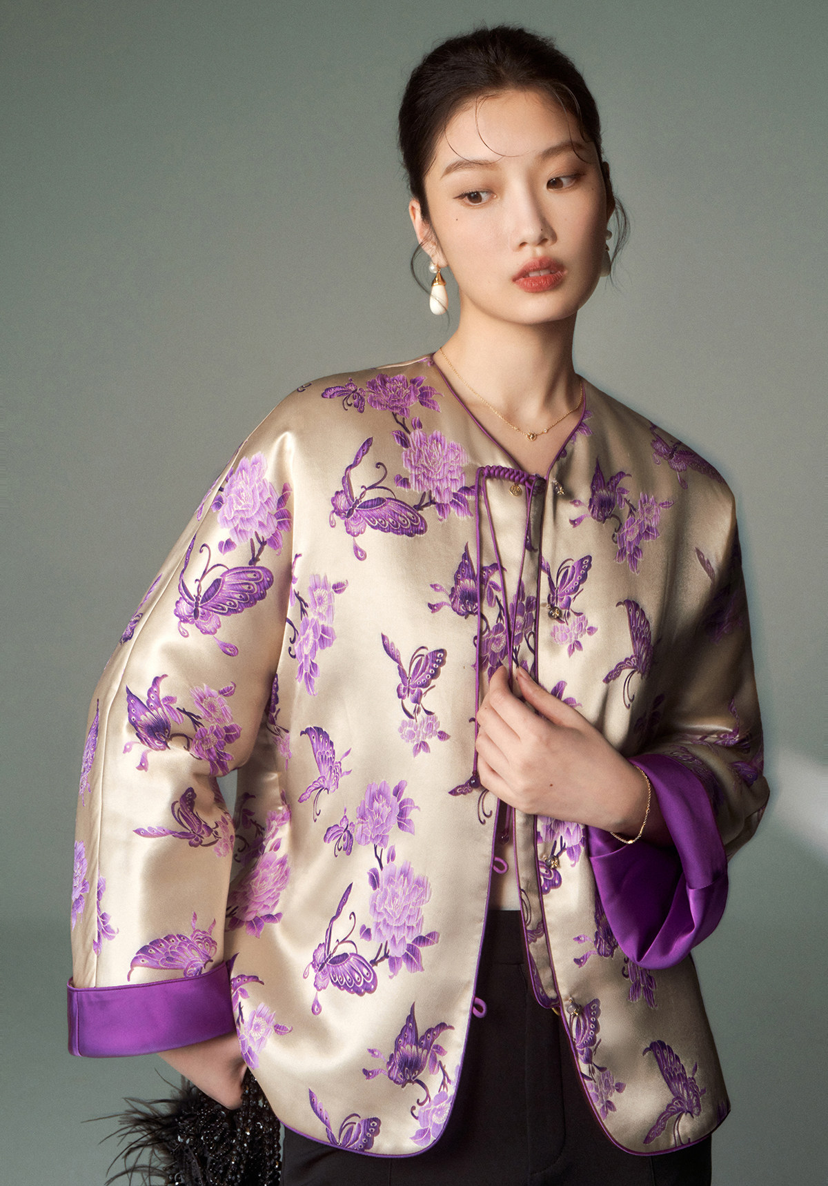 Cokeya/Oriental Beauty~6A Grade Silk Guanle Crepe Tracing Print Two-Way New Chinese Style National Style Jacket Vest