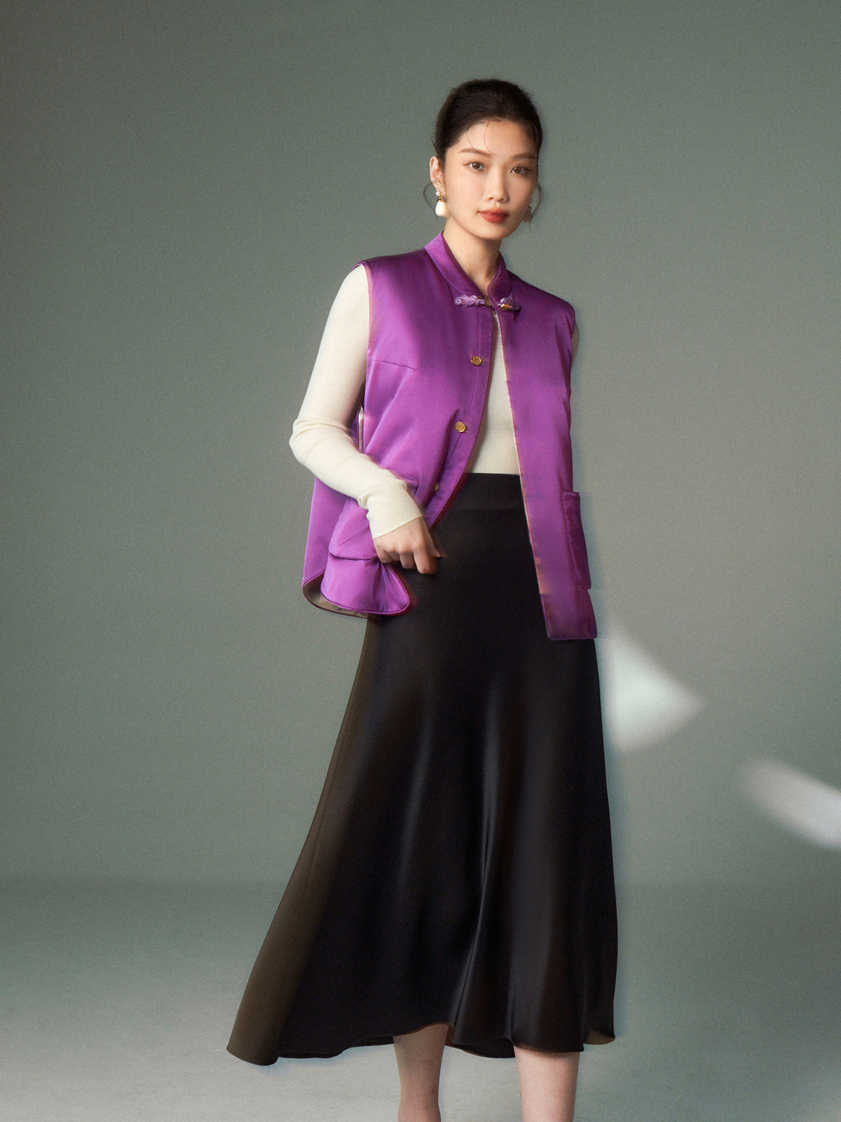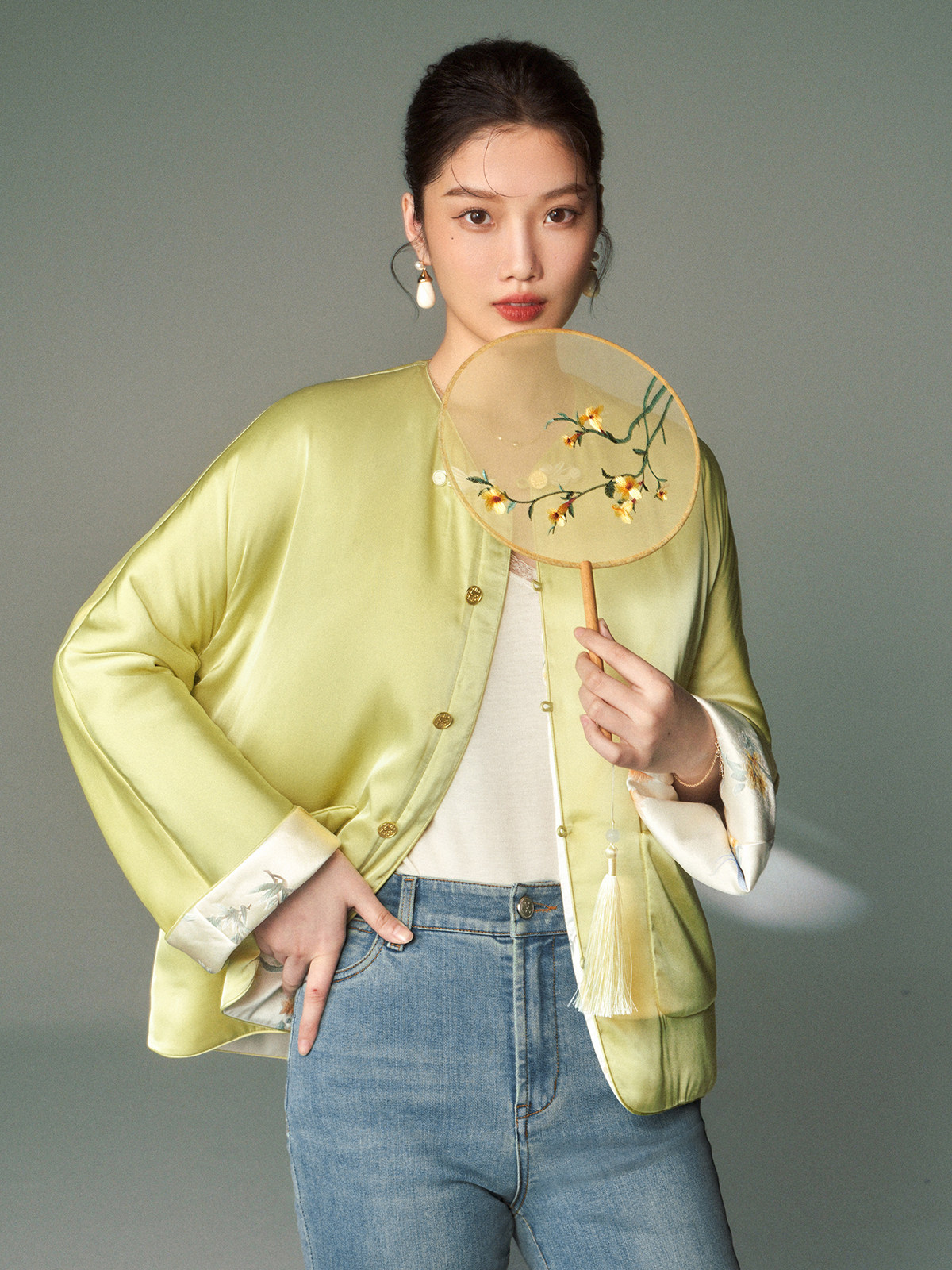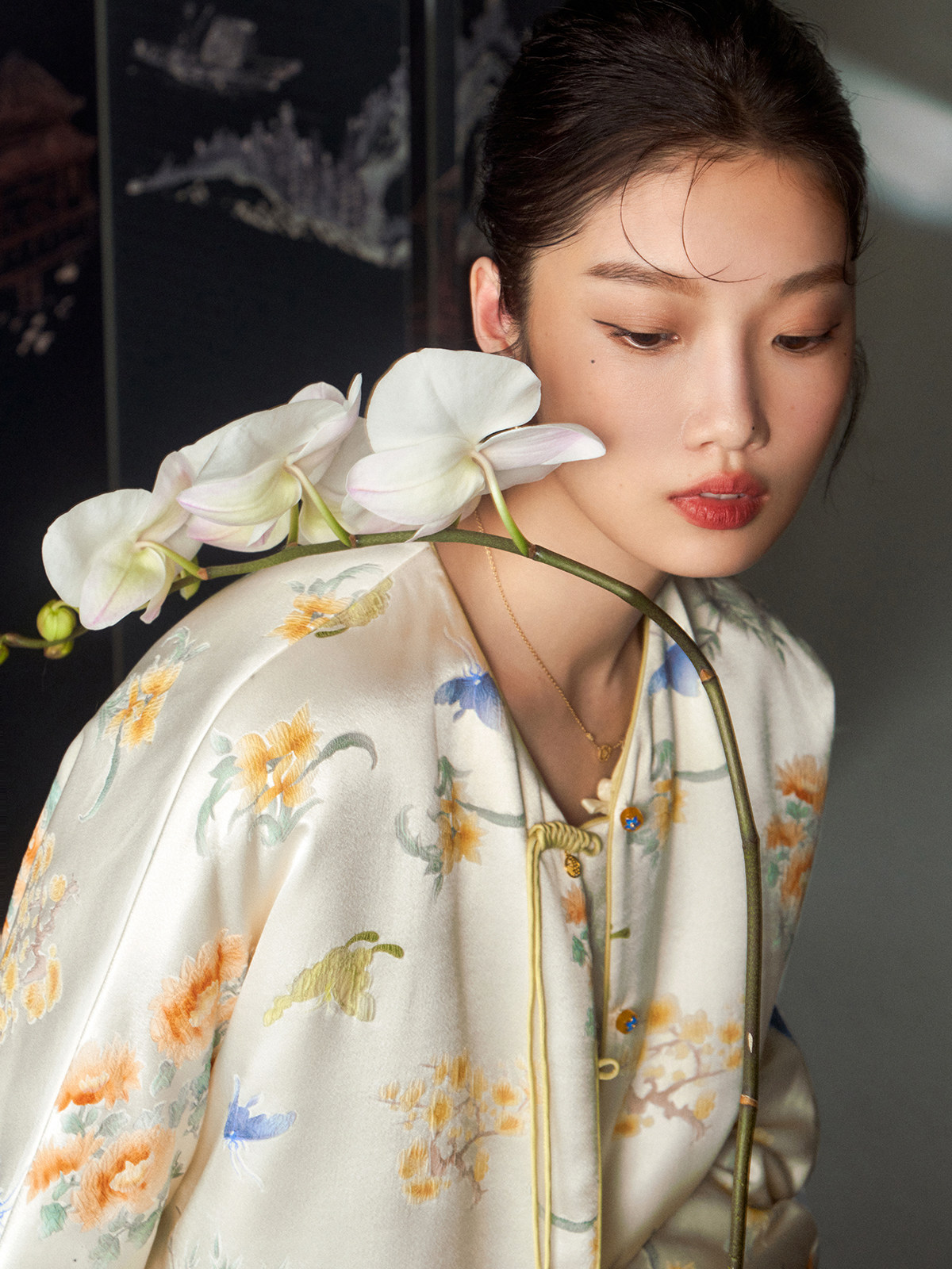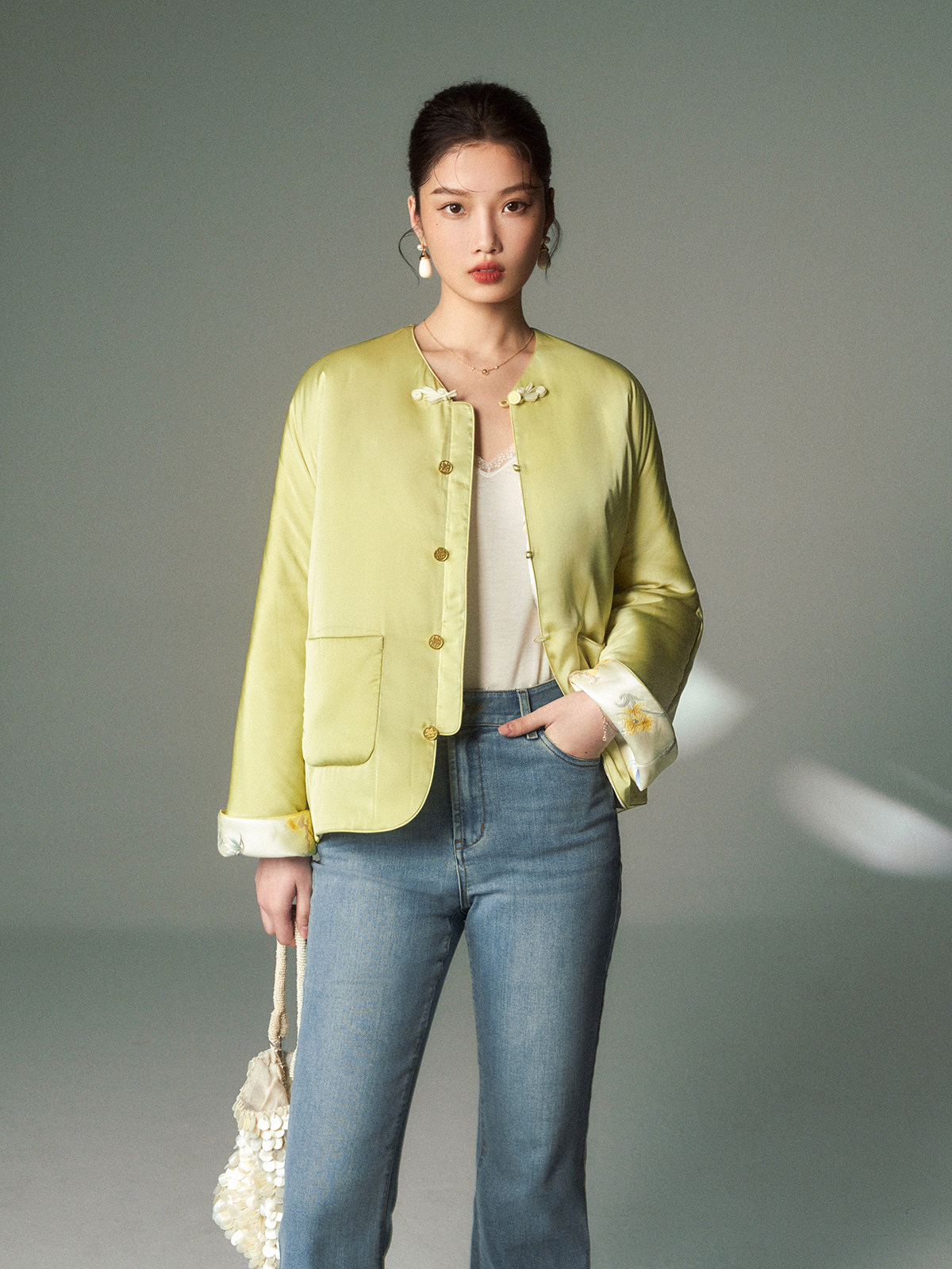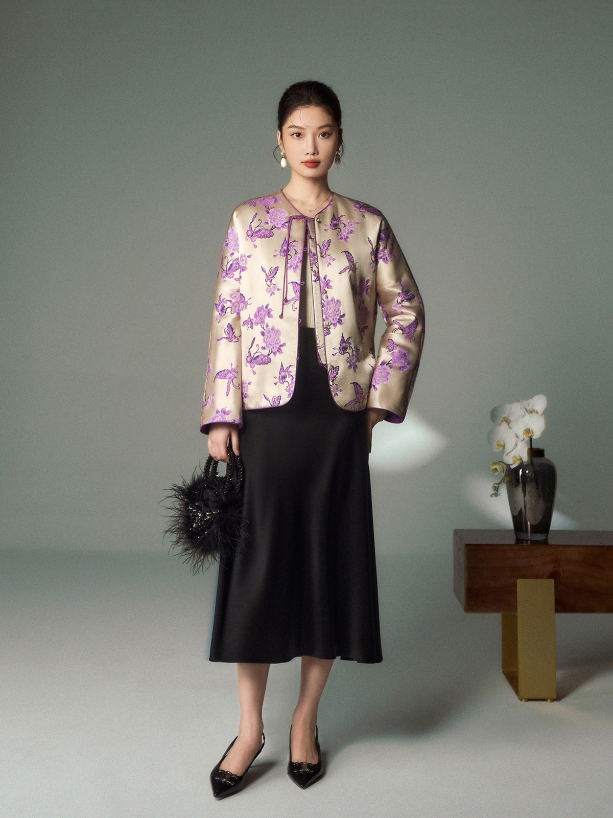 Cokeya/Oriental Beauty~6A Grade Silk Guanle Crepe Tracing Print Two-Way New Chinese Style National Style Jacket Vest