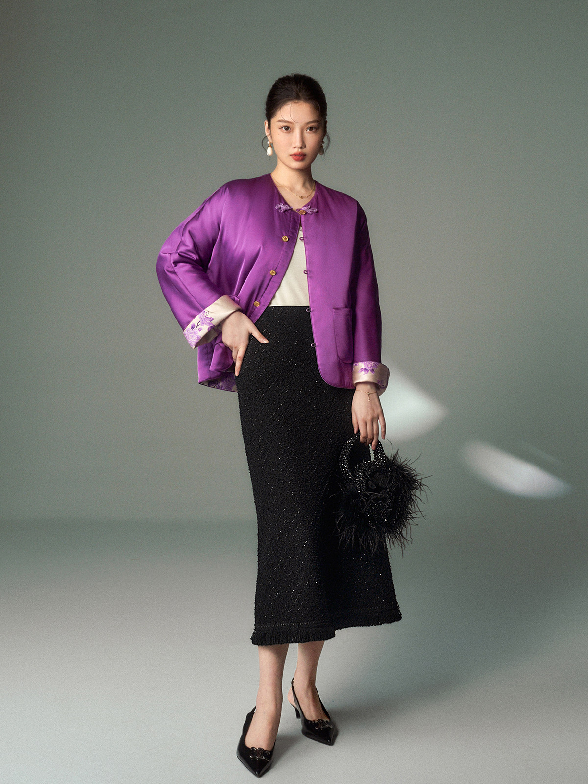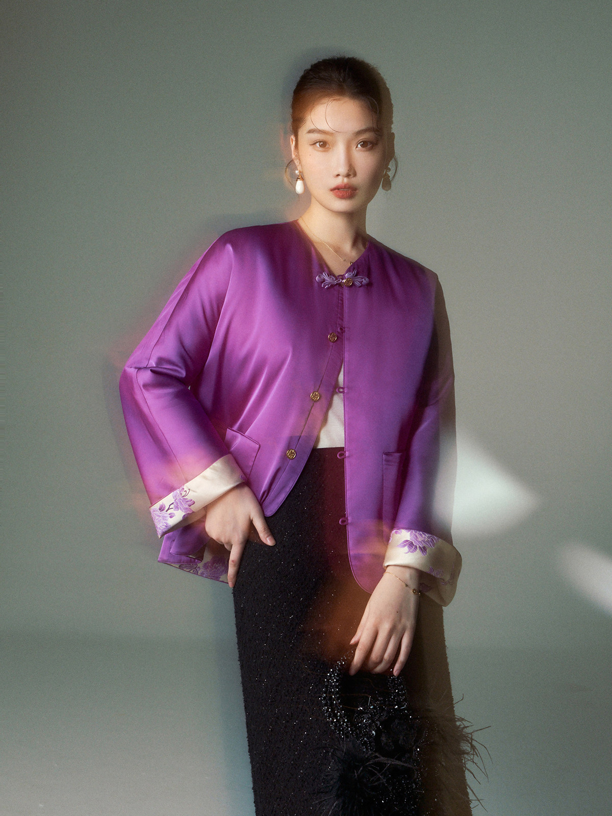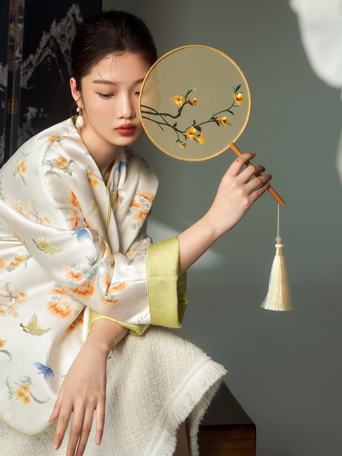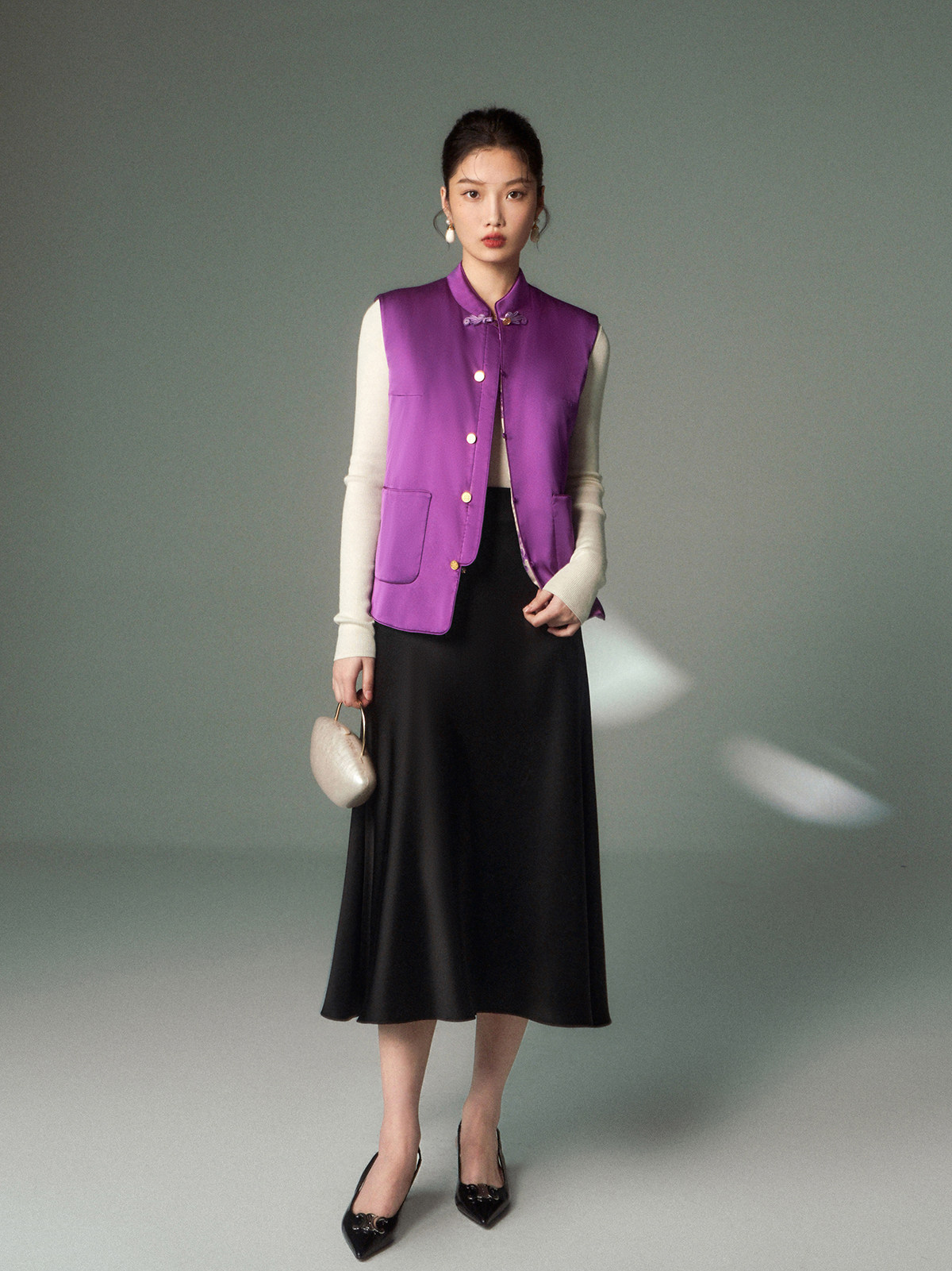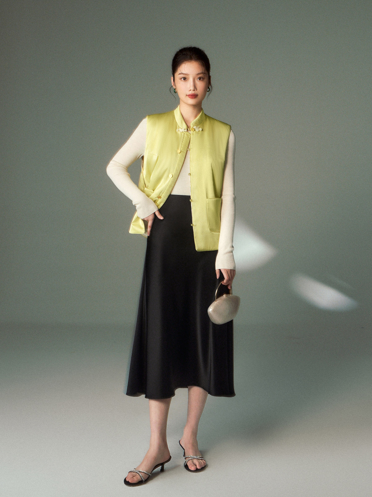 Cokeya/Oriental Beauty~6A Grade Silk Guanle Crepe Tracing Print Two-Way New Chinese Style National Style Jacket Vest