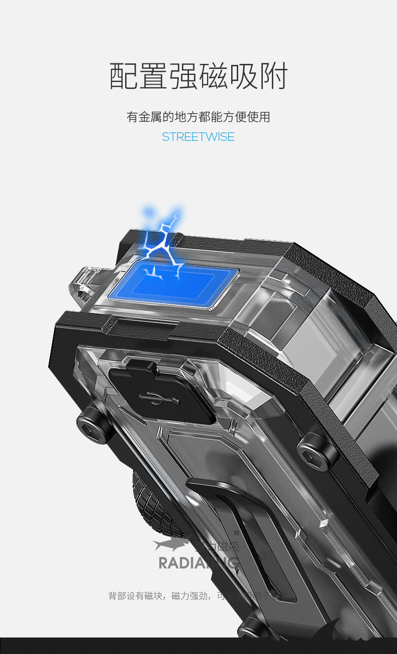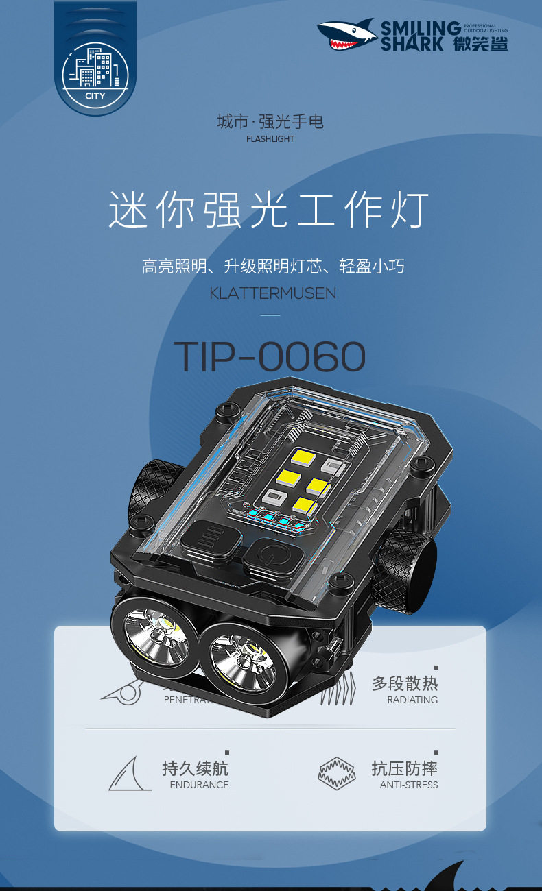 Smiling Shark Super Bright Auto Repair Work Light Multifunctional Rotating Gyro Strong Light Flashlight with Strong Magnetic Warning Light