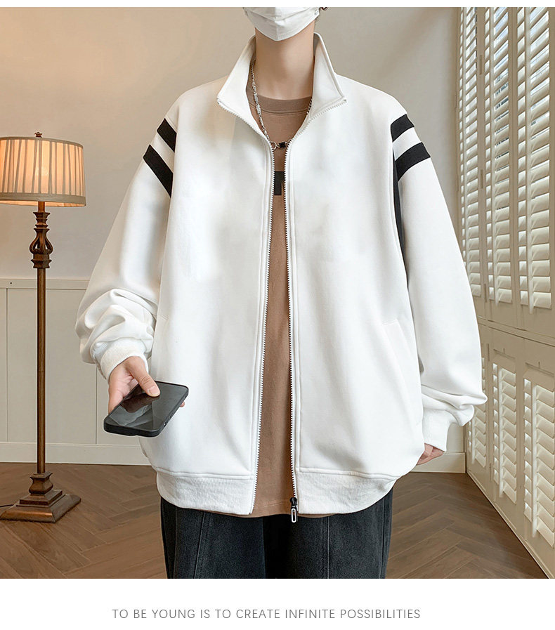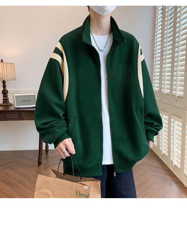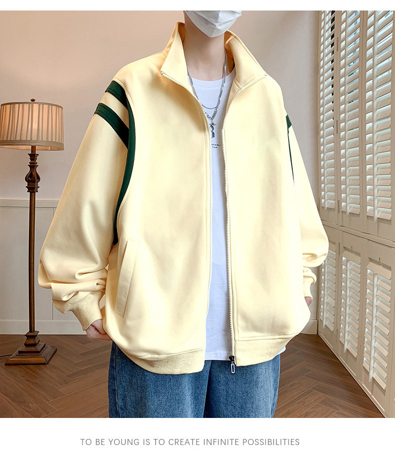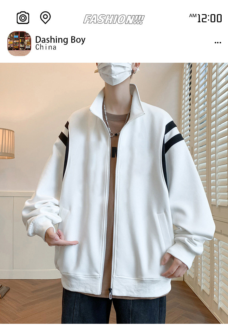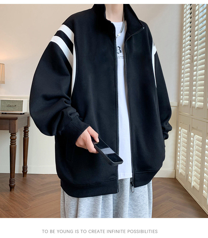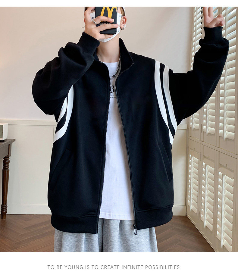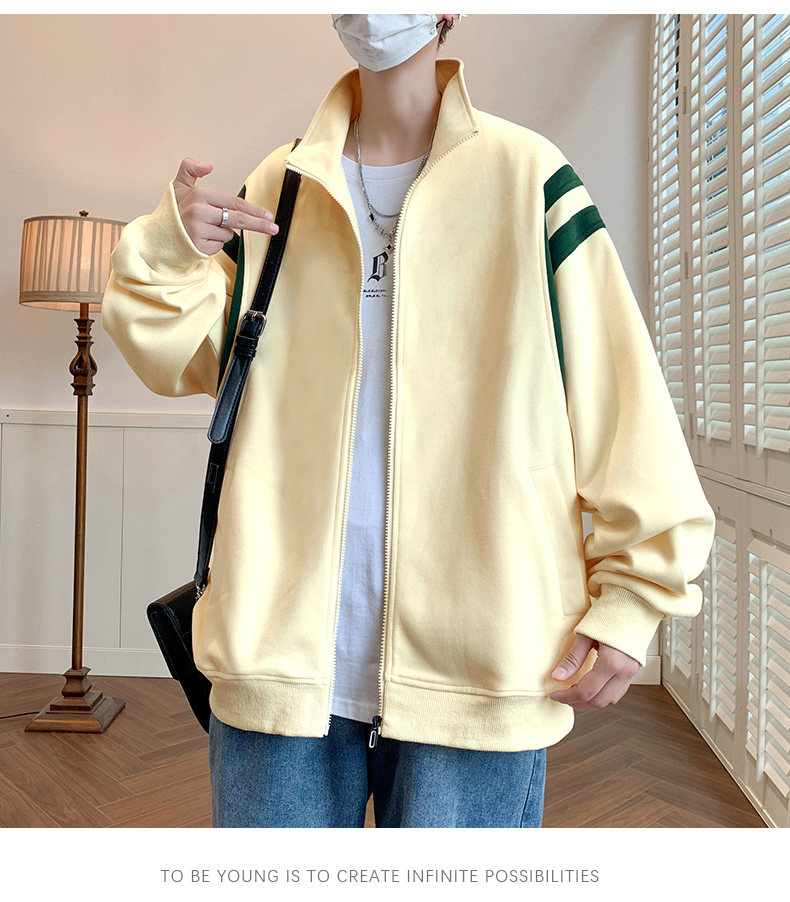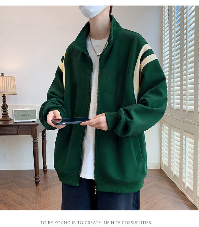 Jacket men's cardigan sweatshirt men's spring and autumn students' velvet thickened trendy brand loose spring clothing youth tops