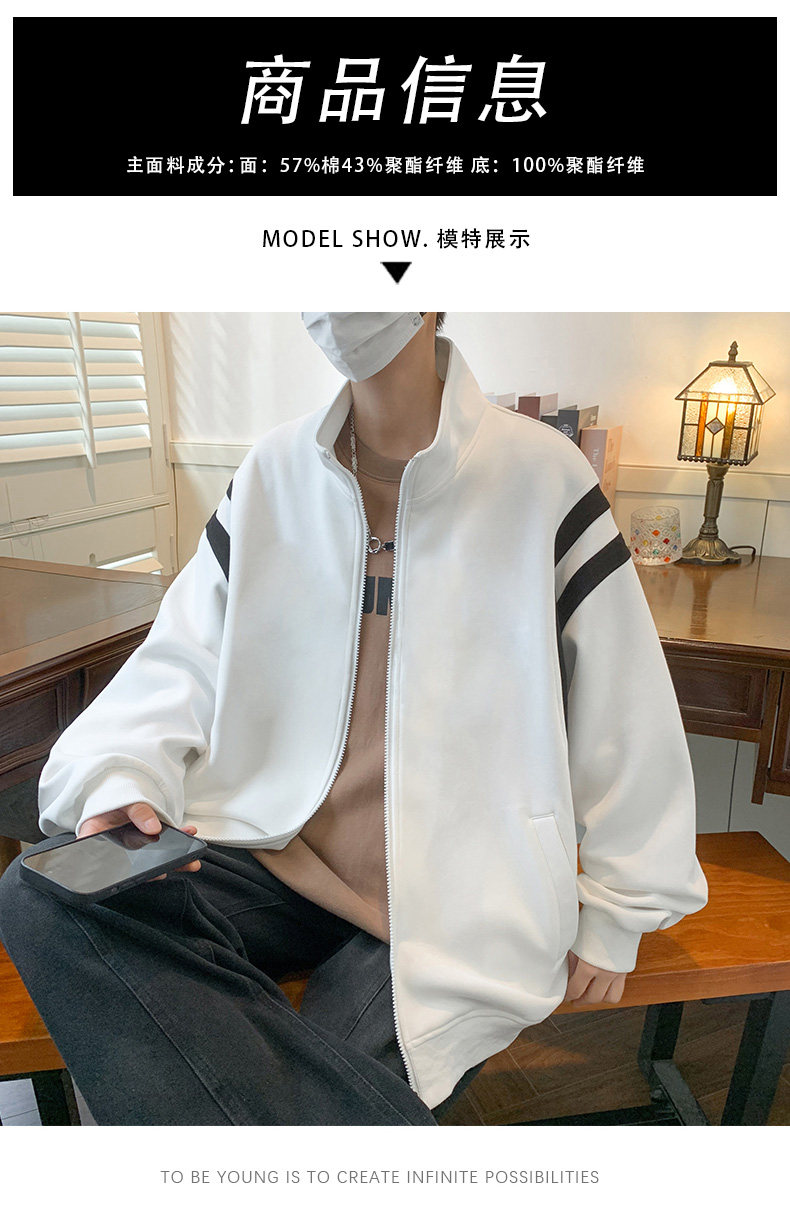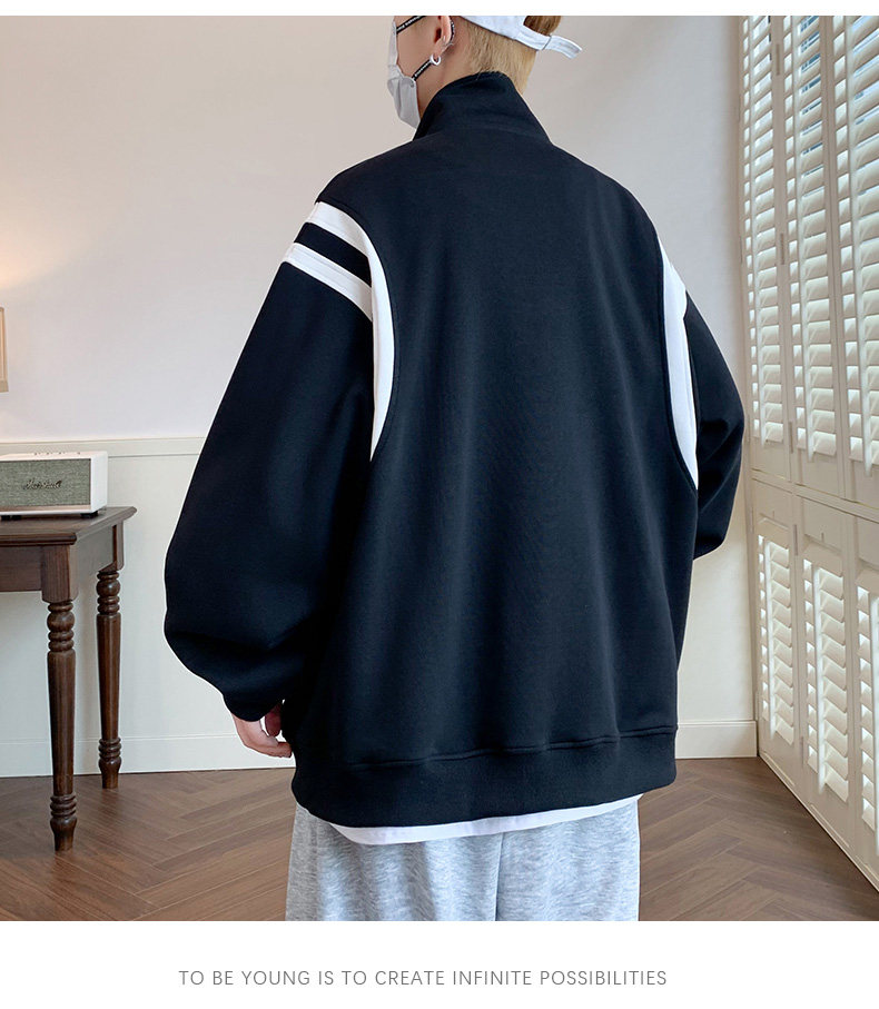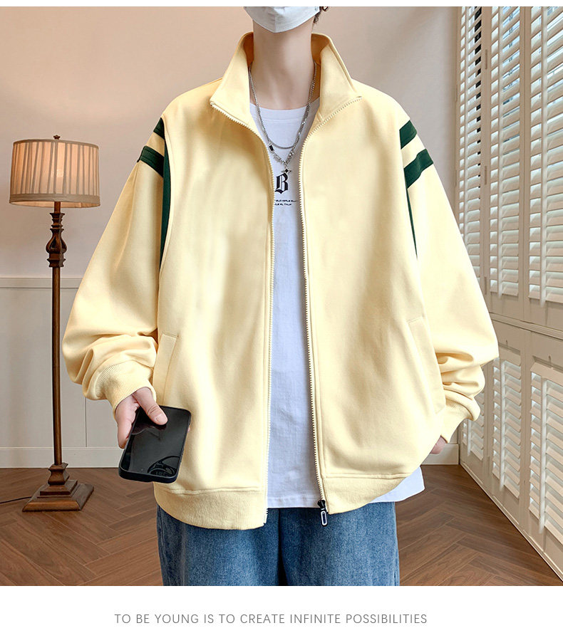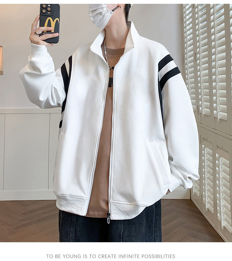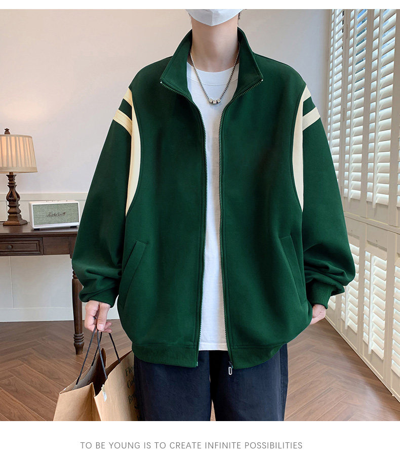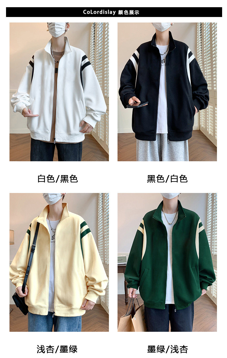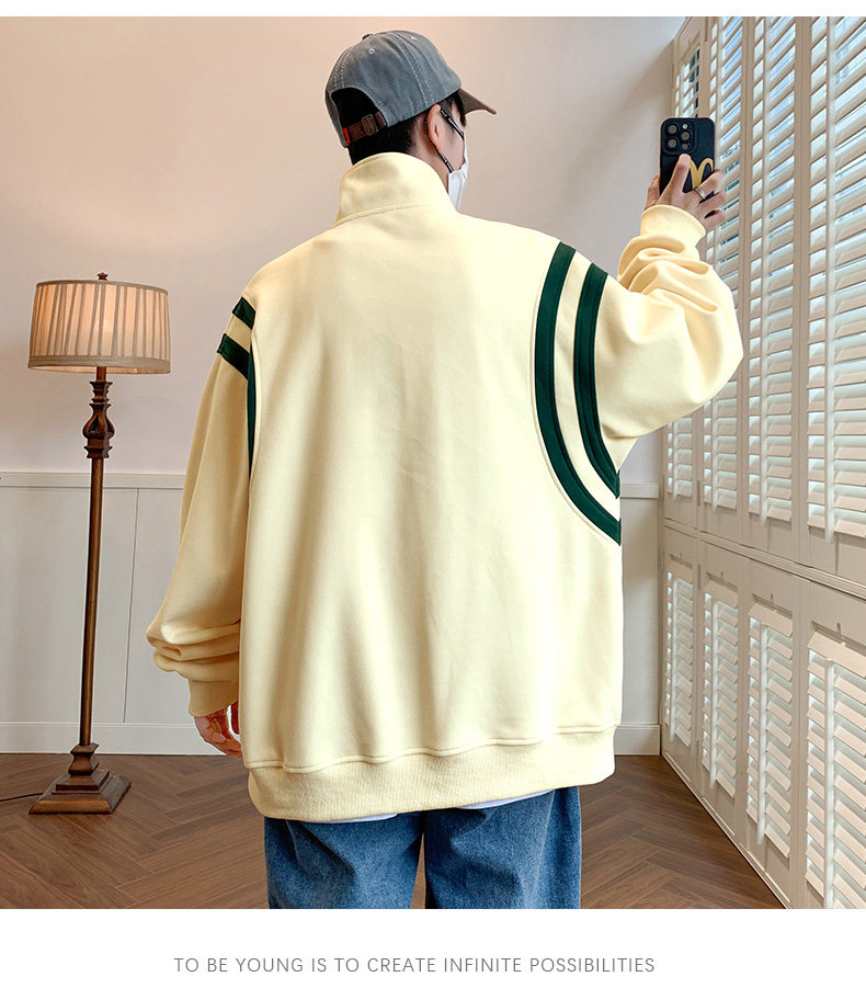 Jacket men's cardigan sweatshirt men's spring and autumn students' velvet thickened trendy brand loose spring clothing youth tops