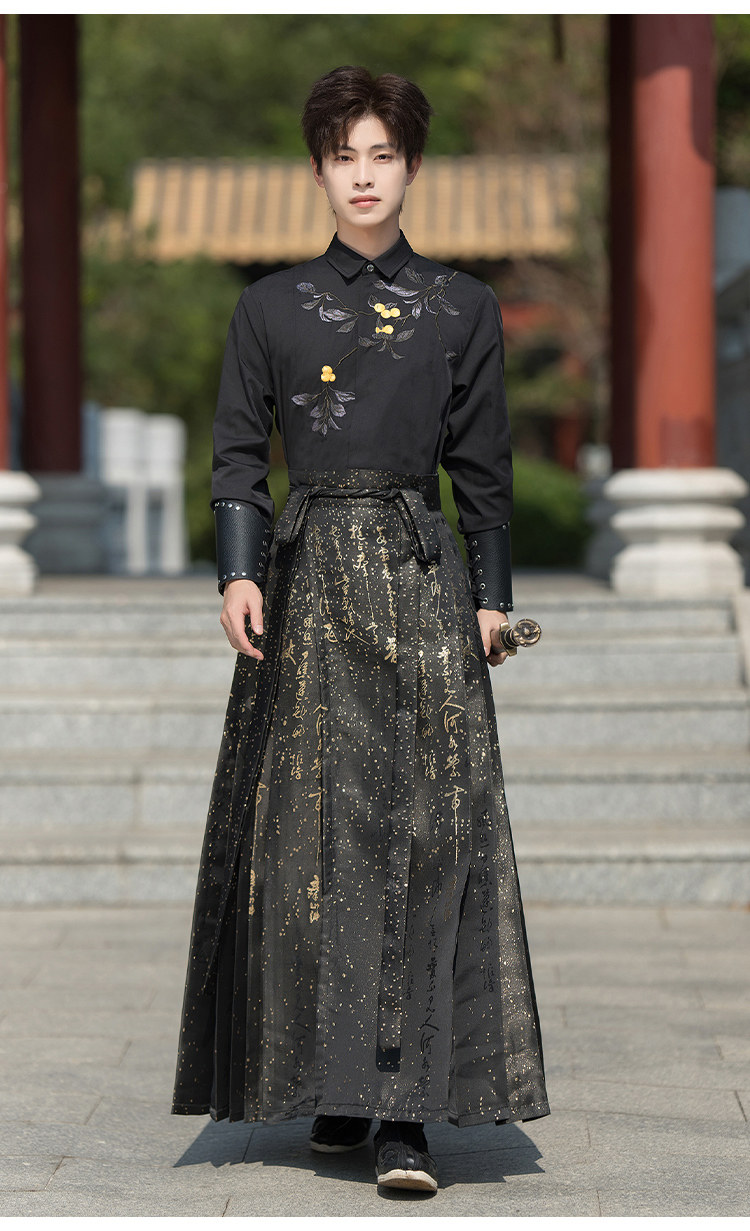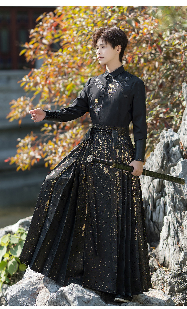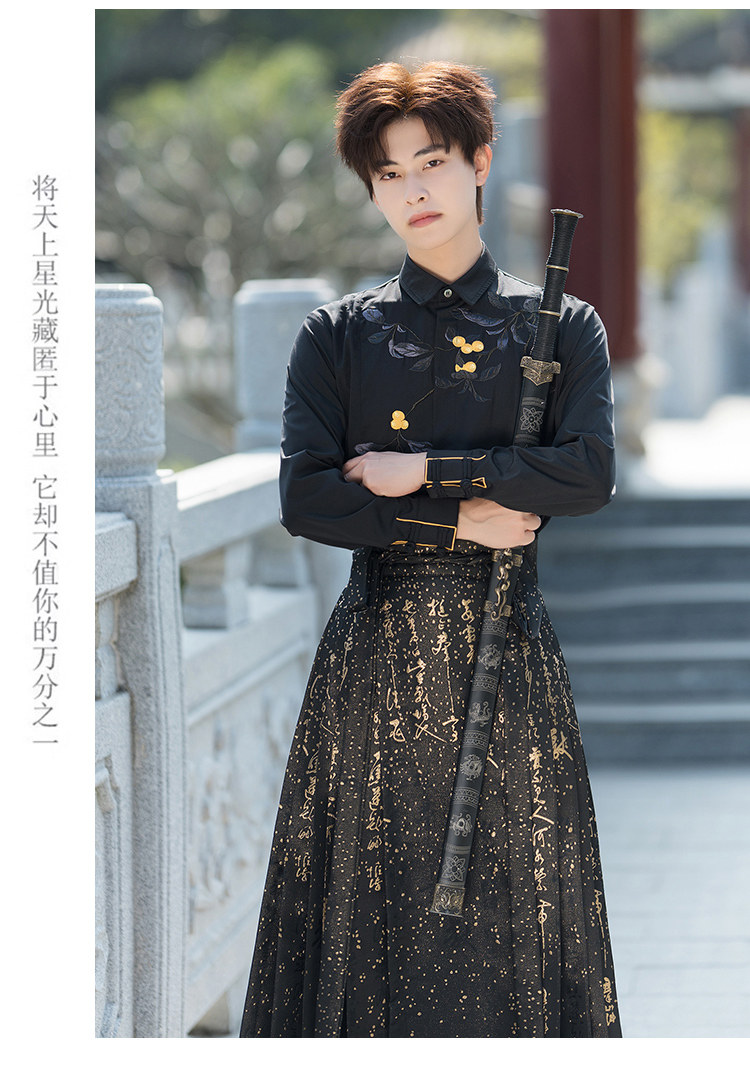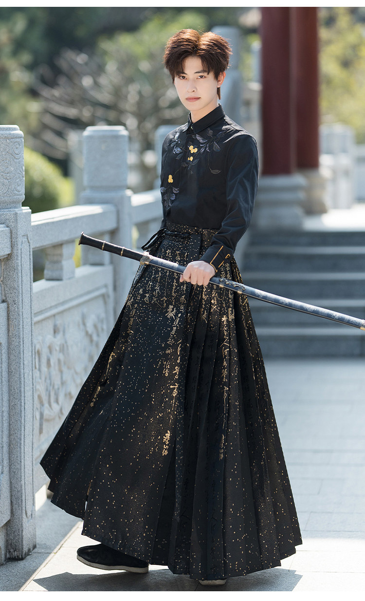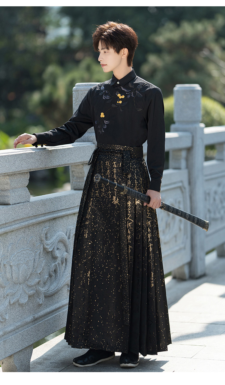 Original Hanfu Mamian Skirt Men's Style Gold Embroidery New Chinese Style National Style Performance Costume Set Unisex Performance Costume