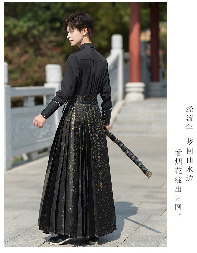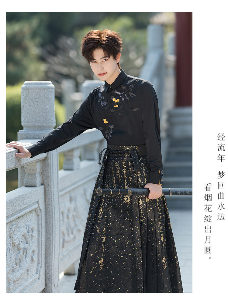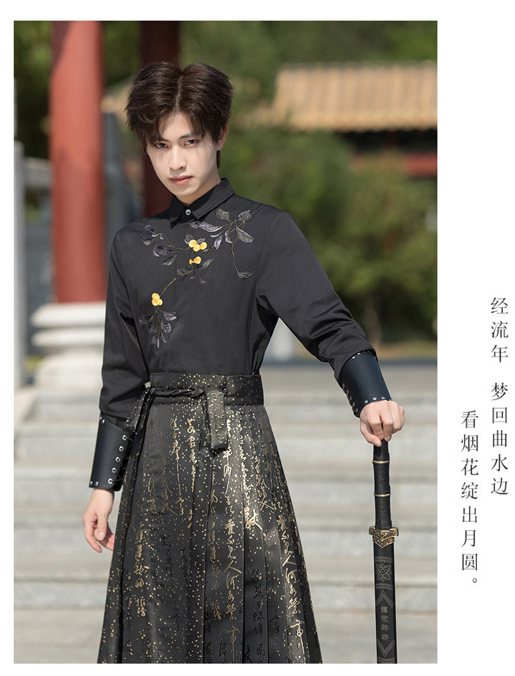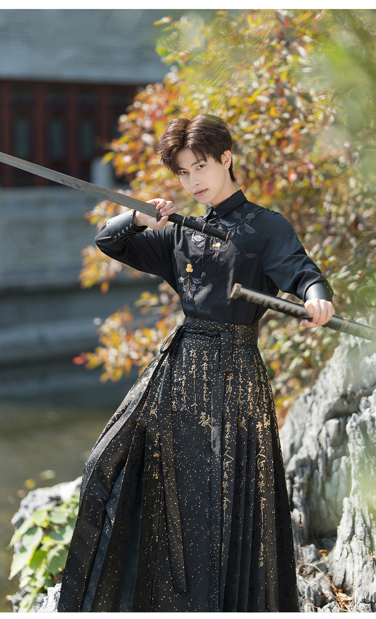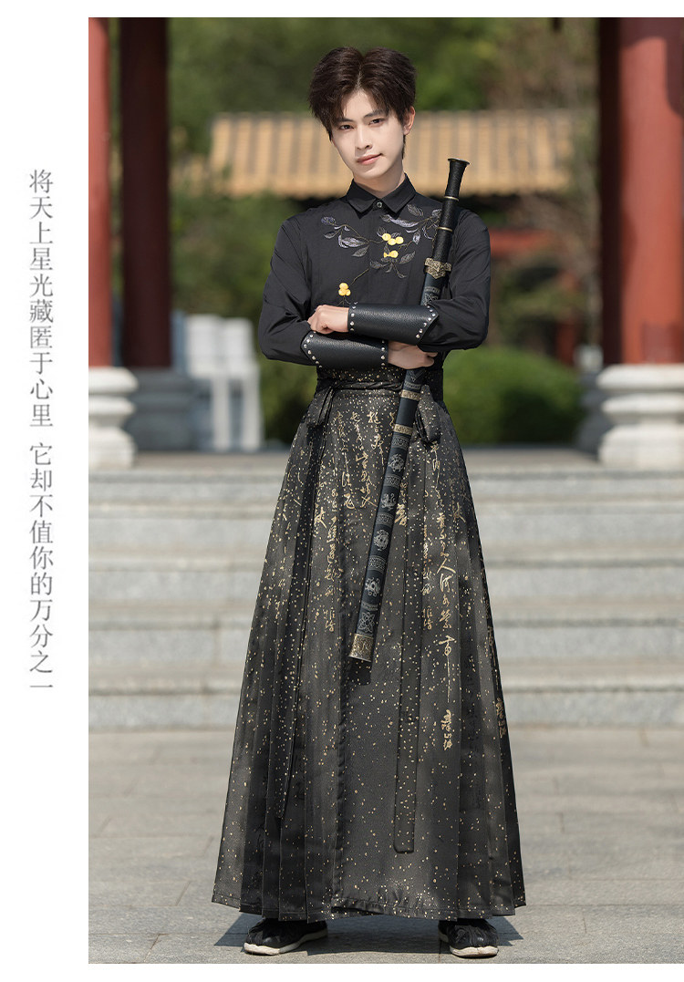 Original Hanfu Mamian Skirt Men's Style Gold Embroidery New Chinese Style National Style Performance Costume Set Unisex Performance Costume