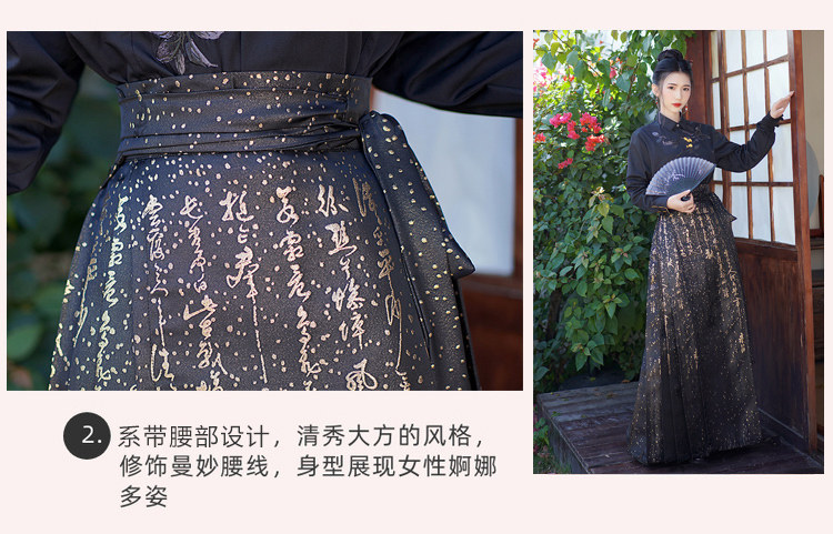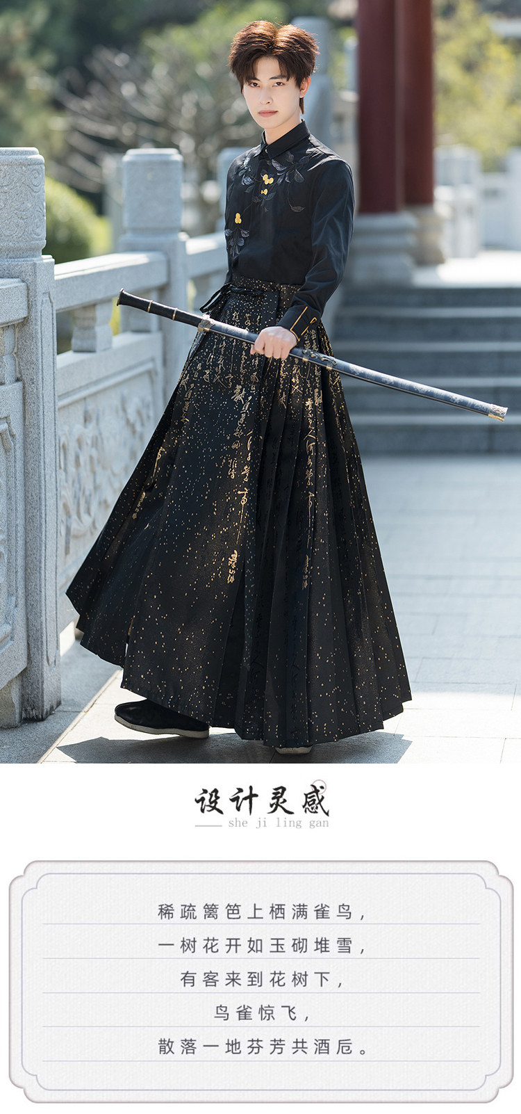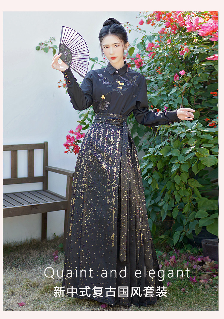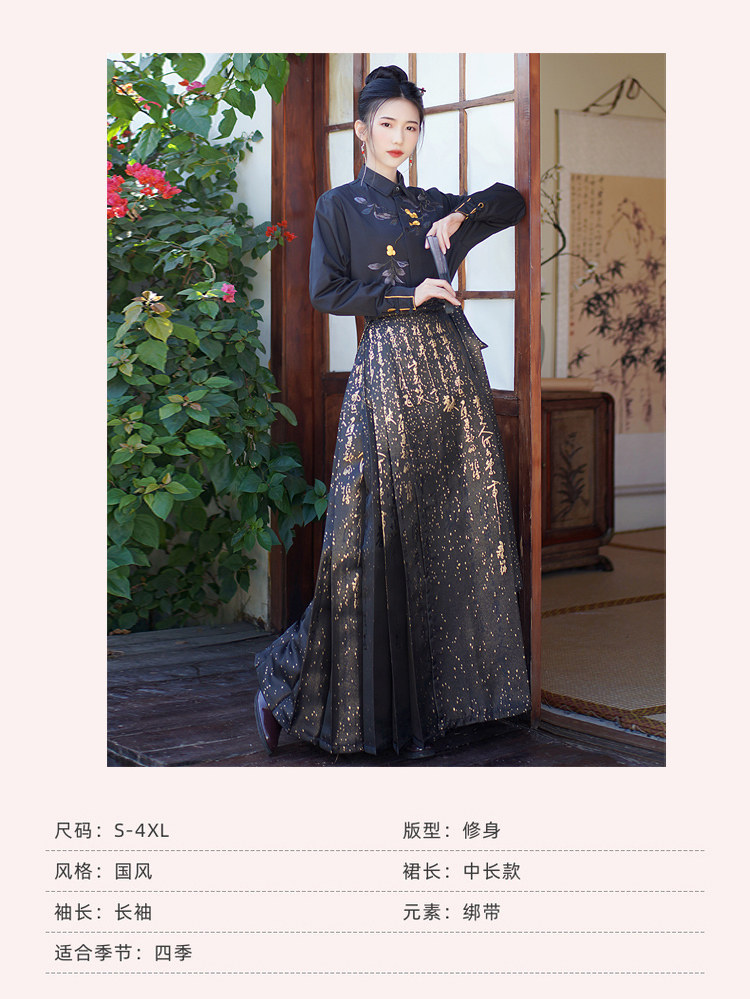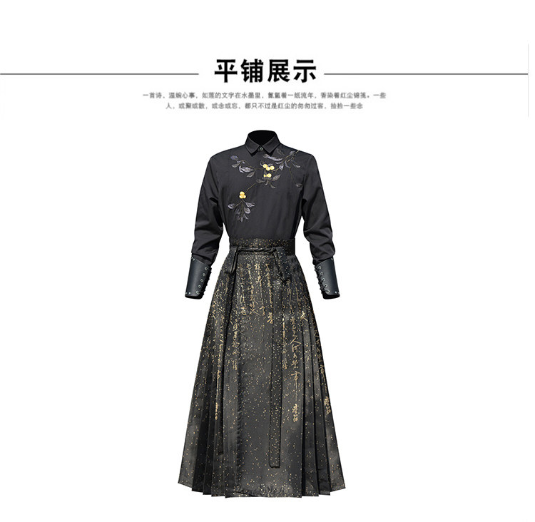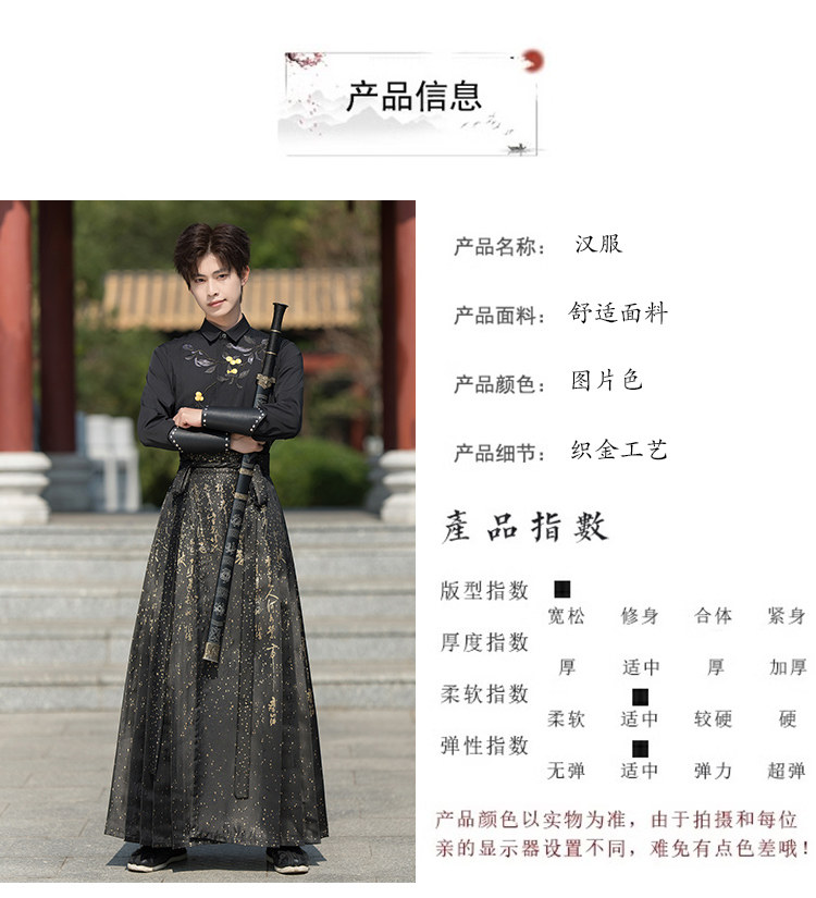 Original Hanfu Mamian Skirt Men's Style Gold Embroidery New Chinese Style National Style Performance Costume Set Unisex Performance Costume