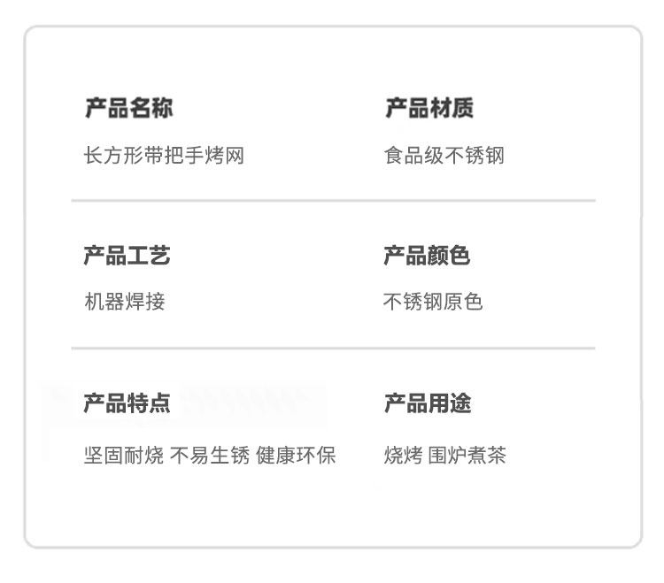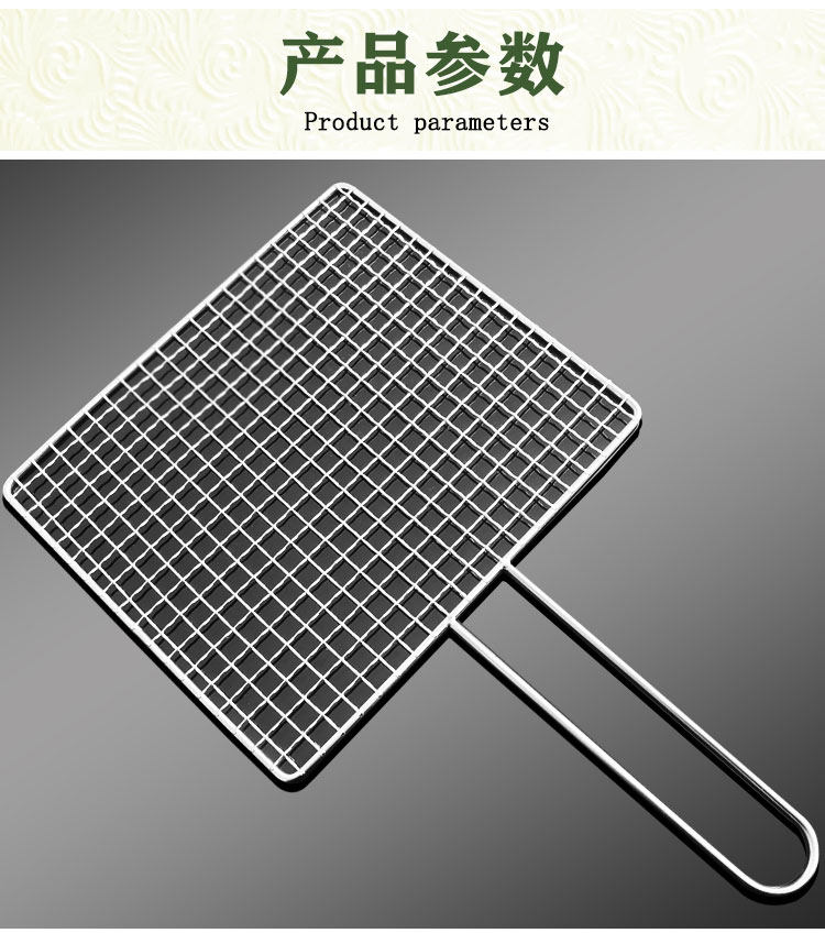 Stainless steel single-layer barbecue mesh with handle square mesh rectangular barbecue mesh outdoor home barbecue bacon pat