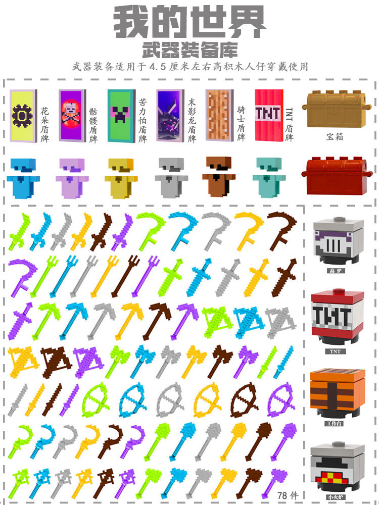 Sort by color Deluxe Minecraft Minifigure Animals 108+5 Base A Equipment+Bucket,45 Minecraft Minifigures and Animals + 2 Base A Equipment + Barrel,Minecraft minifigures 44 animals + 2 base plates A equipment + barrel,90 Minecraft Minifigures and Animals + 4 Base A Equipment + Bucket,Fancun large collection of 87 minifigures and animals + 4 base plates, weapons + barrels,Minecraft minifigures 80 animals + 4 base plates A equipment + barrels,ZM-9 does not duplicate 144 models (as shown in the picture) and comes with more than 200 weapons,Minecraft minifigure animals 85 people in the fog + 4 base equipment + barrel,F1-99 equipment collection (pictured) does not repeat,Minecraft large equipment library + equipment C (pictured),70 Minecraft Minifigures and Animals + 3 Base A Equipment + Barrel,Classic Minecraft minifigure animals 60 pieces + 3 base plate A equipment + barrel,60 Minecraft Minifigures and Animals + 3 Base A Equipment + Barrel,59 Minecraft minifigures and animals, including sound guards + 3 base plates, A equipment + barrels,50 Minecraft Minifigures and Animals + 2 Base A Equipment + Barrel,Minecraft 24 minifigures + 78 weapons and 2 treasure chests,L03 Minecraft Miniature Animals 16 pcs,Minecraft classic 18 characters + 78 weapons,Deluxe village package includes 80 minifigures and animals + storage bucket and 90 weapons,Minecraft Classic 16 models include wither iron golem,XL Man in the Mist suit (pictured),XL Sound Guard Set (pictured),(Six types of waffles + six types of HIM) Equipment package for 12 people,Minecraft weapons and equipment library (pictured),Minecraft Crystal 16 minifigures,39 minecraft minifigures and animals including sound guard + 2 base plate A equipment + barrel,46 Minecraft Minifigures and Animals + 2 Base A Equipment + Barrel,Minecraft's large village includes HIM weapons + storage buckets,Minecraft Minifigure Animals 32 including Ravager + Base A Equipment + Barrel,Minecraft minifigure animals 32 pieces including red stone monster + base plate A equipment + barrel,Super package includes 112 minifigures and animals + 120 free weapons in storage bucket,The fully upgraded version of the village includes treasure chests, equipment, 29 minifigures and animals,Double-story forest hut including treasure chest, 39 ender dragon minifigures and animals,Minecraft Forest Bookhouse + Storage Bucket,Mechanism cave lifting version + storage bucket,Minecraft Deluxe Weapon Pack + Shield Armor Chest + Barrel,Minecraft minifigures and animals 24 including scenes + storage bucket,City of Shadows + 12 character weapons,Undersea city + 12 character weapons,Forest cave + 12 character weapons,Rock mine + 12 character weapons,Ice and snow cave + 12 character weapons,Follow the sound to guard the Demon King's City (pictured)