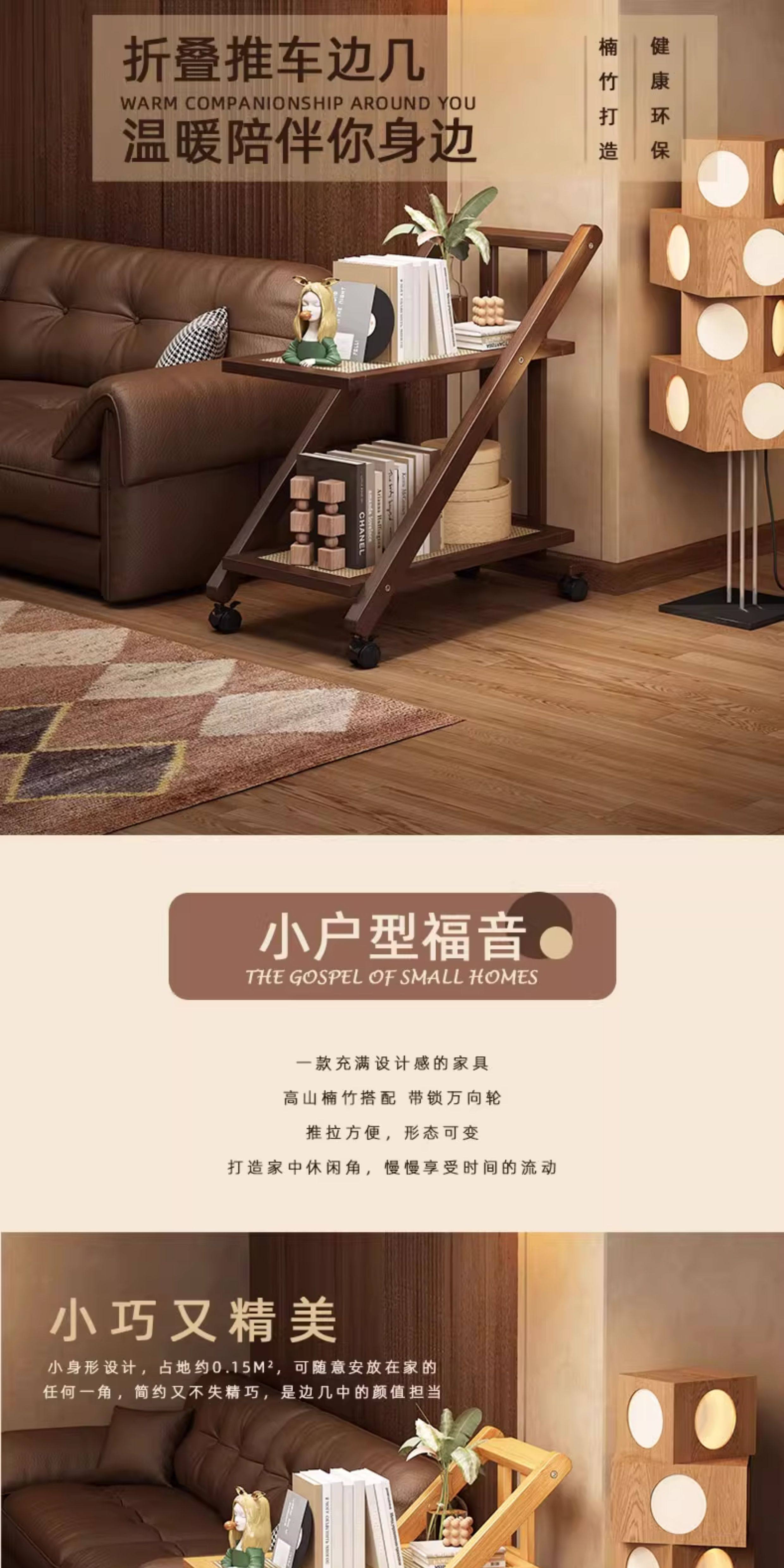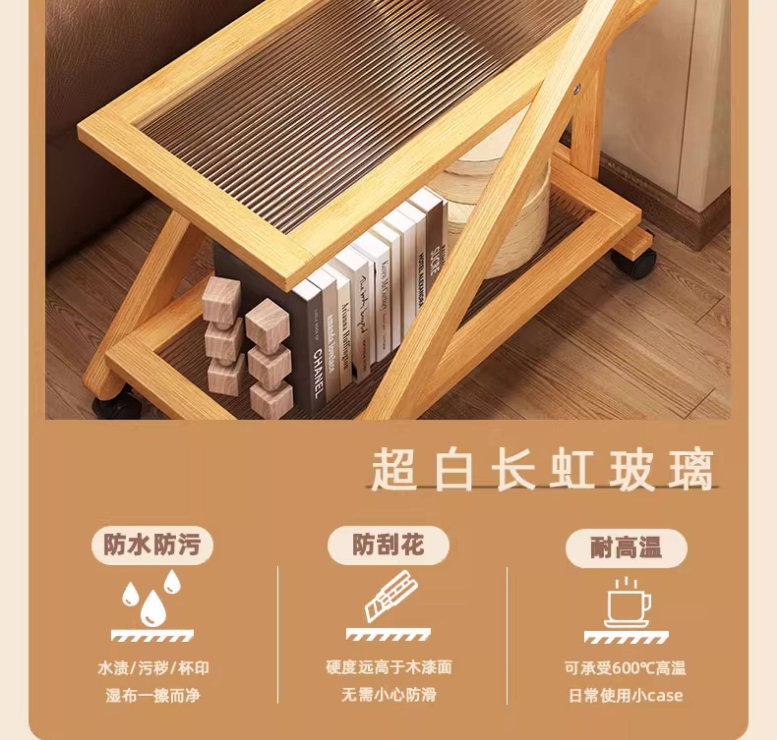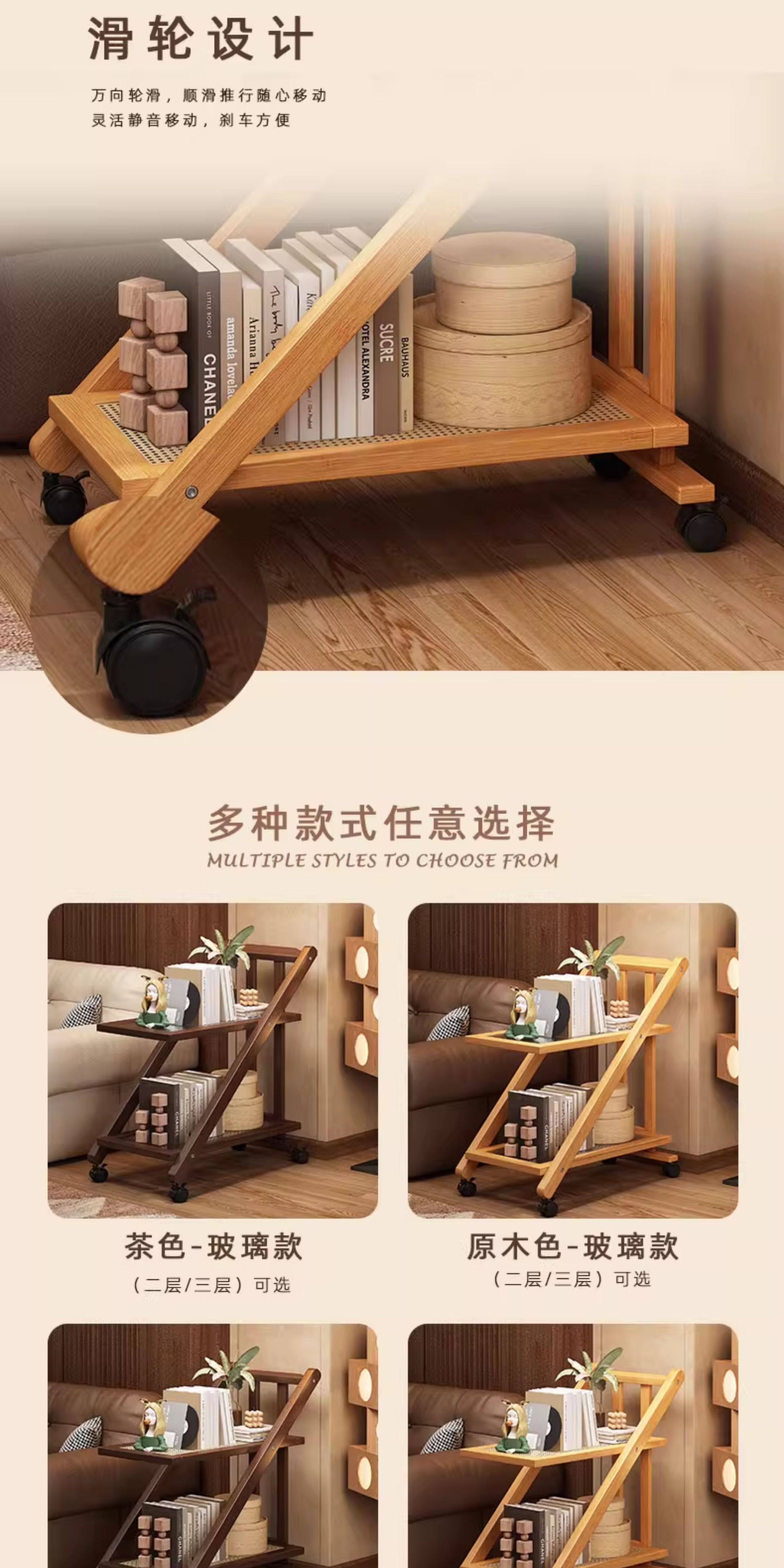 Movable Trolley Bedside Table for Home Use, Multi-Layer Storage Rack for Living Room, Floor-Standing Snack Bookshelf