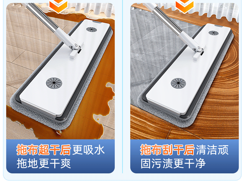 German Household Mop Lazy Mop Floor Cleaning Tool Hands-Free Self-Wringing Flat Mop One-Sweep Clean Super Labor-Saving