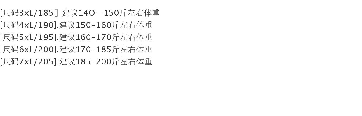 China (cm) 160-165/84-86 165-170 / 88-90 167-172 / 92-96 168-173 / 98-102 170-176 / 106-110