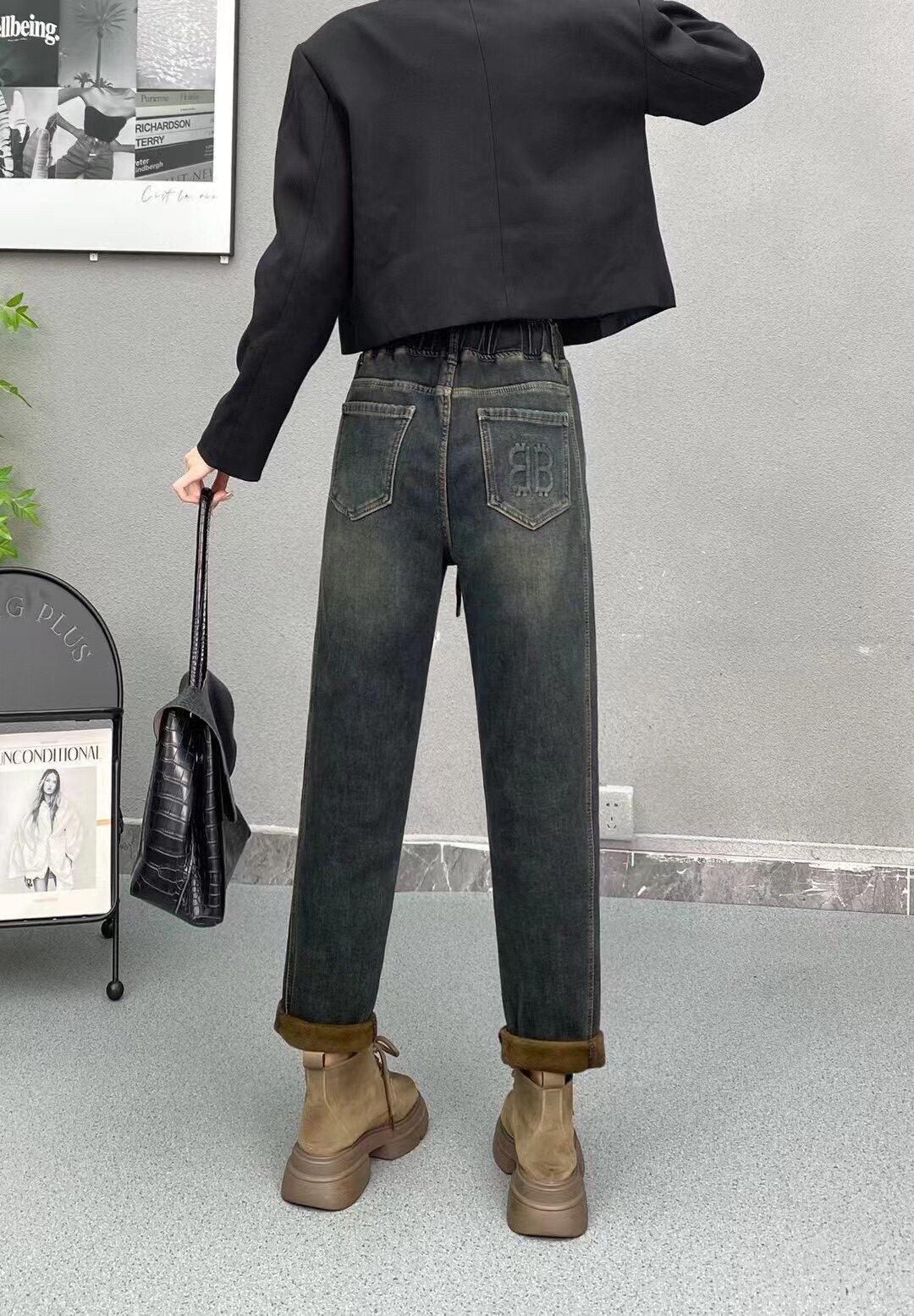 Qianheng Genuine Product 8276 Model, Plus-Size, Fashionable, Casual, Loose-Fitting, Slimming, Stretchy Jeans with Fleece Lining