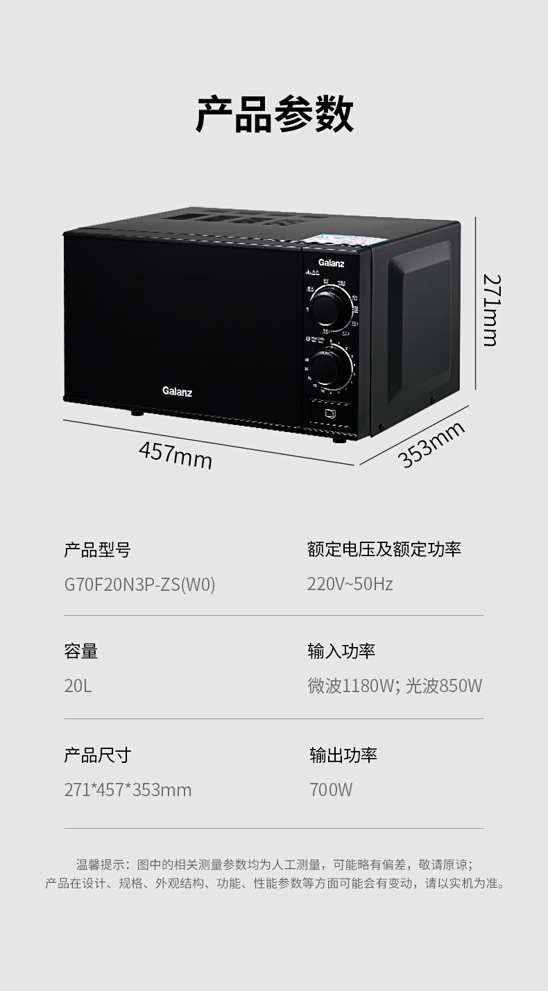 Galanz G70F20N3P-ZS (W0) mechanical microwave oven light wave oven flat household small