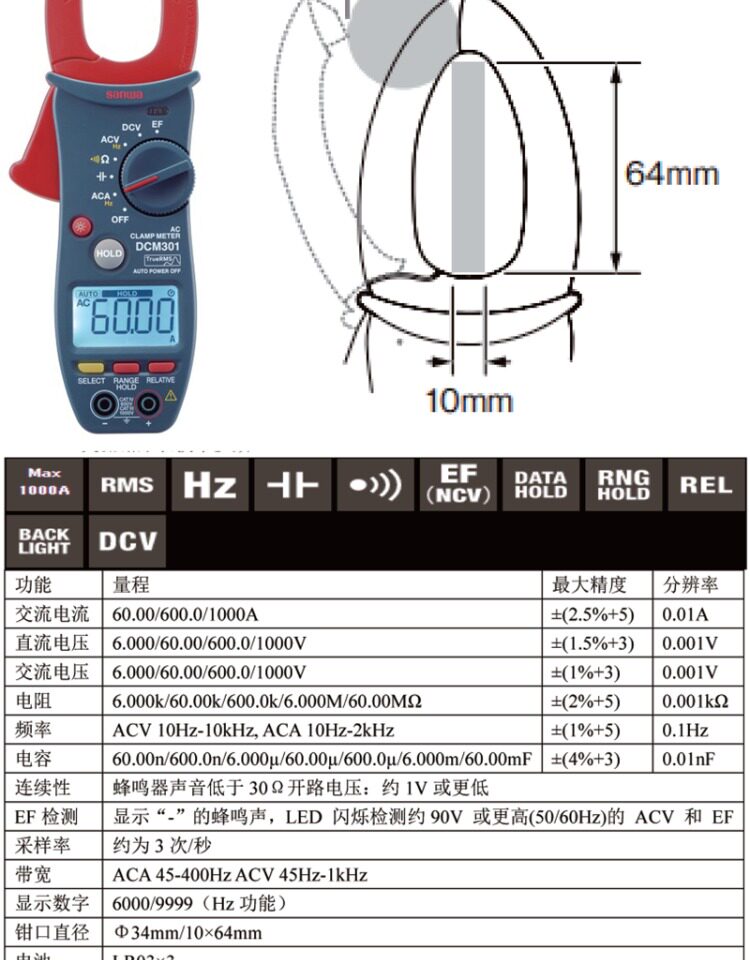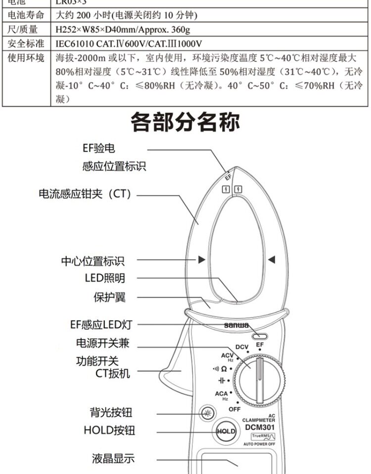 Sanwa Japan Sanwa High-Precision Ac Digital Clamp Ammeter 1000A Electrician Multimeter Dcm301