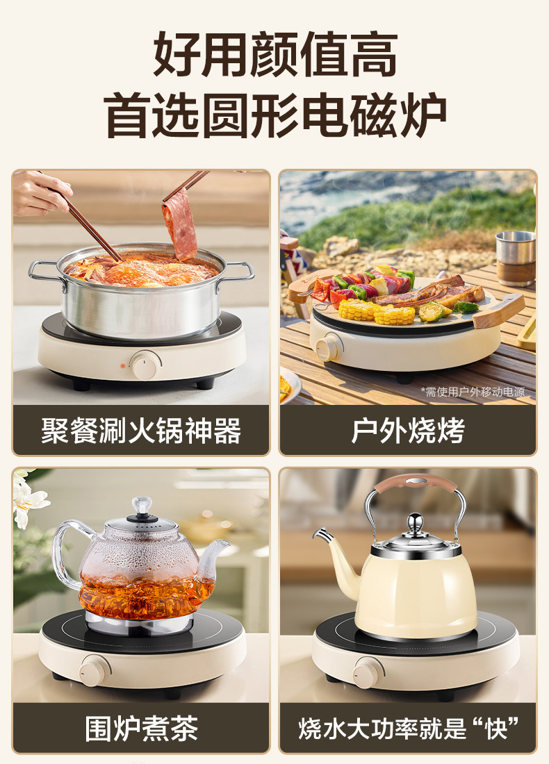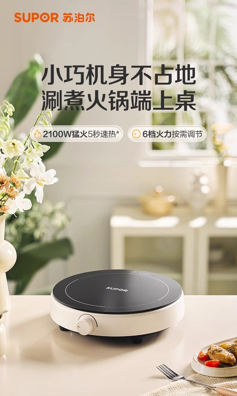 Supor Induction Cooker for Home Use, Small Mini Induction Cooker, Round Stove, High Power, Official Genuine Flagship Store, New Model