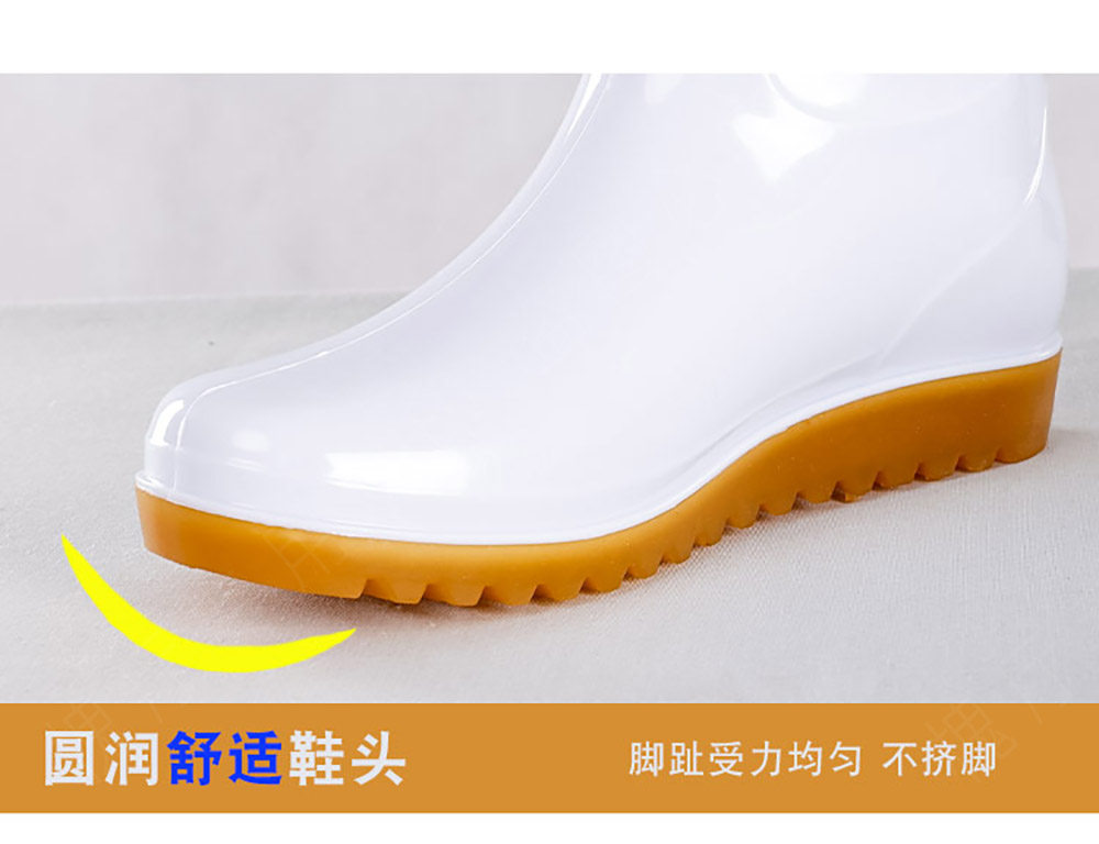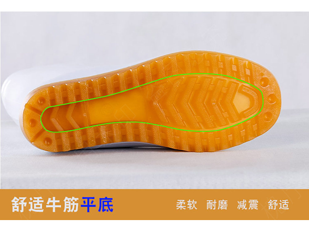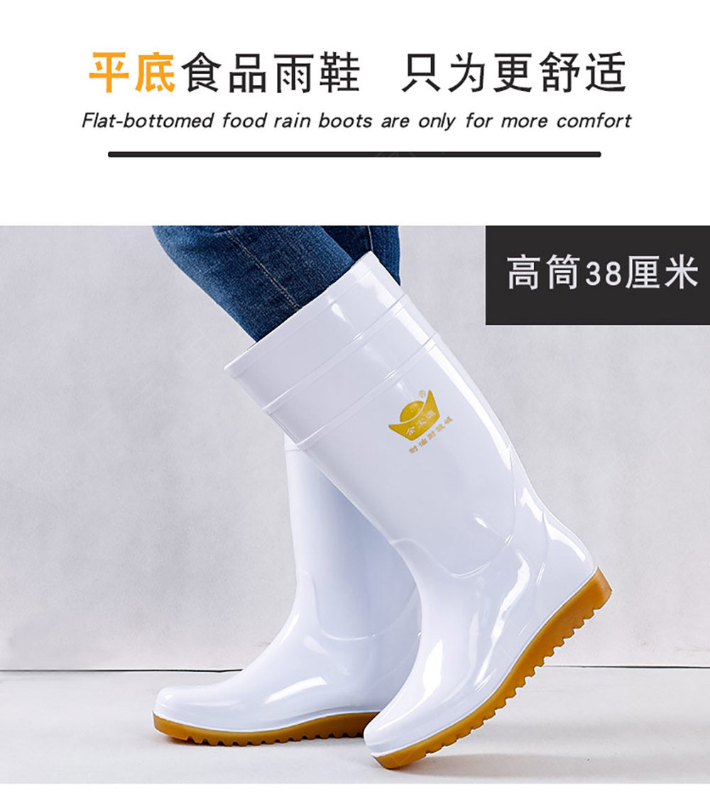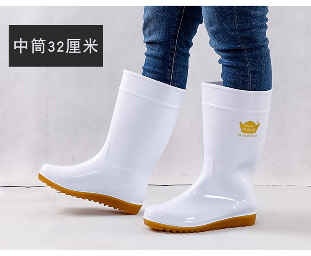 Flat-Soled Rain Boots, White Mid-High Tube, Durable Rubber, Acid and Alkali Resistant, Non-Slip, Food-Grade Water Boots, Labor Protection Rain Boots, Rubber Shoes