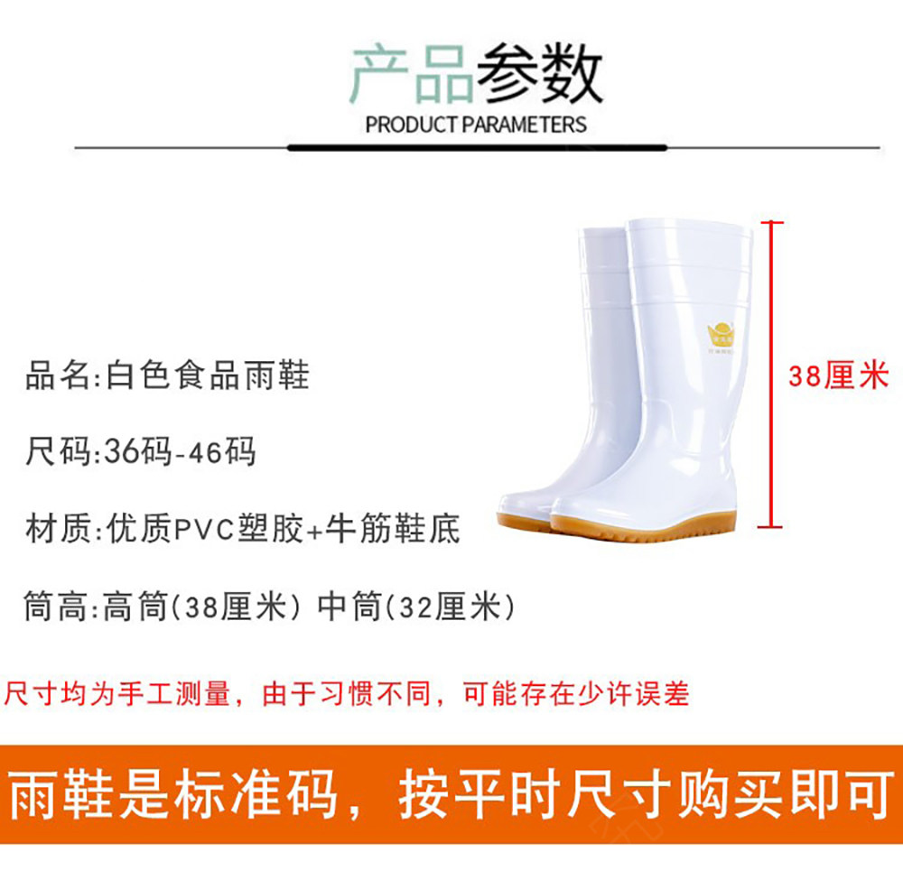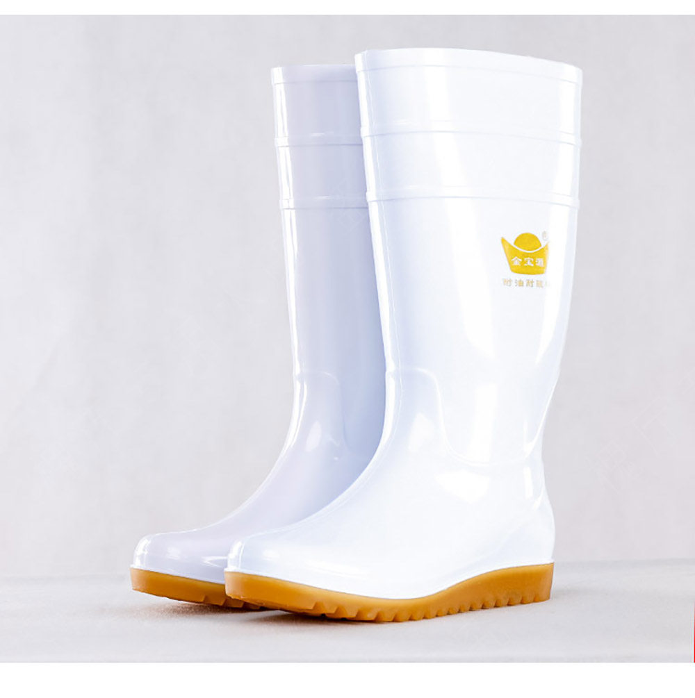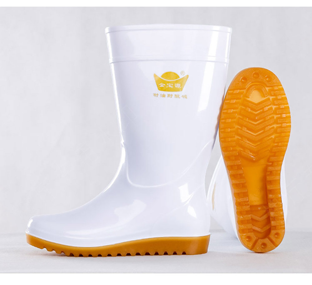 Flat-Soled Rain Boots, White Mid-High Tube, Durable Rubber, Acid and Alkali Resistant, Non-Slip, Food-Grade Water Boots, Labor Protection Rain Boots, Rubber Shoes
