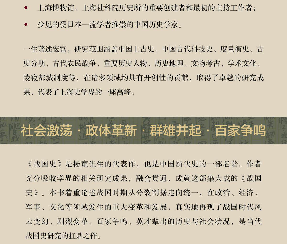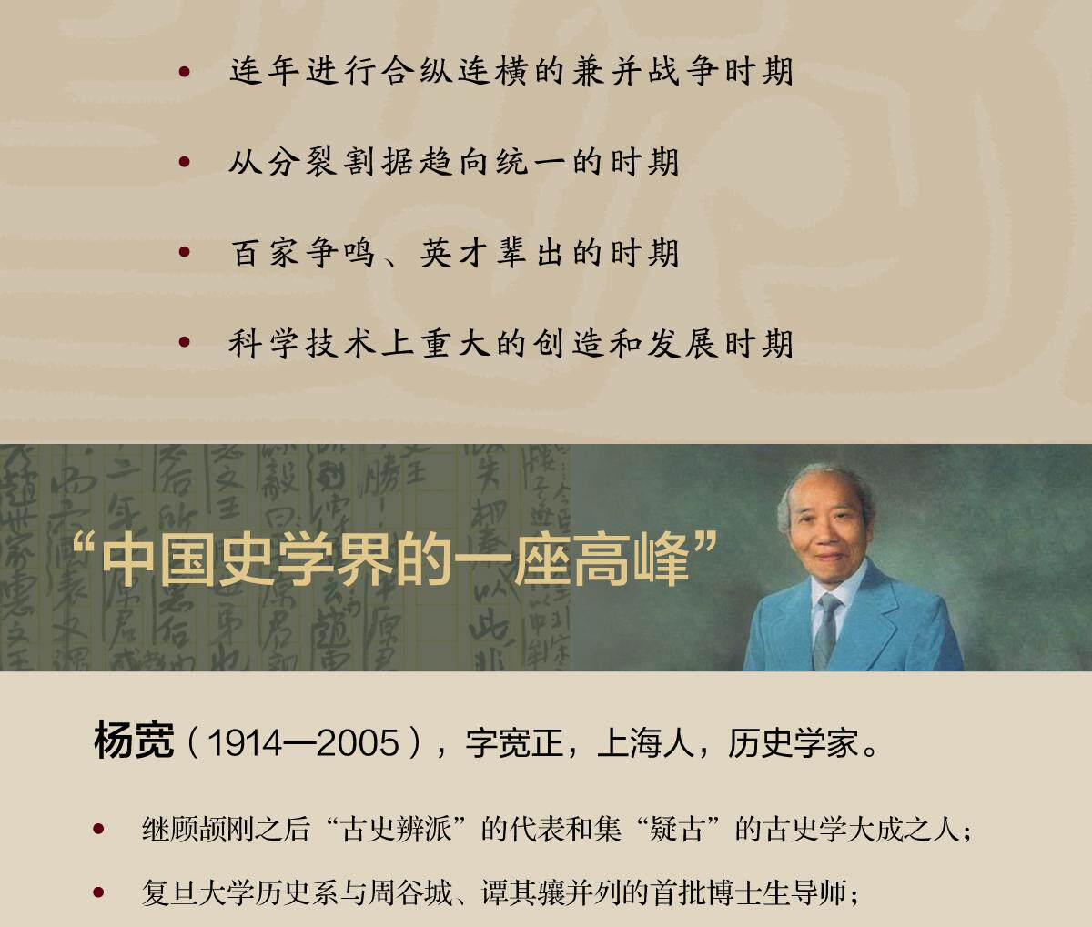 The History of the Warring States (two volumes in total) is as famous as Tan Qixiang. Yang Kuan, the representative of the ancient history school after Gu Jiegang and the master of the Warring States History Collection, revised his manuscript three times and became a classic of epochal history in fifty years.