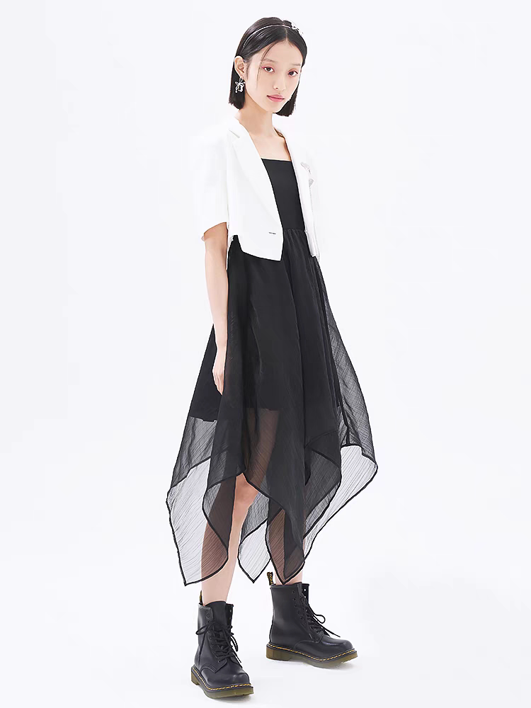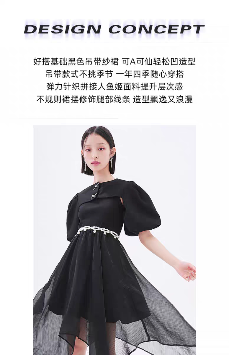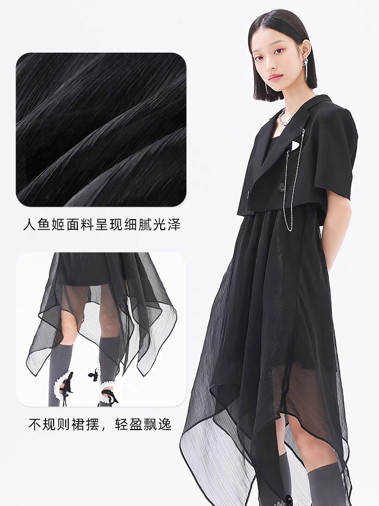 Lolipa Sweet Cool Women's Clothing 2022 Summer New Product Spliced Mesh A-Line Skirt Irregular Hem Strap Dress
