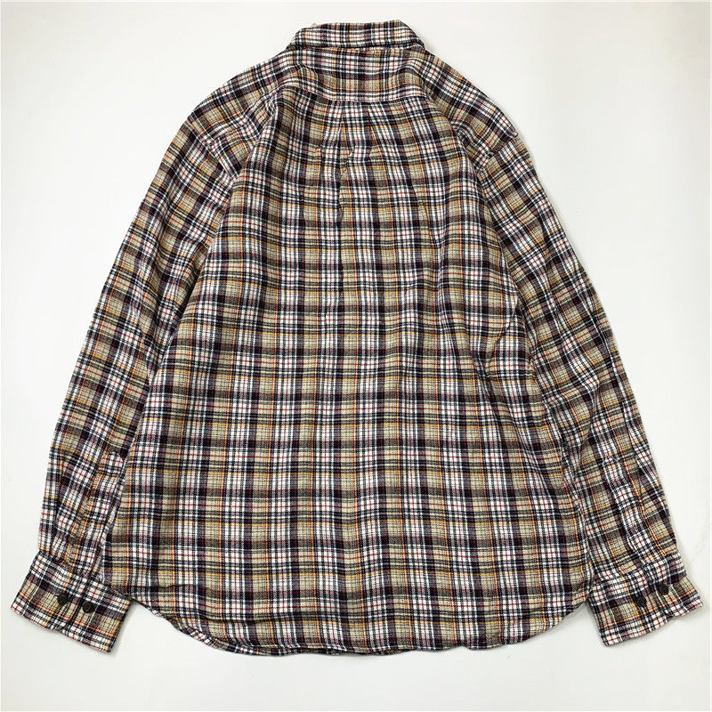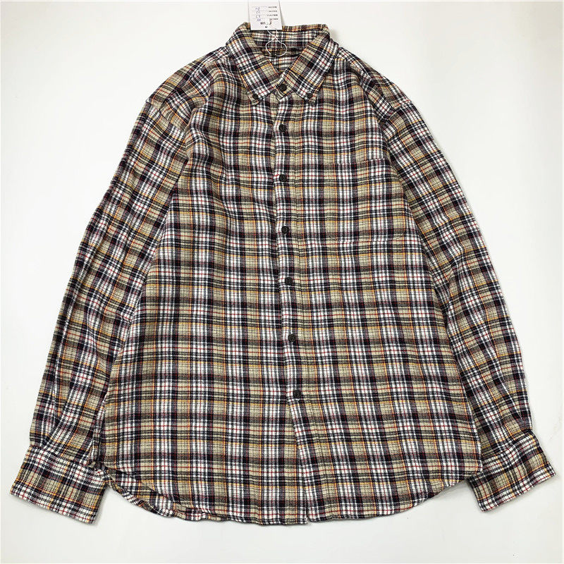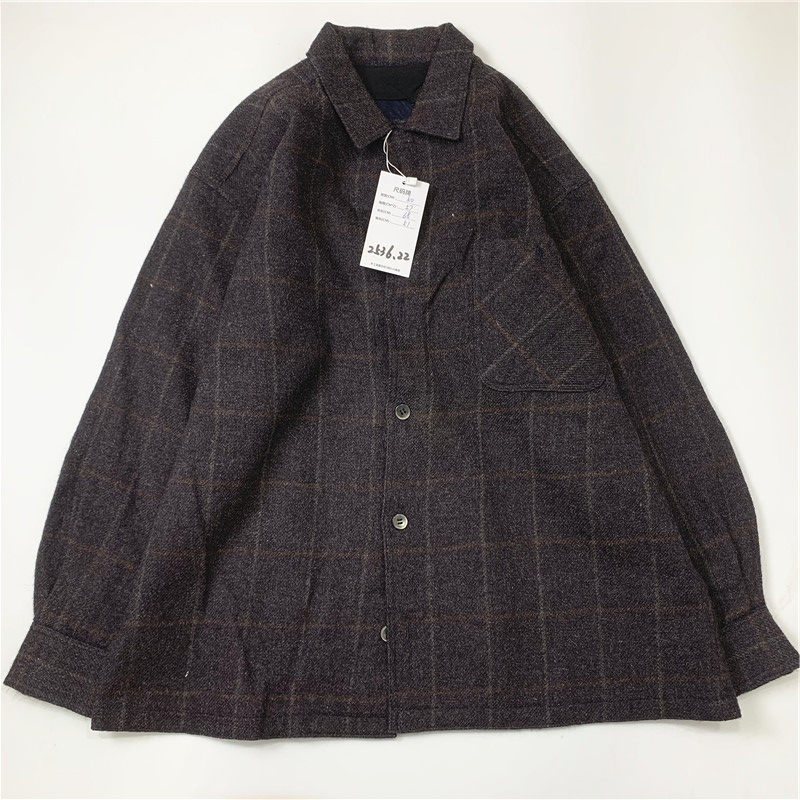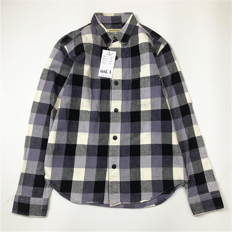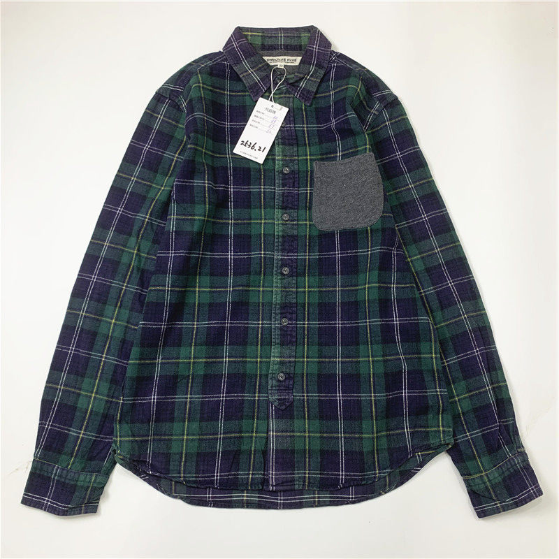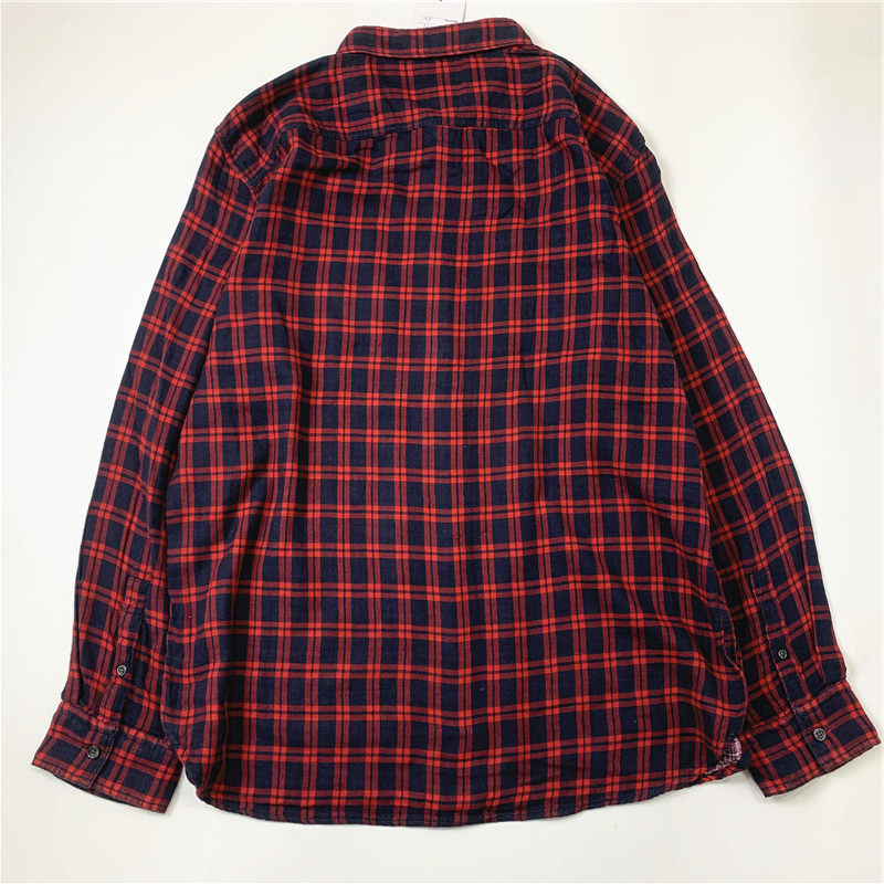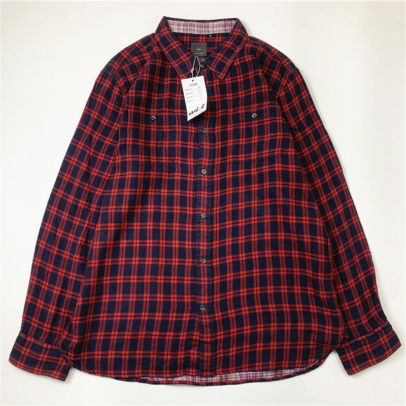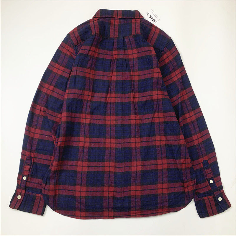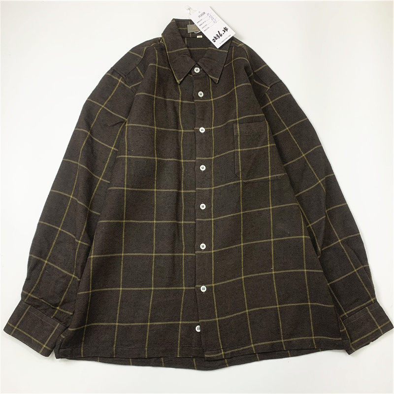 Plaid coat color matching vintage japanese retro loose long-sleeved unisex workwear versatile shirt 2536