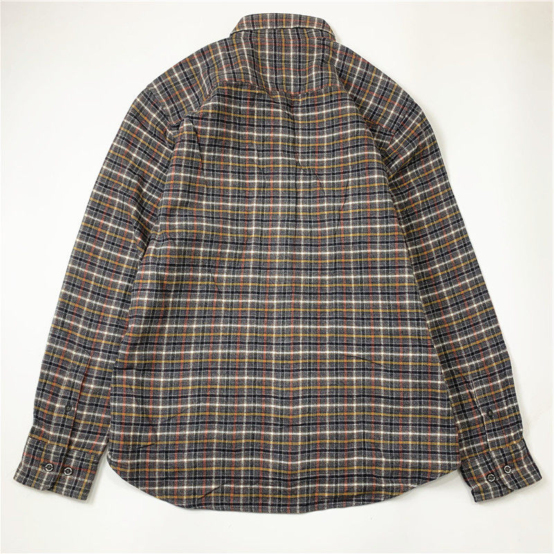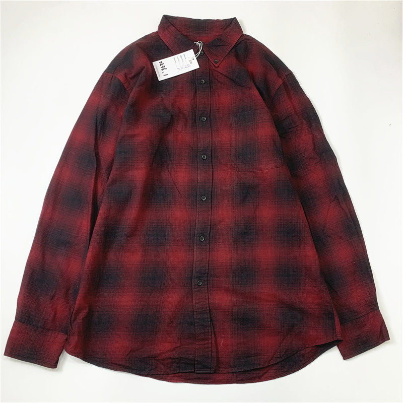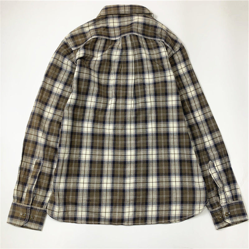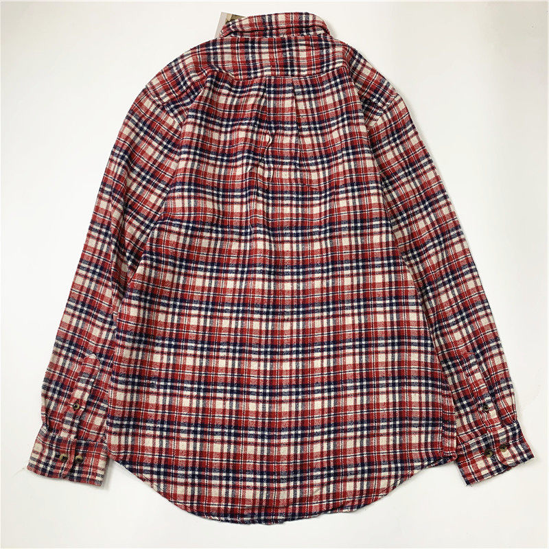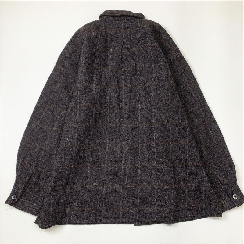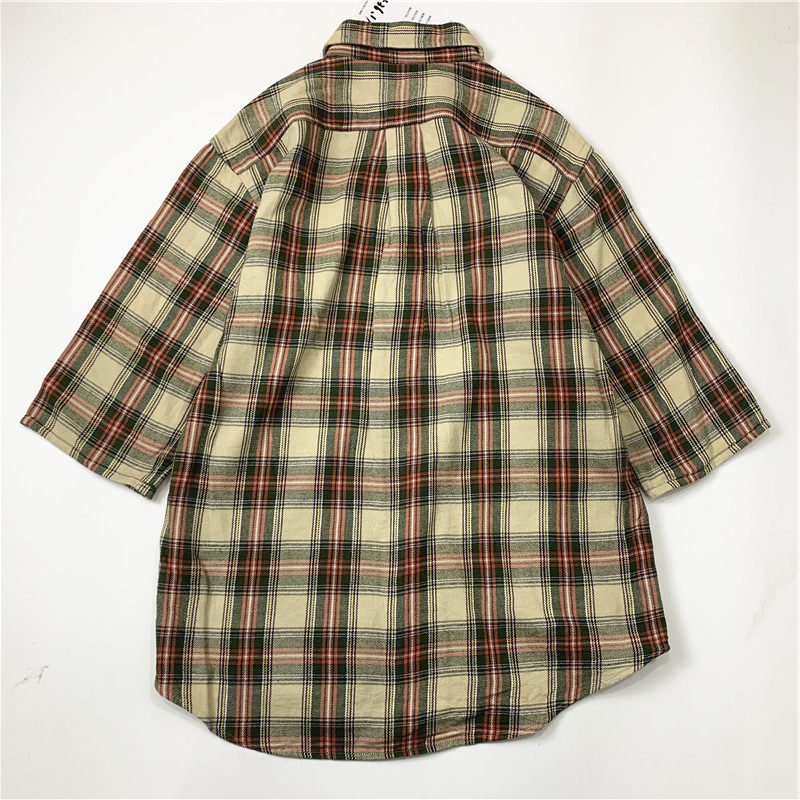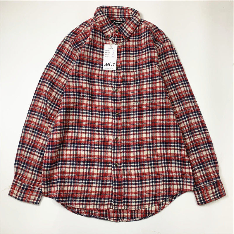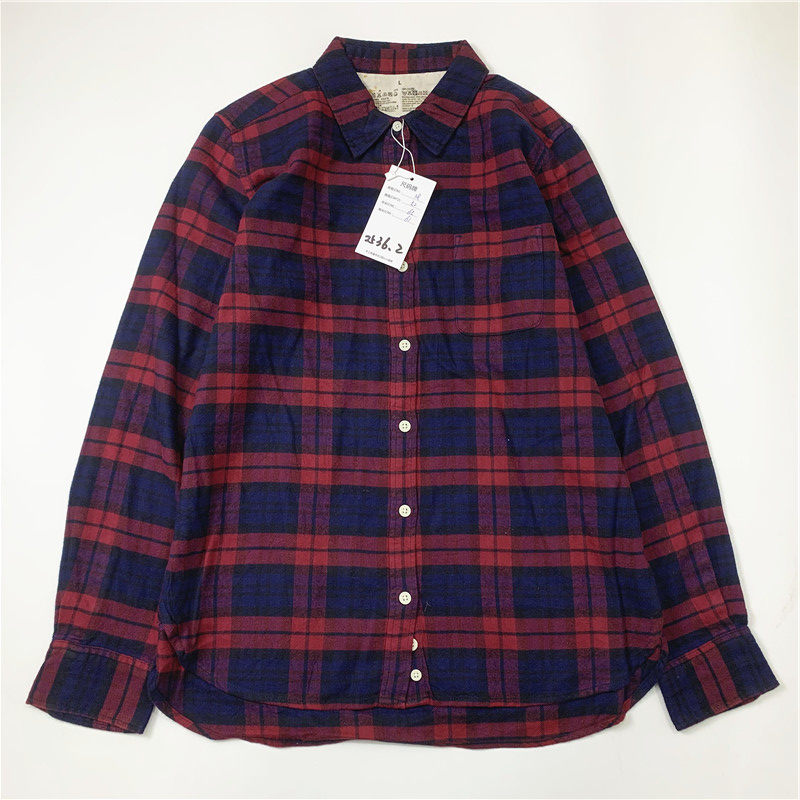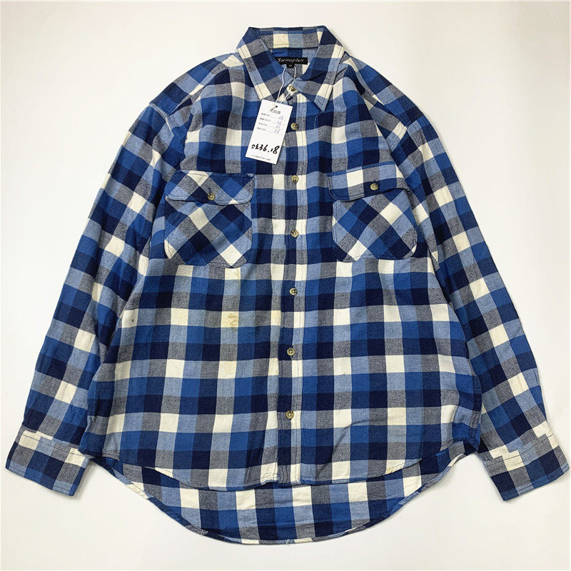 Plaid coat color matching vintage japanese retro loose long-sleeved unisex workwear versatile shirt 2536
