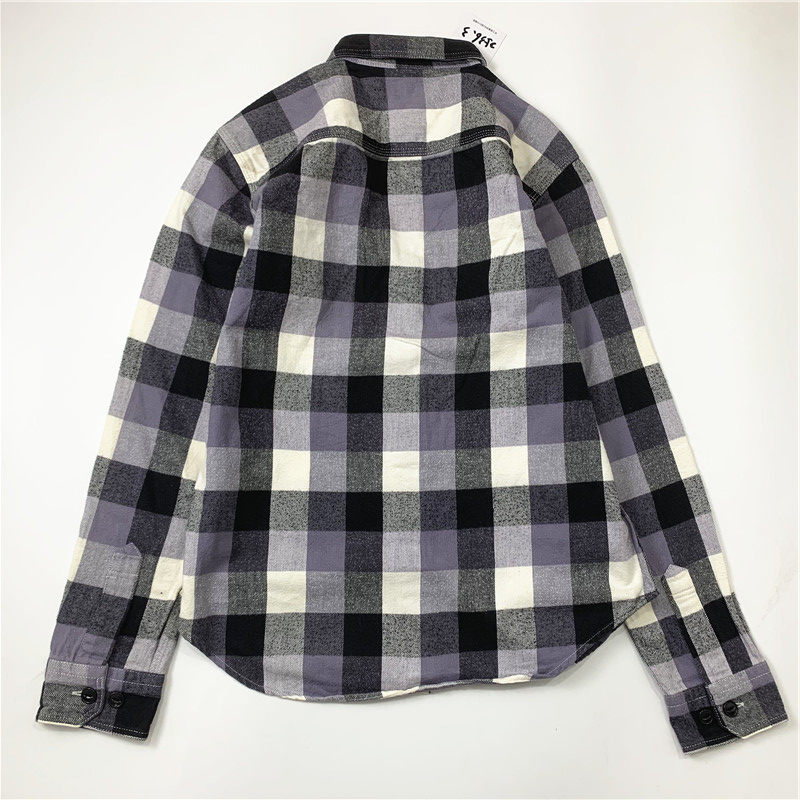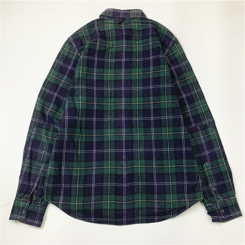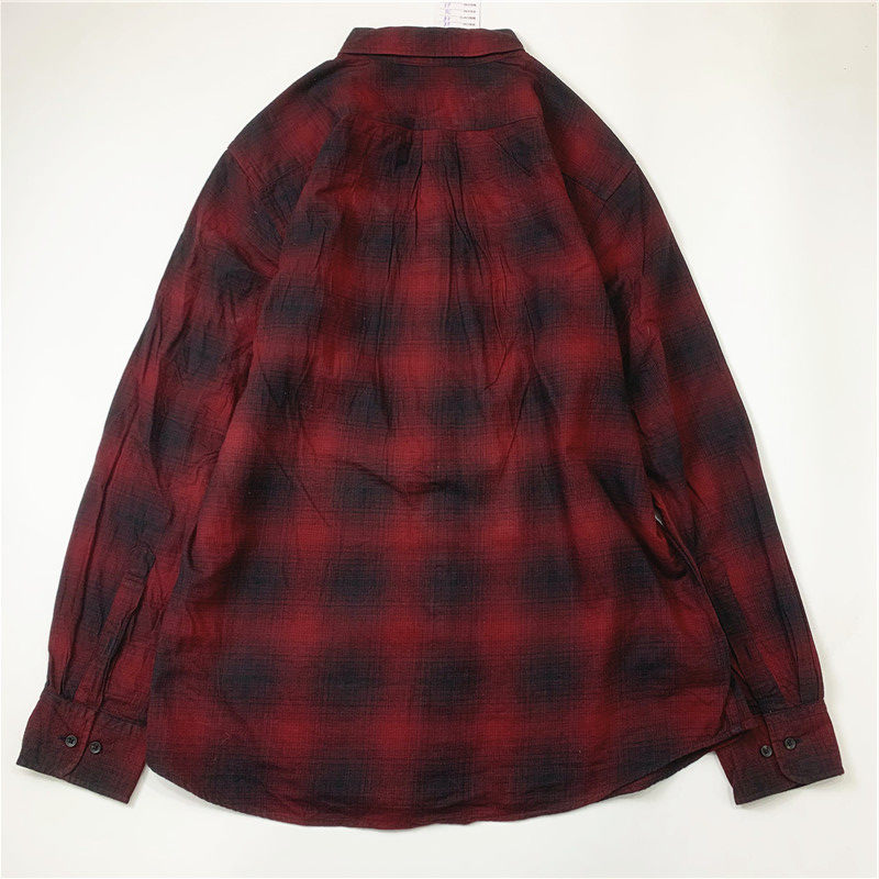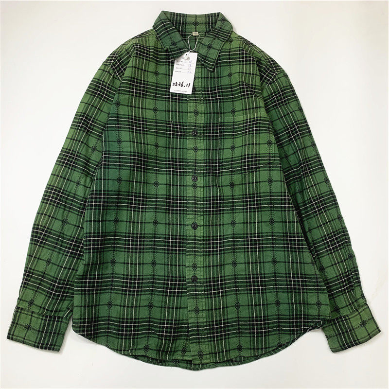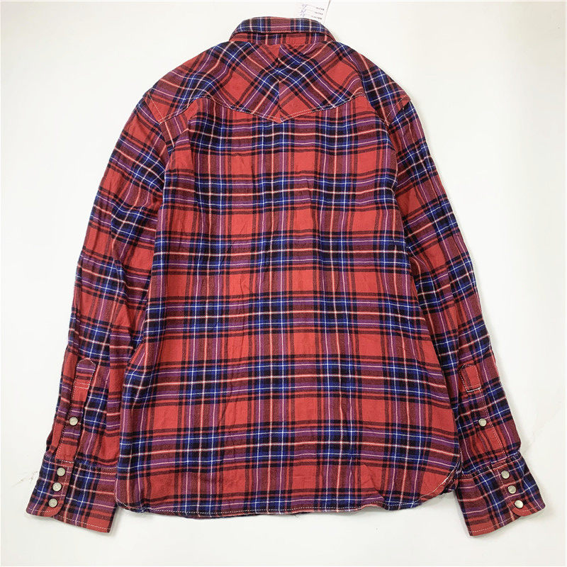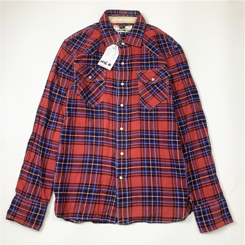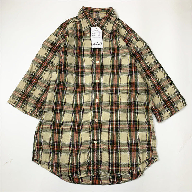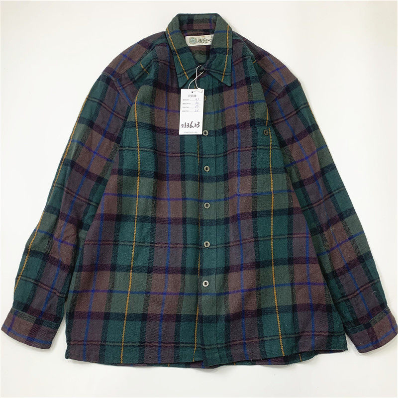 Plaid coat color matching vintage japanese retro loose long-sleeved unisex workwear versatile shirt 2536