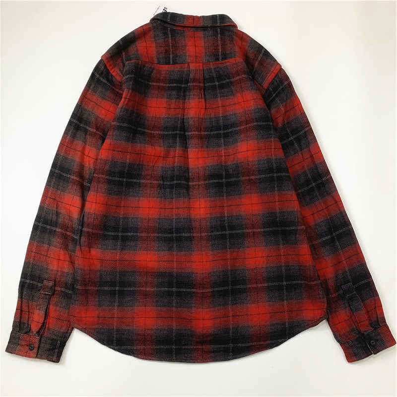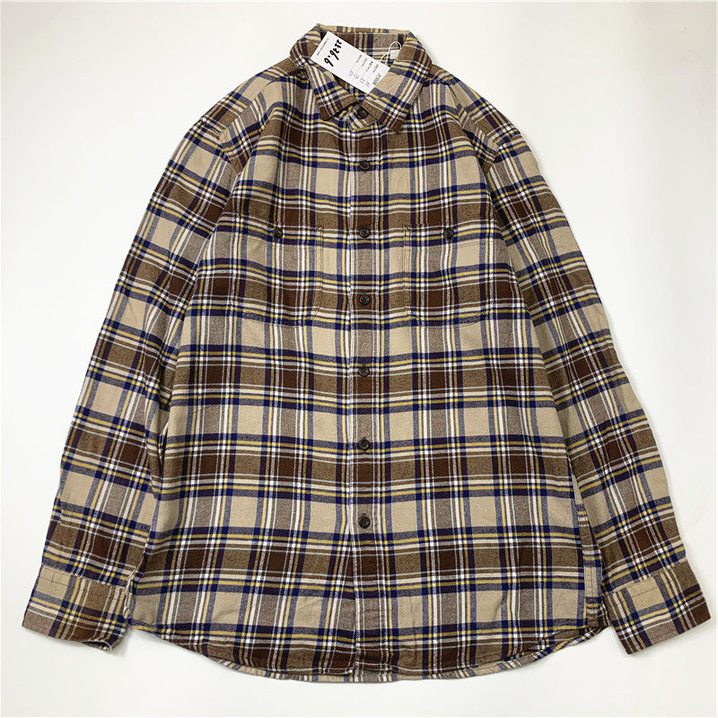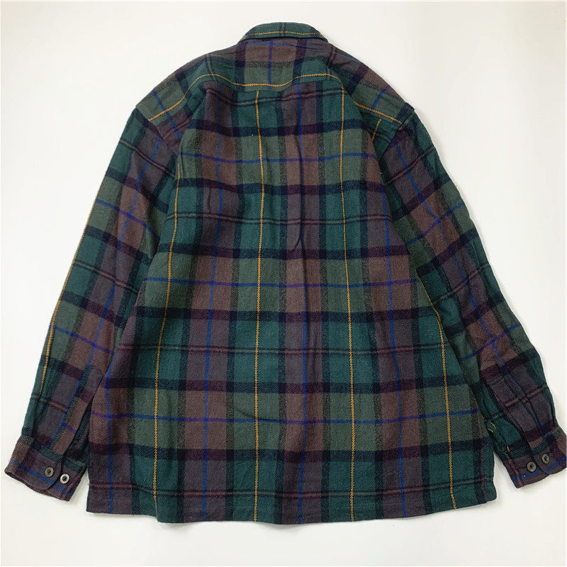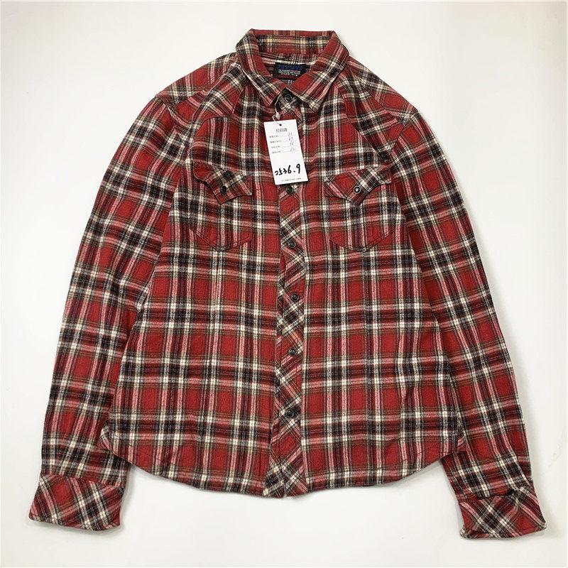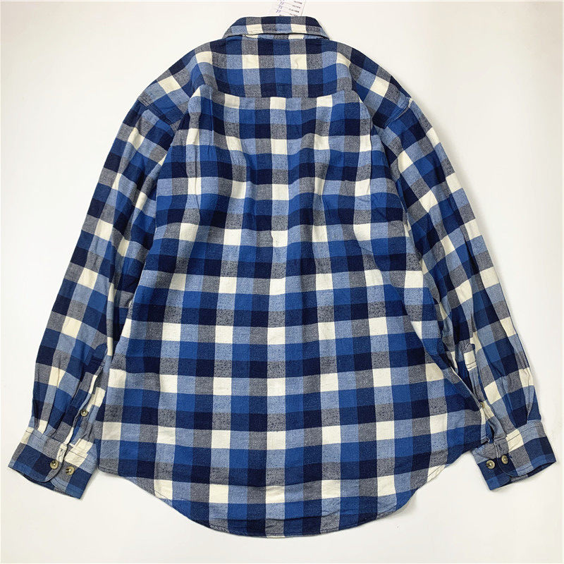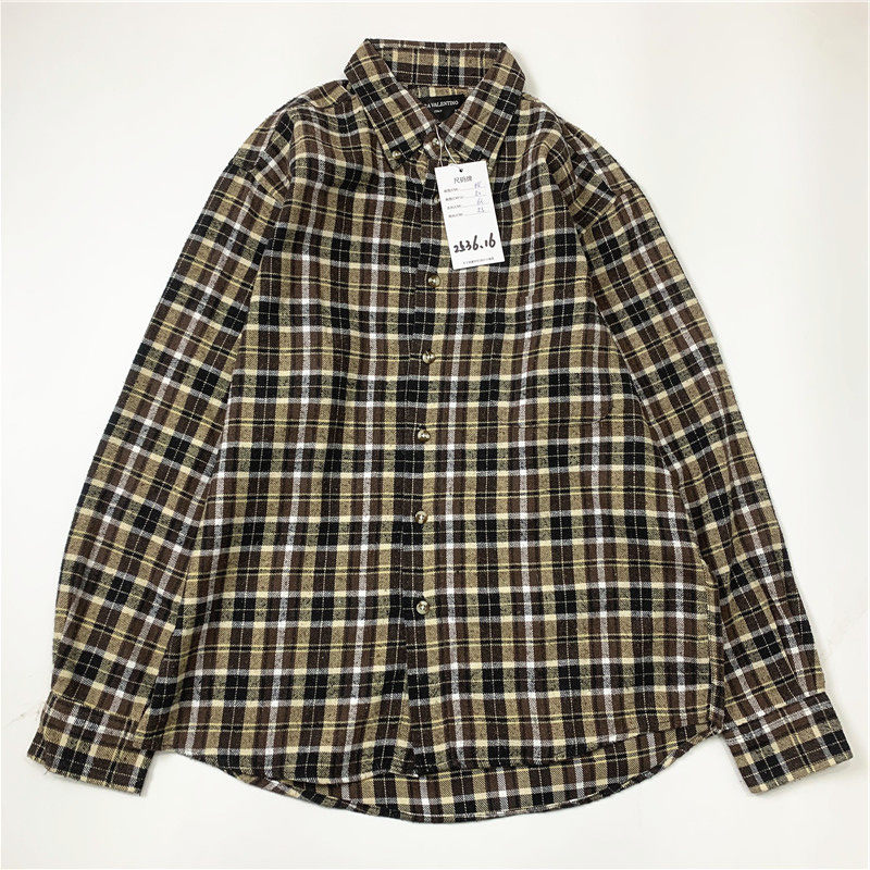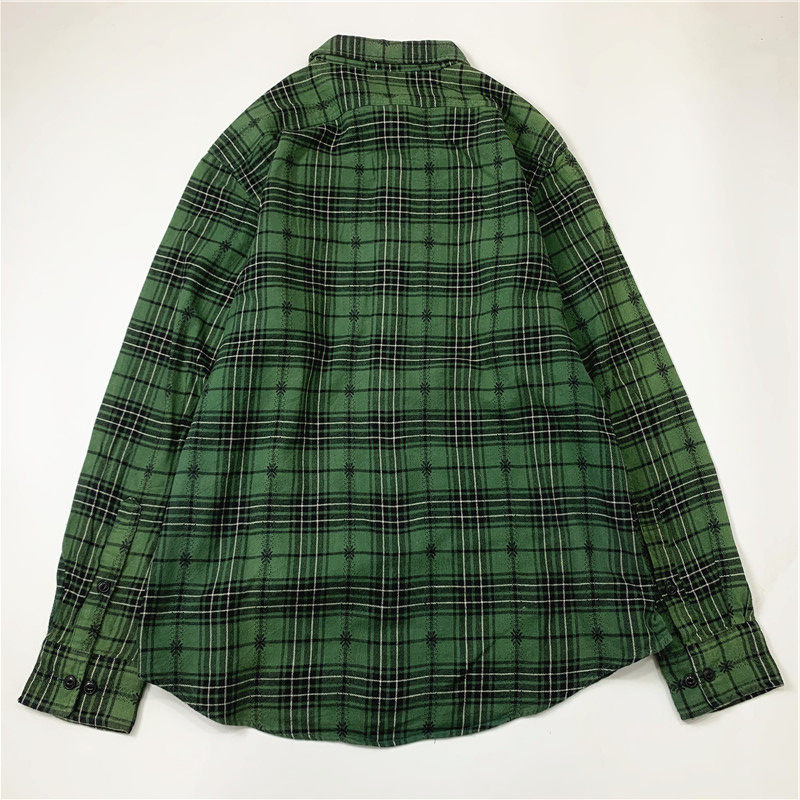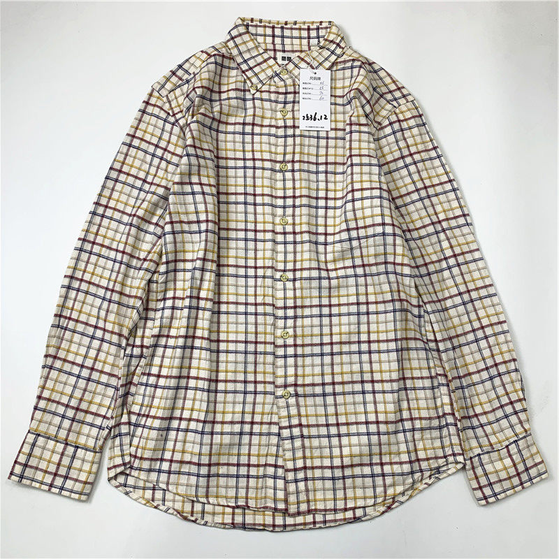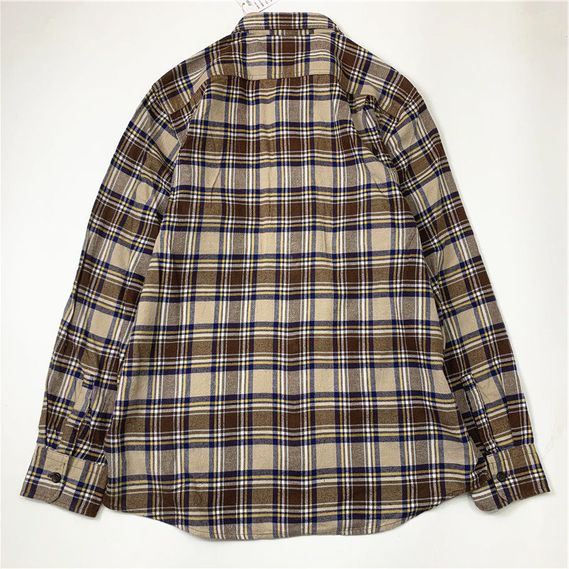 Plaid coat color matching vintage japanese retro loose long-sleeved unisex workwear versatile shirt 2536