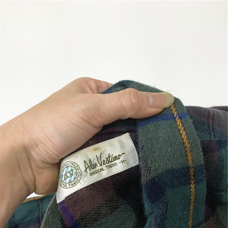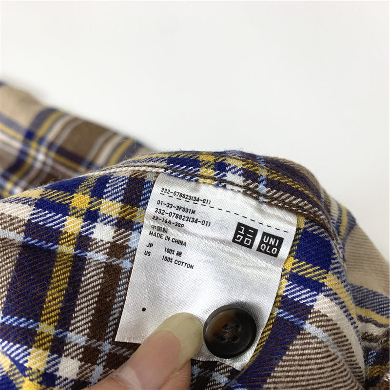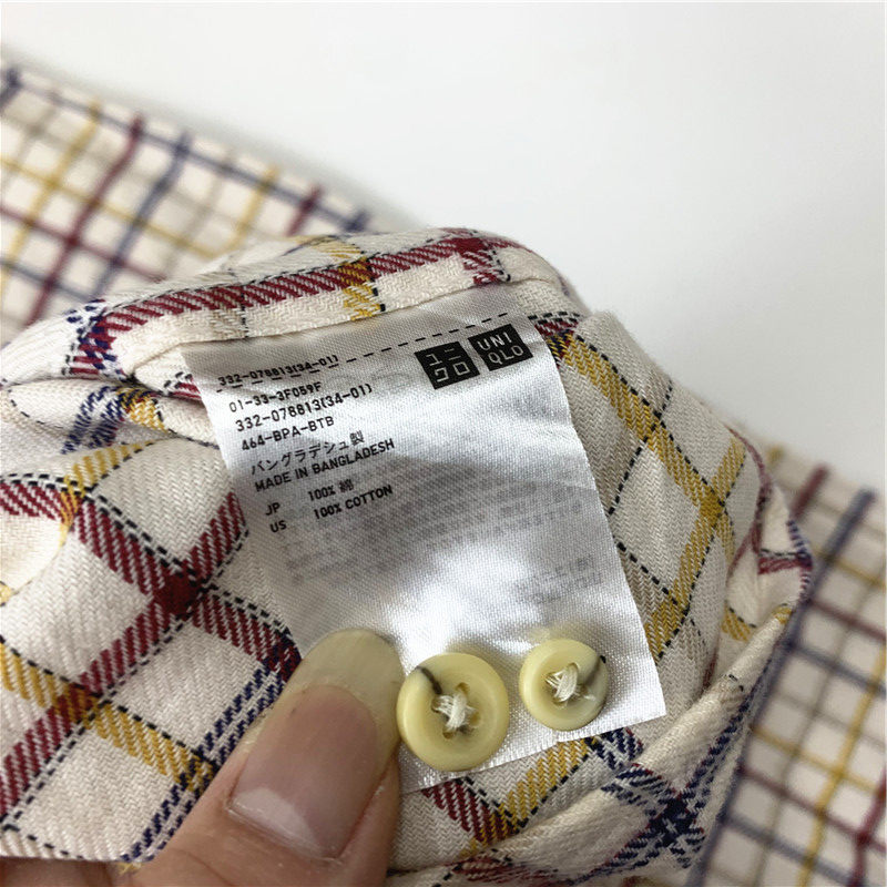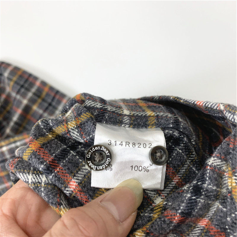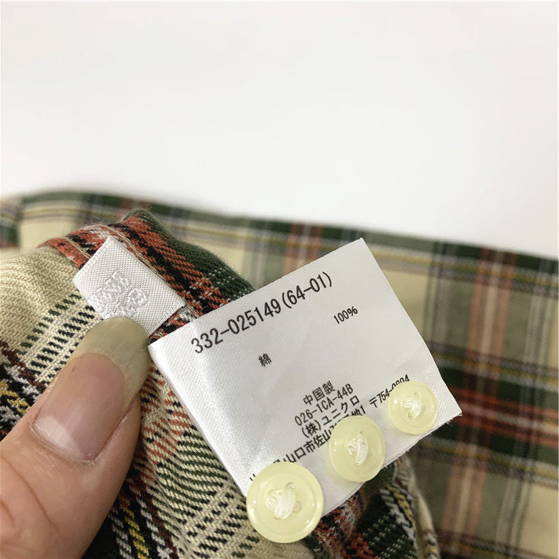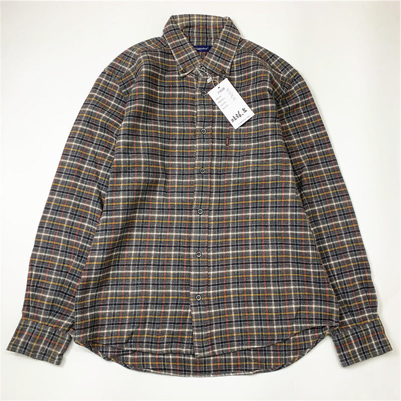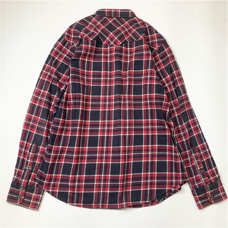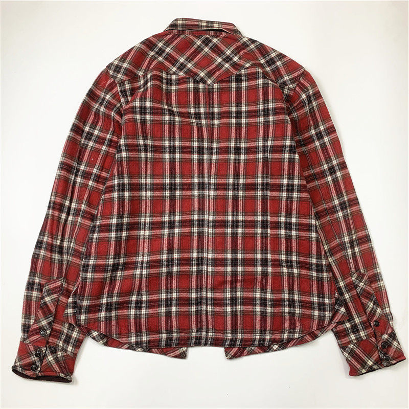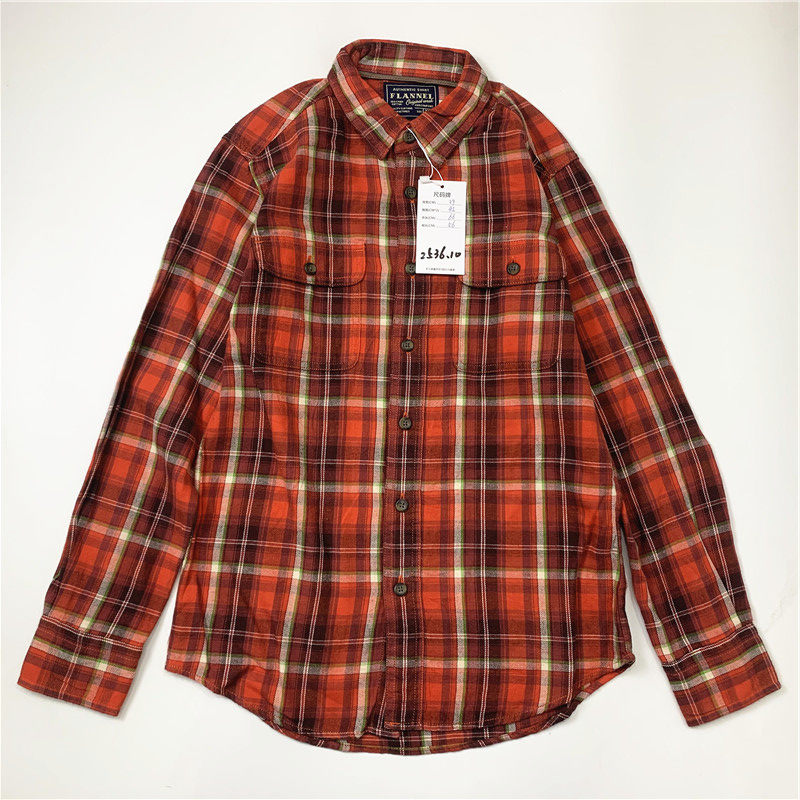 Plaid coat color matching vintage japanese retro loose long-sleeved unisex workwear versatile shirt 2536