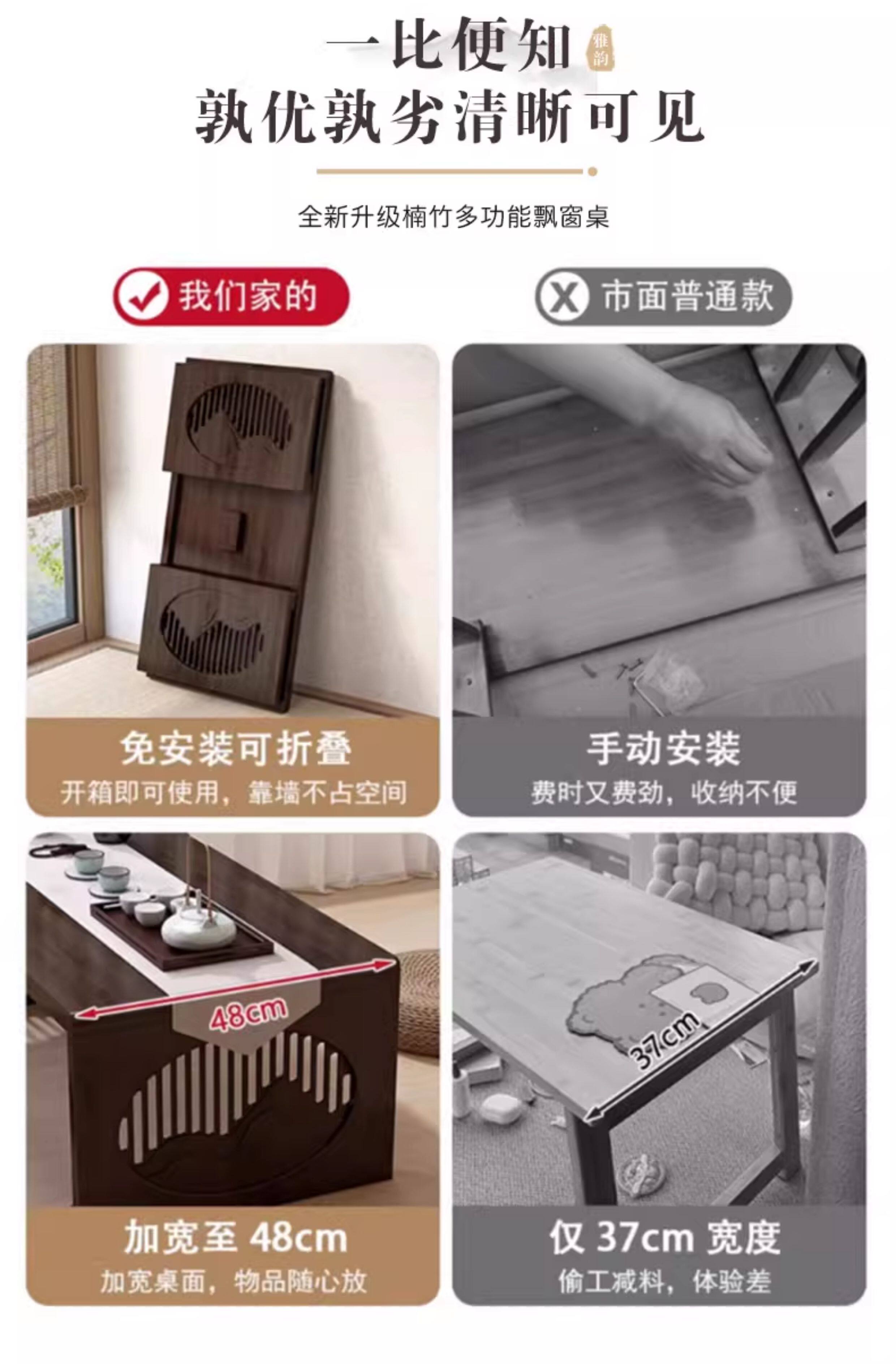 Foldable Table for Home Use, Bay Window Table, No Installation Needed, Small Coffee Table, Low Table for Windowsill/Balcony, Homework Table, Dining Table