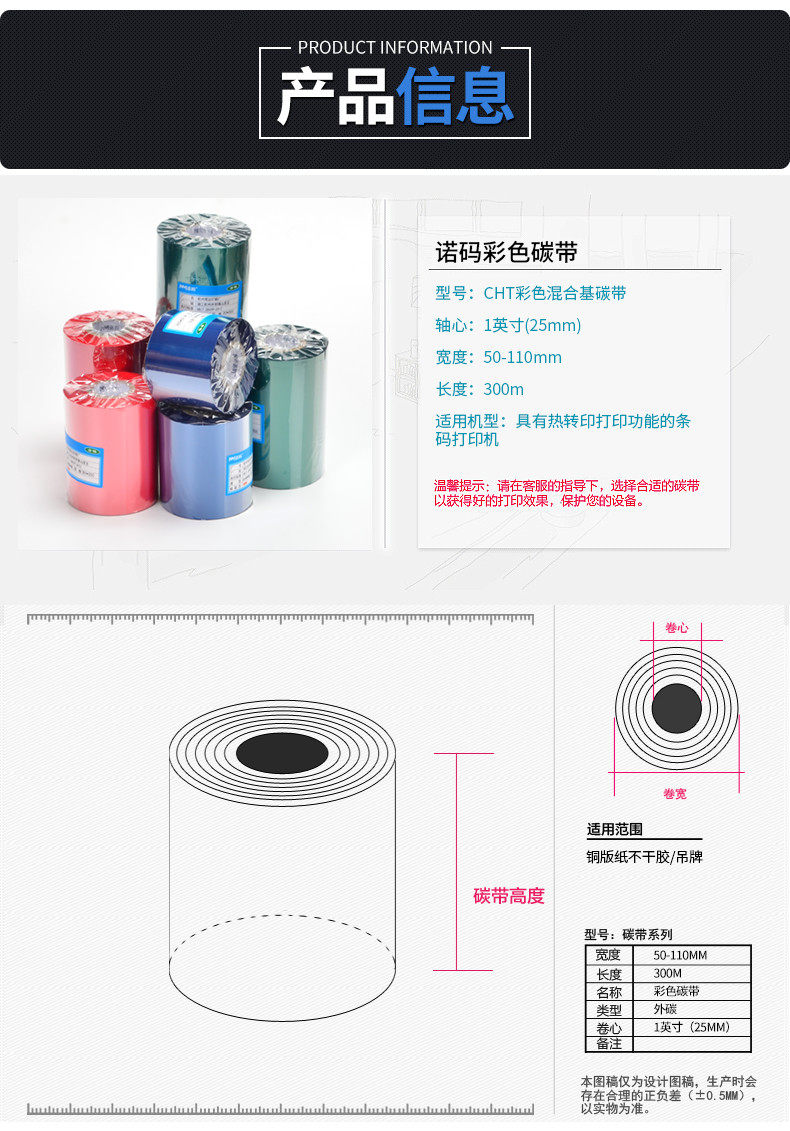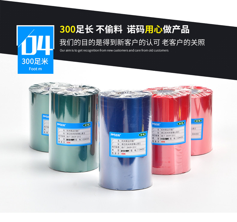 Nomax Color Mixed Base Ribbon 50 60 70 80 90 100 110mm* 300m Barcode Printer Adhesive Label Paper Ribbon Red Blue Green White Clear Printing Barcodes