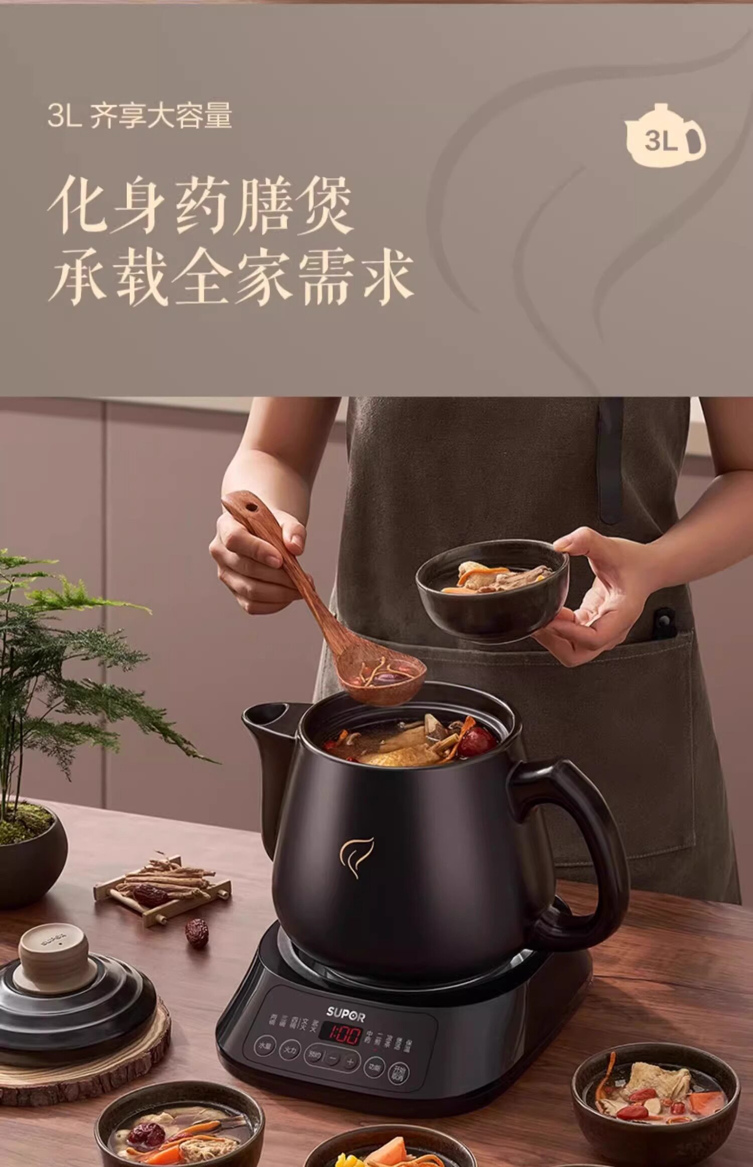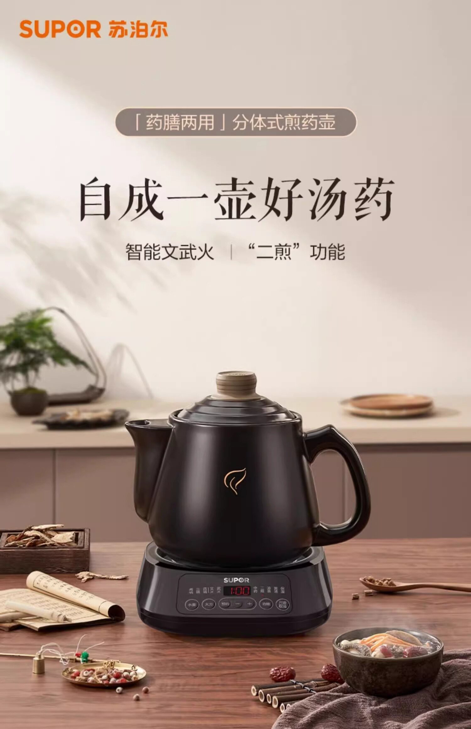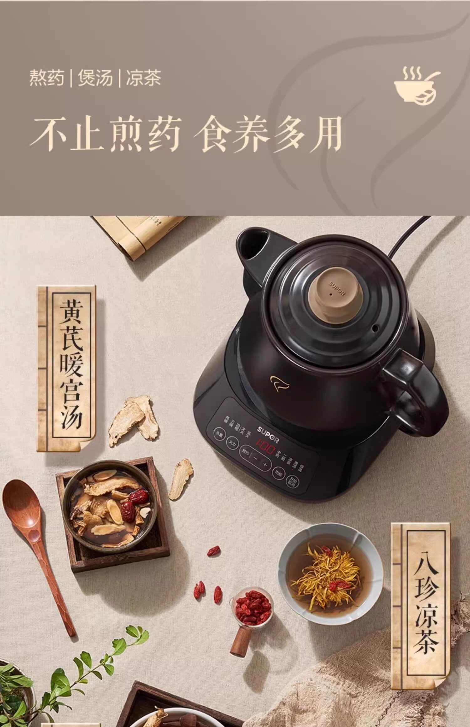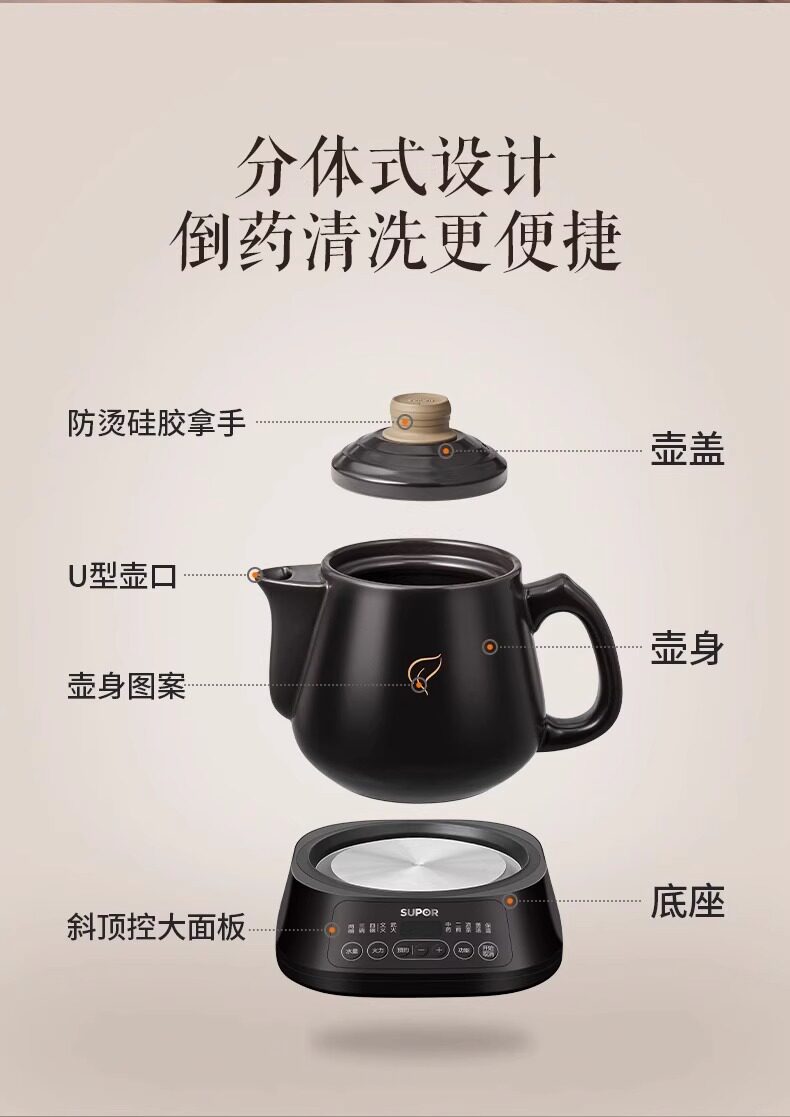 Supor Electric Herbal Medicine Decocting Pot, Fully Automatic Medicine Boiling Pot, Special Decocting Pot for Traditional Chinese Medicine, Clay Pot Medicine Jar, Home Use